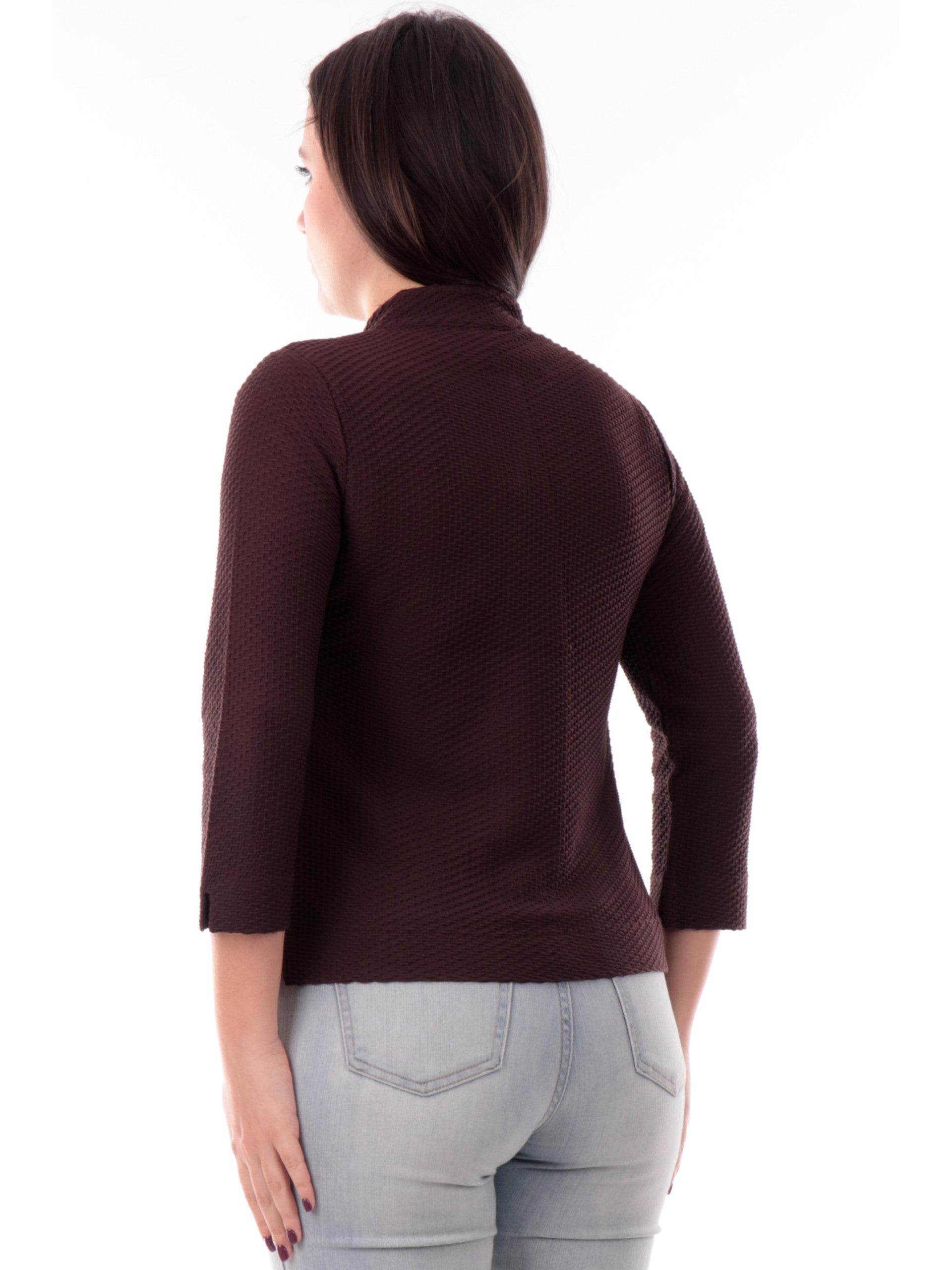 Giacca marrone aperta Anis da donna a nido d'ape con maniche a tre quarti 261W1175069