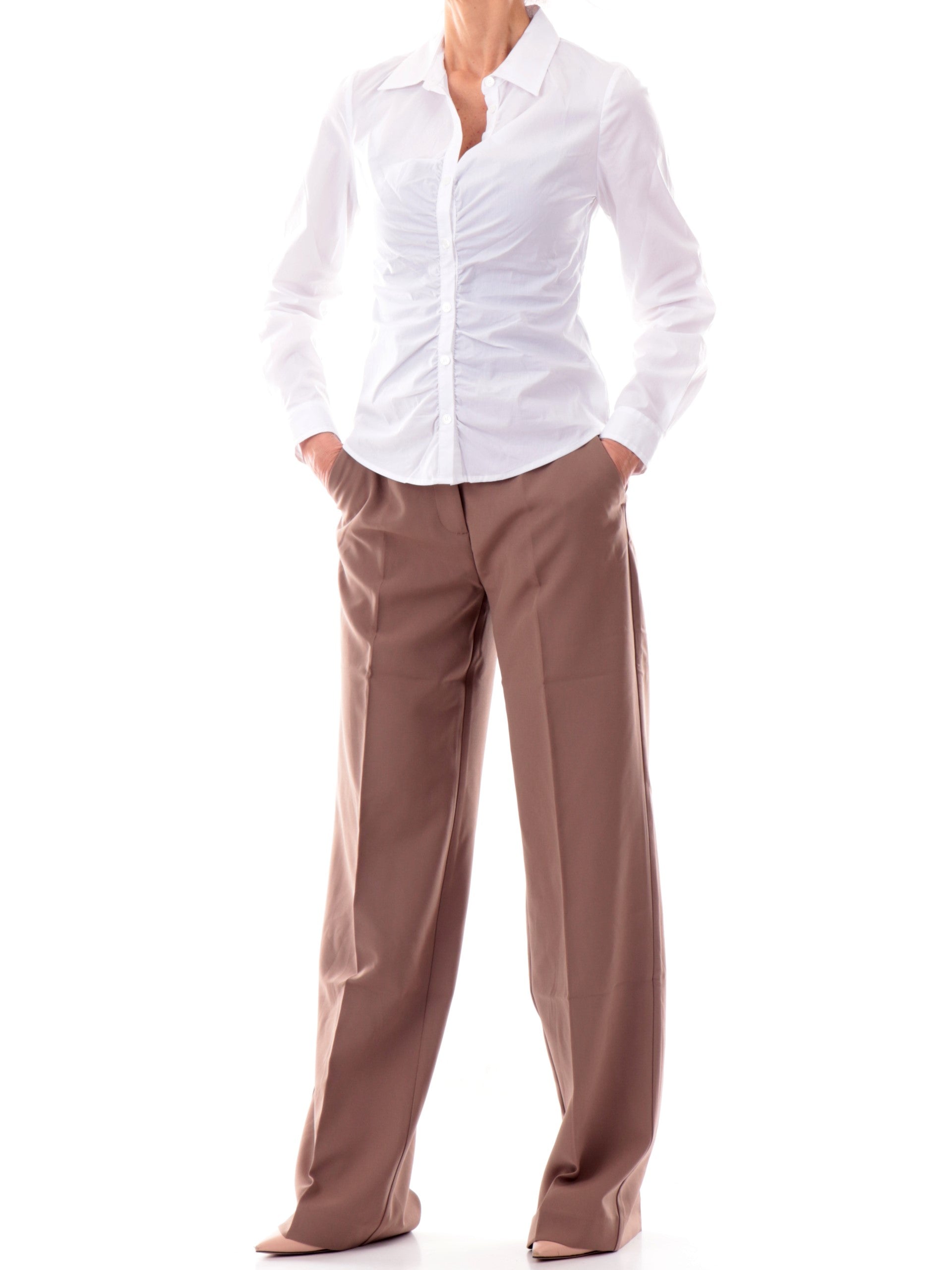 Camicia GUess bianca da donna arricciata Emily Shirred Poplin top W6RH85W1LU1G011