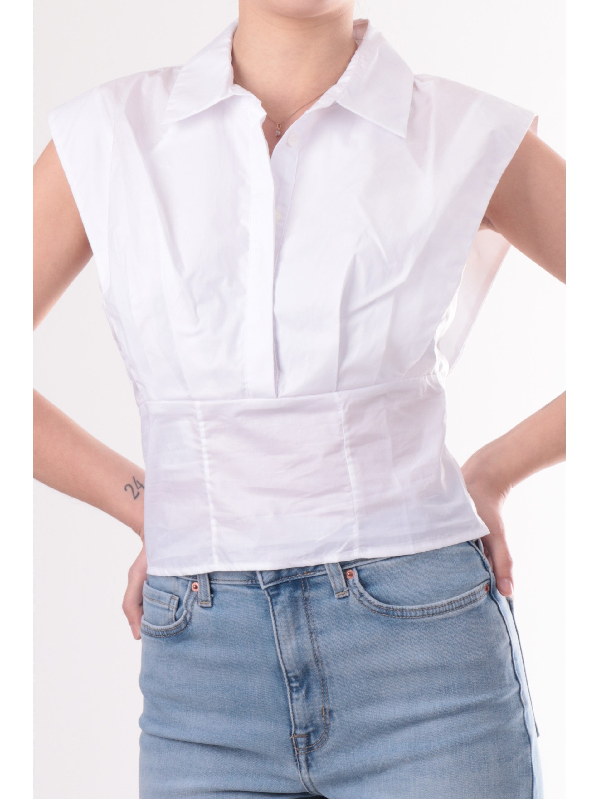 Camicia Guess bianca da donna Cherry Top. Questa camicia, realizzata 100% in puro cotone, perfetta per la stagione estiva, questa camicia svasata è caratterizzata dal colletto classico, chiusura con bottoni, chiusura di lato con zip, fondo stretto e maniche corte. Questa camicia Guess è perfetta sotto un jeans ed è perfetta sia su un look elegante che casual