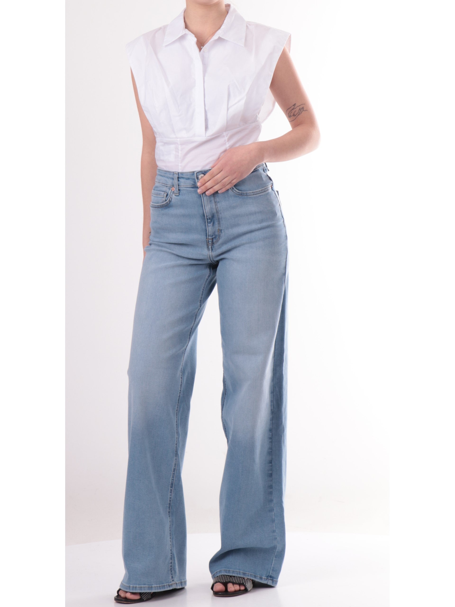 La nostra modella è alta 1,74 mt e indossa maglie taglia S e pantaloni taglia 42.