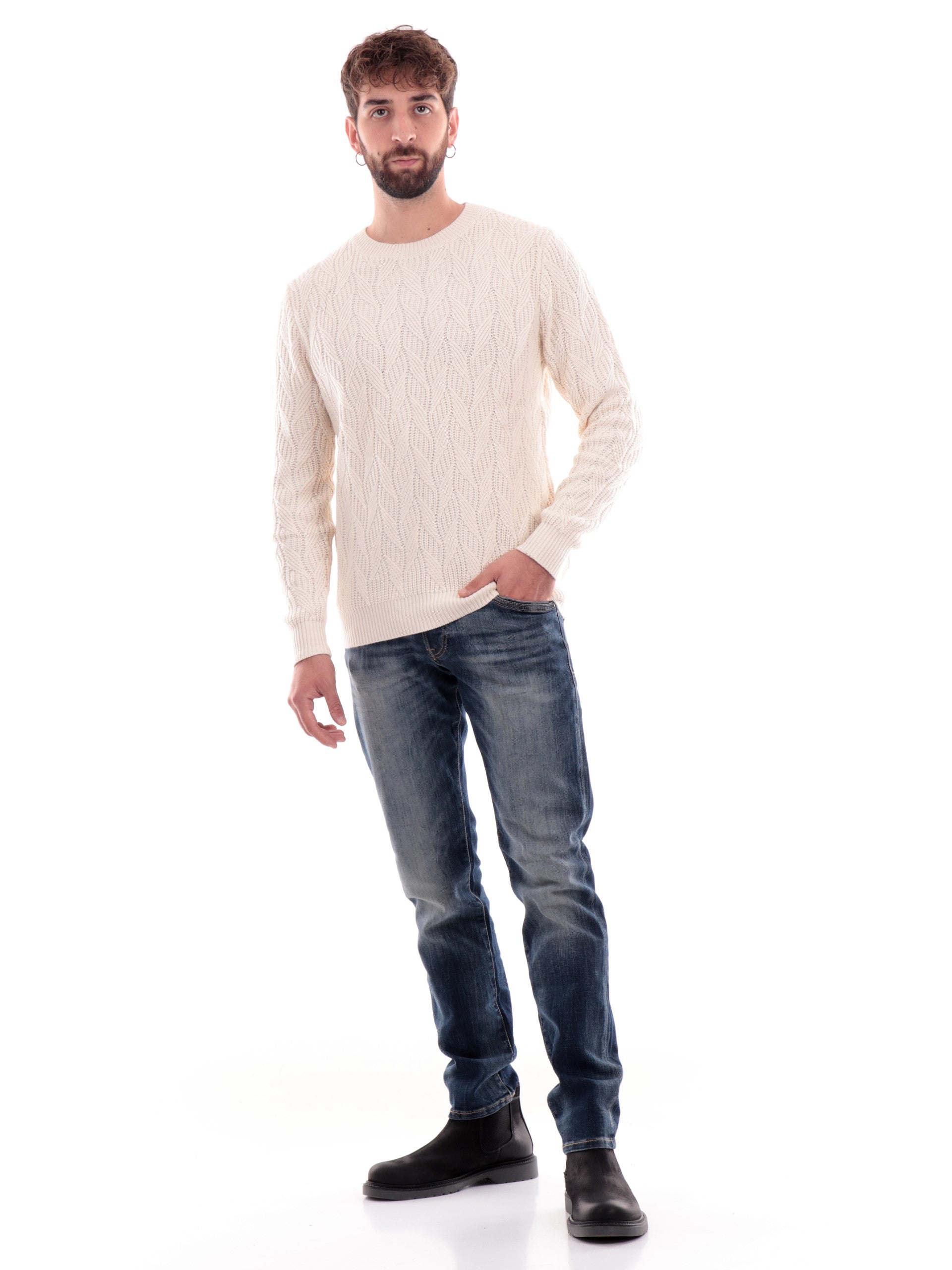 Maglione girocollo Guess bianco da uomo Evander M4BR19Z3HD1