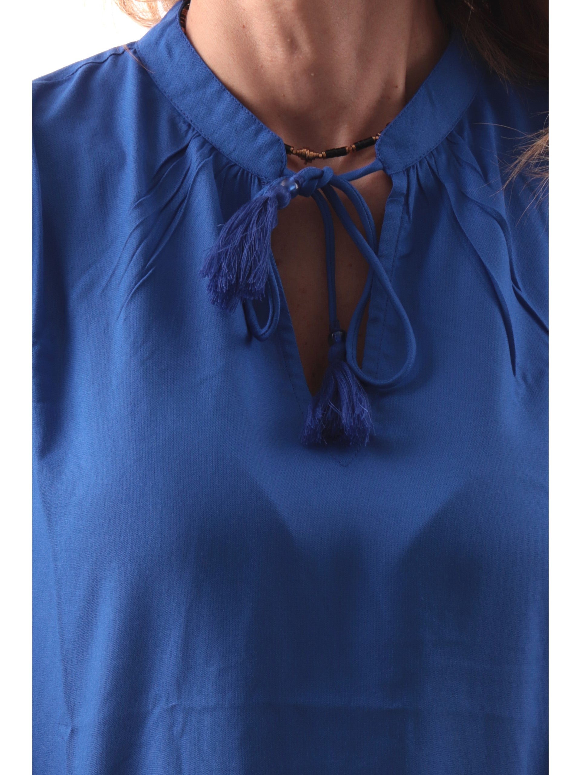 Canotta scollo a V Tiffosi blu da donna Indiana 10059575, realizzata in 100% viscosa. Questa maglia donna Tiffosi blu ha lo scollo a V, un nodo decorativo sul colletto e la vestibilità morbida.