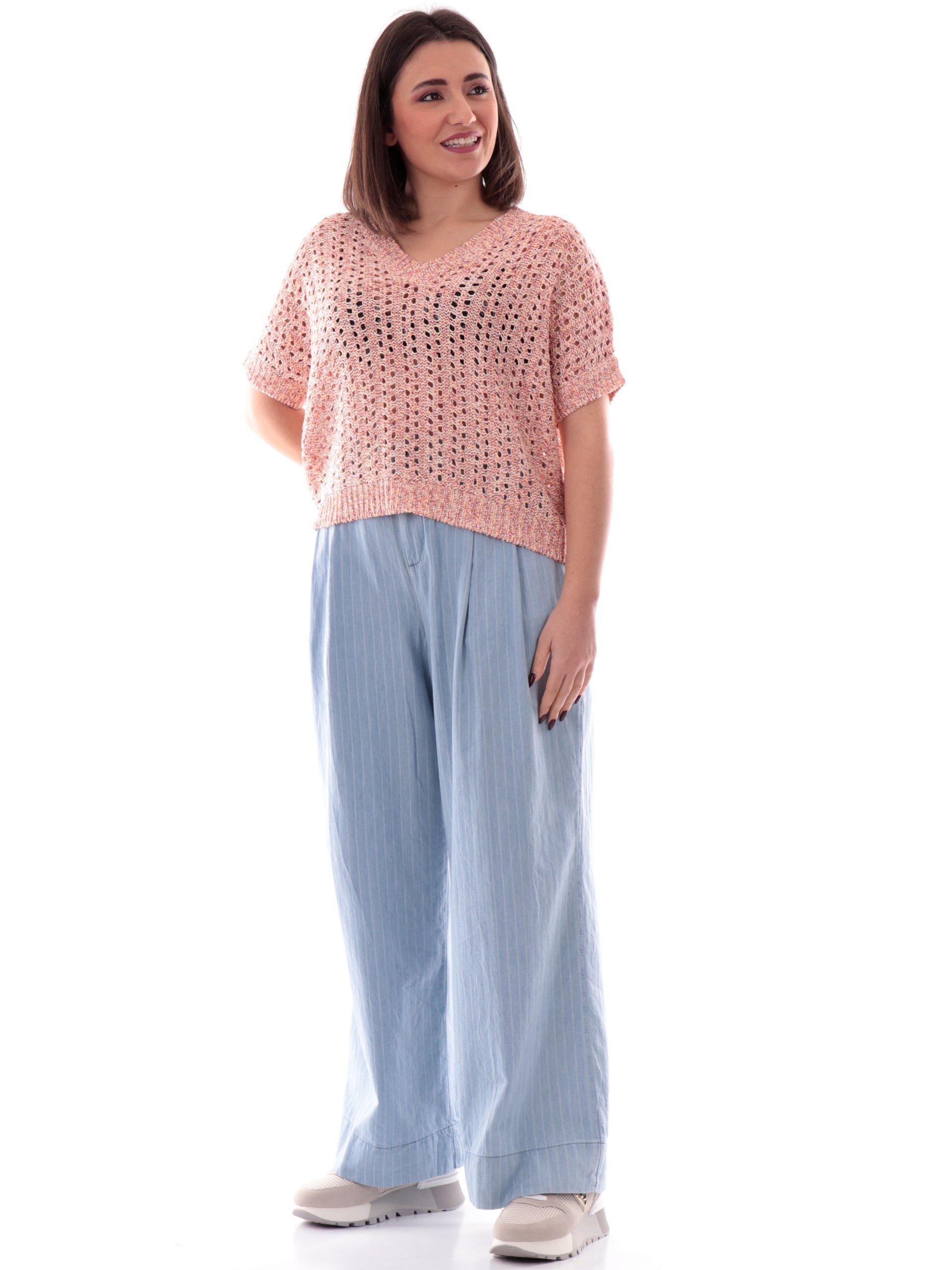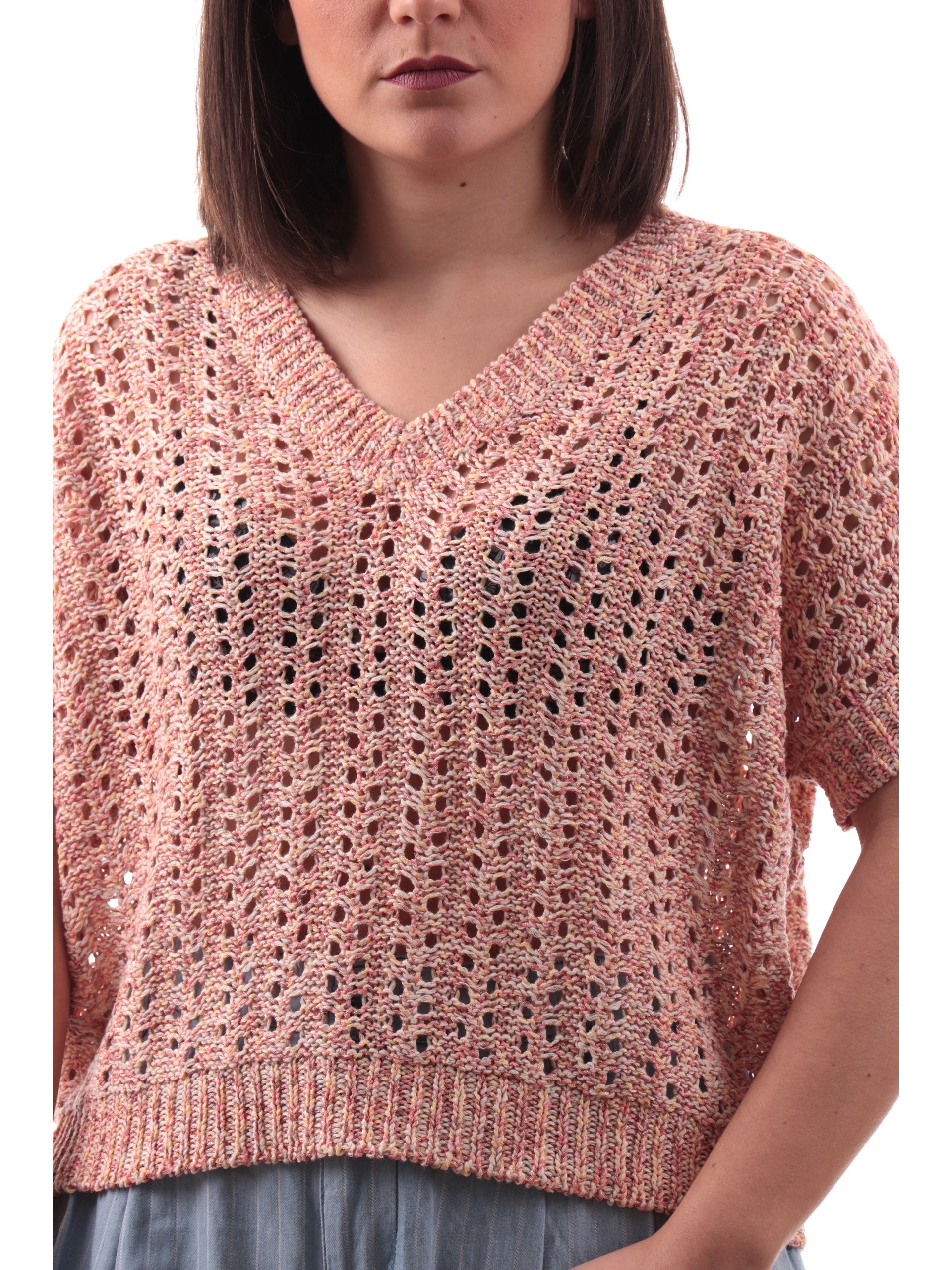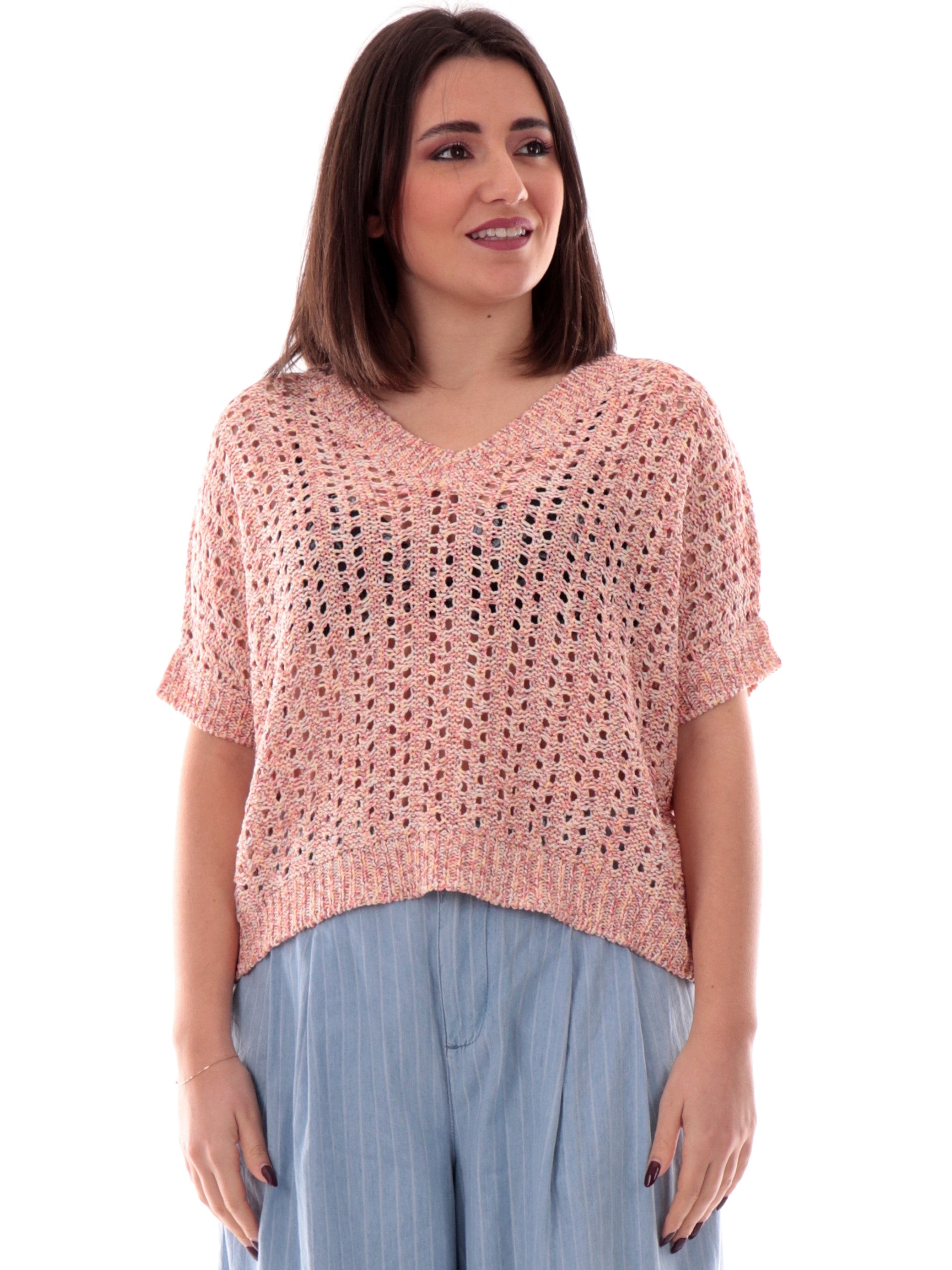 Kimono Anis scollo a V rosa da donna bucherellato 251W1221