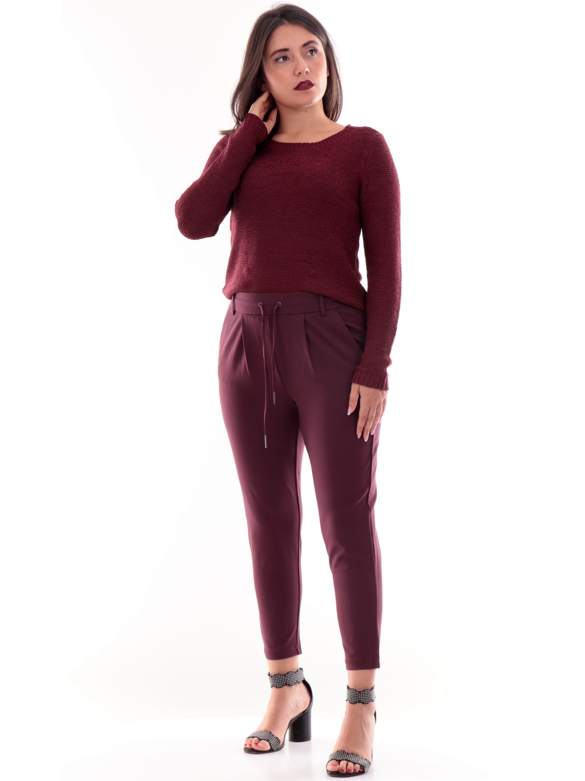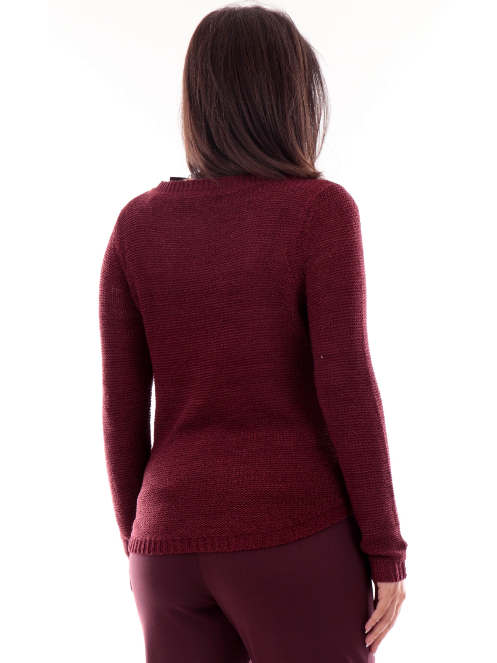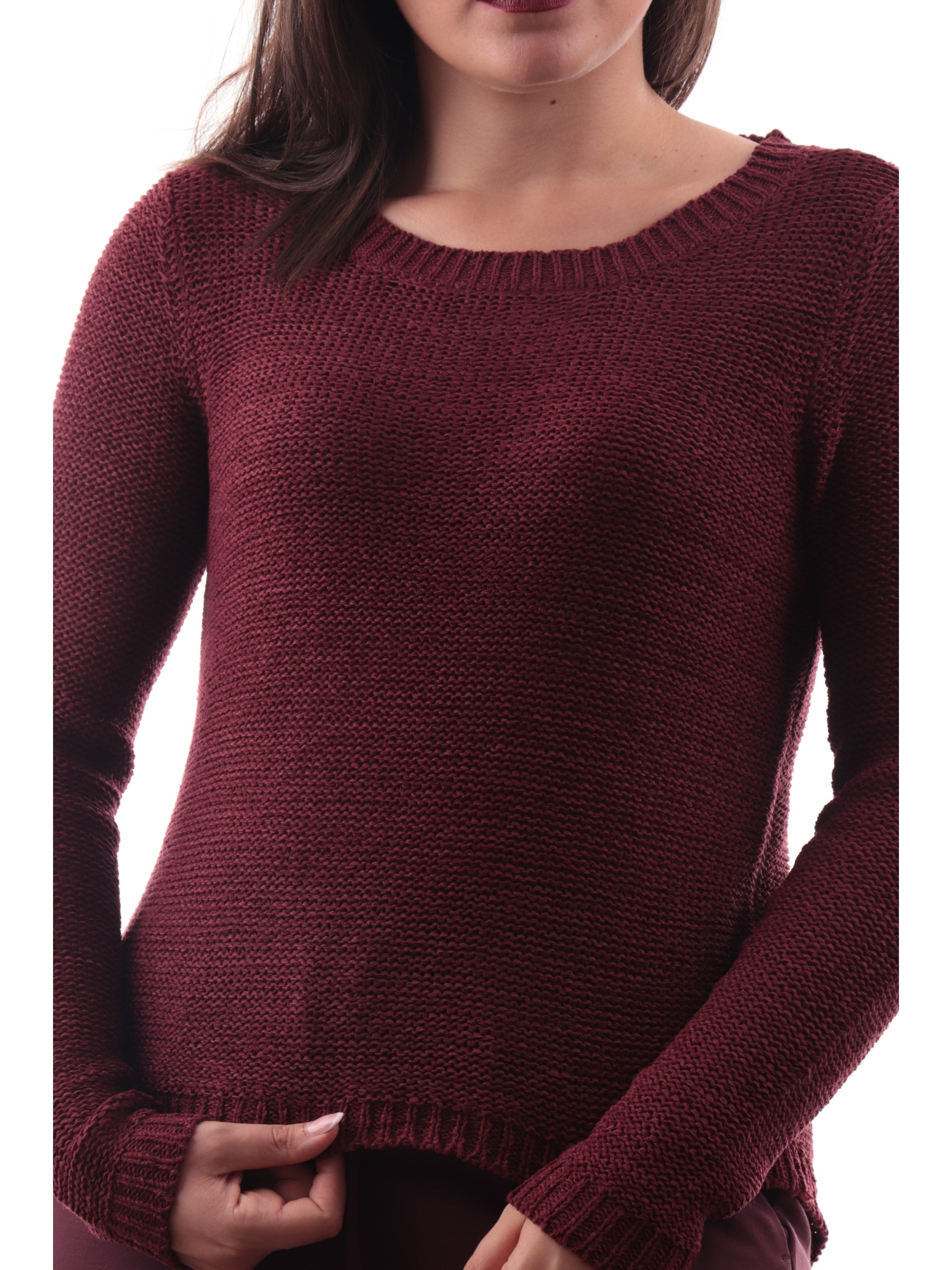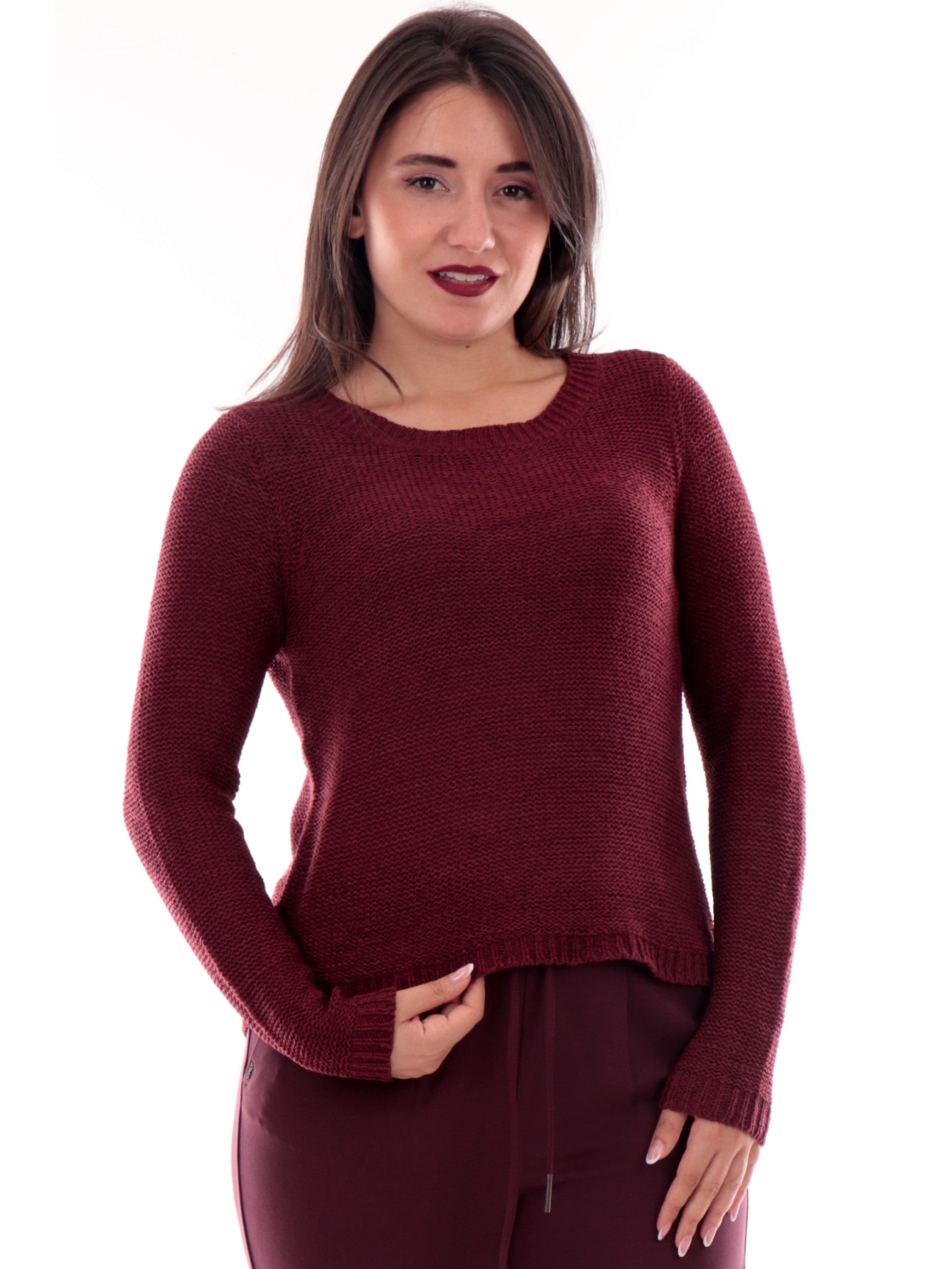 Maglione Only bordeaux da Donna tessuto traforato 15113356, a maniche lunghe con scollo tondo, in confortevole tessuto bordeuax traforato e dal fondo con taglio asimmetrico.