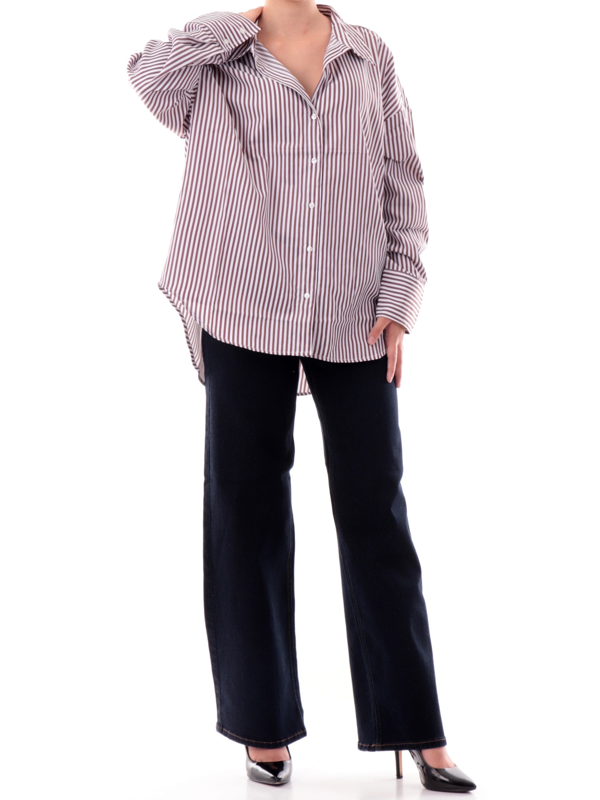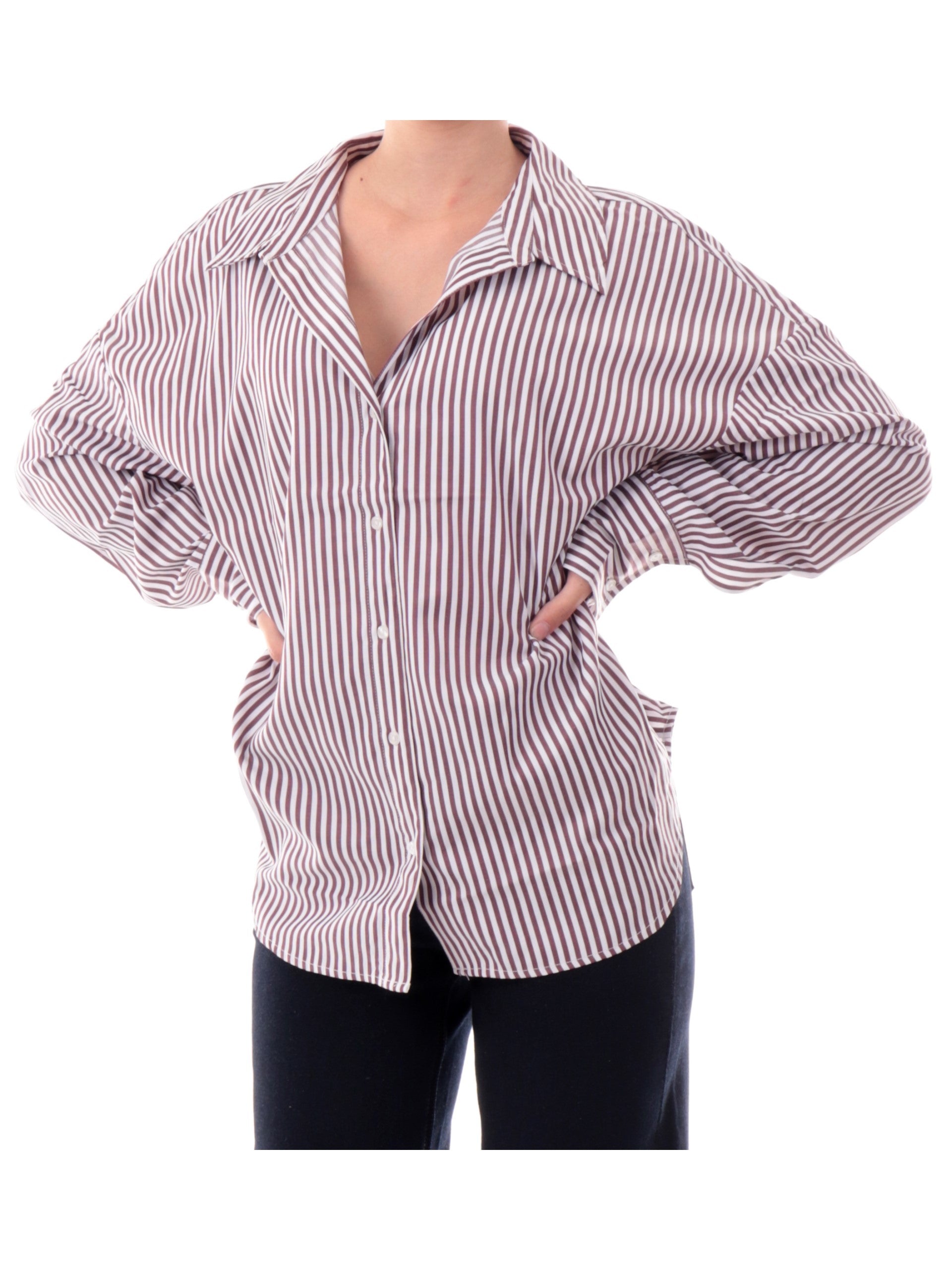 Camicia Only a righe bordeaux e bianche da donna linee comode over. Questa camicia donna a righe bianca e bordeux delinea con stile i tuoi outfit dal look wear like your boyfriend.