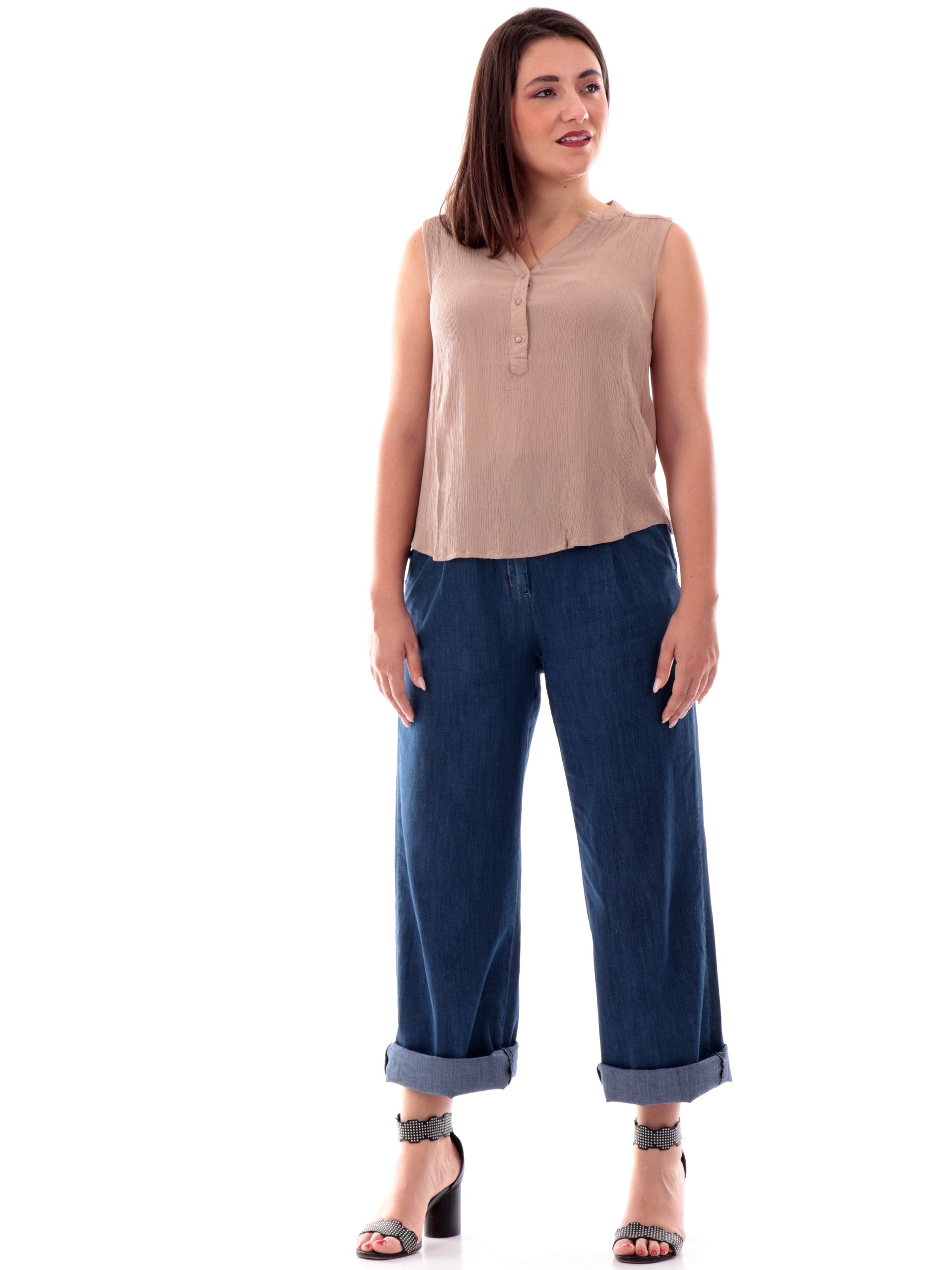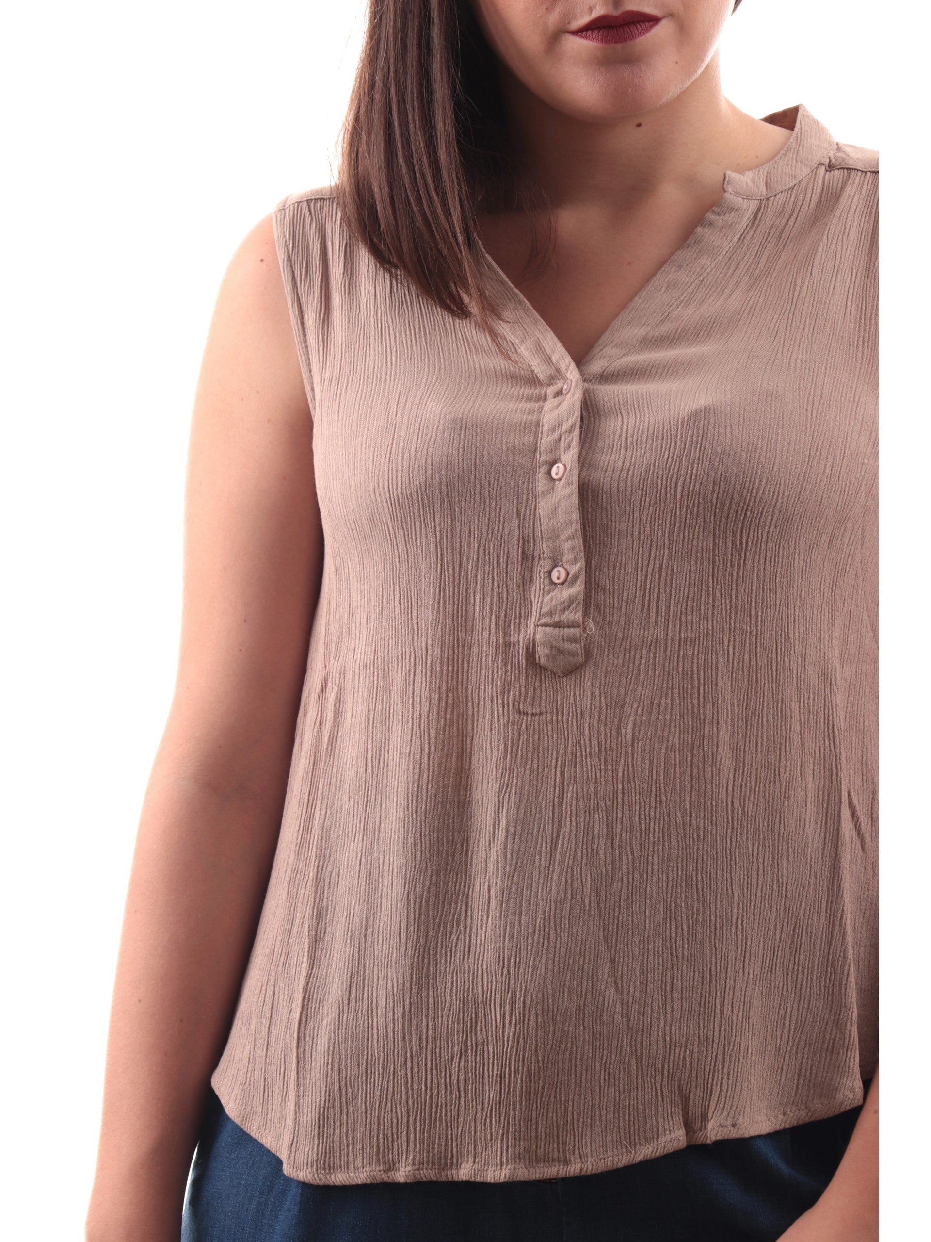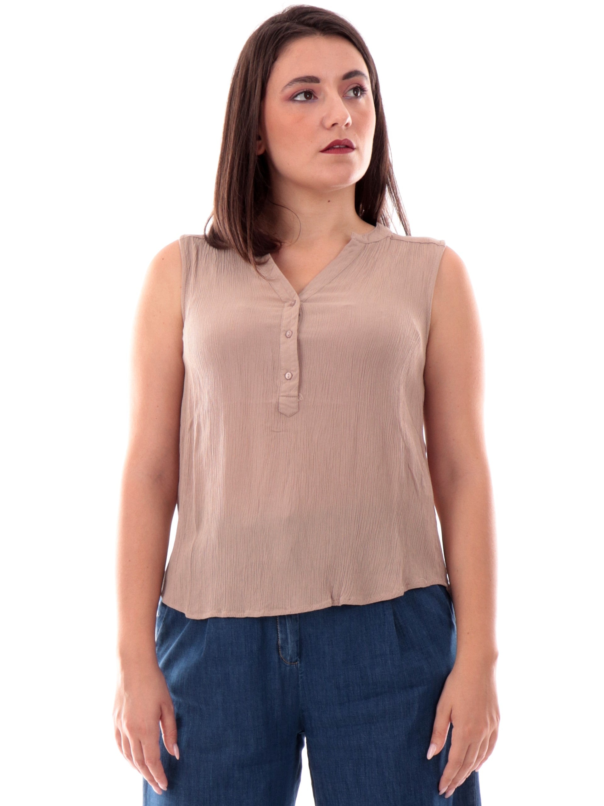 Canotta Only beige scollo a V da donna vestibilità morbida 15213420, realizzata in 100% viscosa. Questa canotta donna smanicata ha lo scollo a V, la chiusura con tre bottoni e la vestibilità morbida.