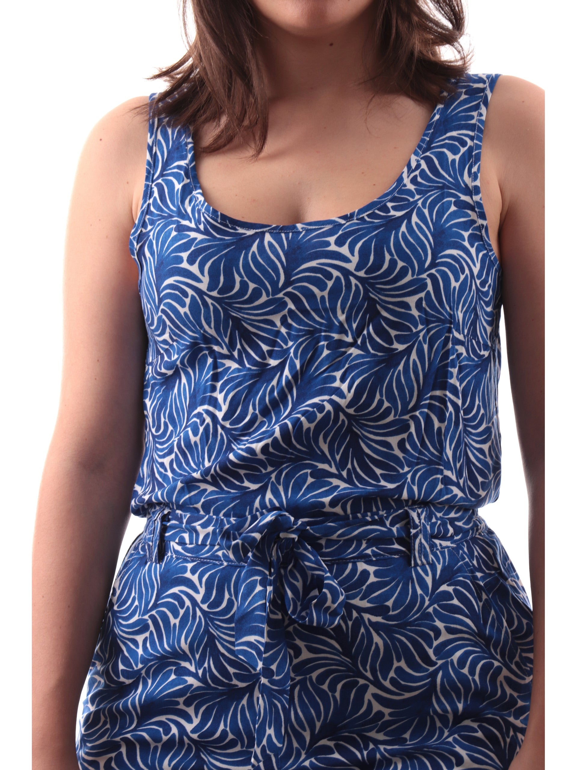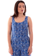 Canotta Only bianca e blu fantasia svasata con occhiello sul retro con bottoncino per facilitarne la vestibilità. Questa maglia blu e bianca è perfetta per donare un tocco di stile ed estro ai tuoi outfit.