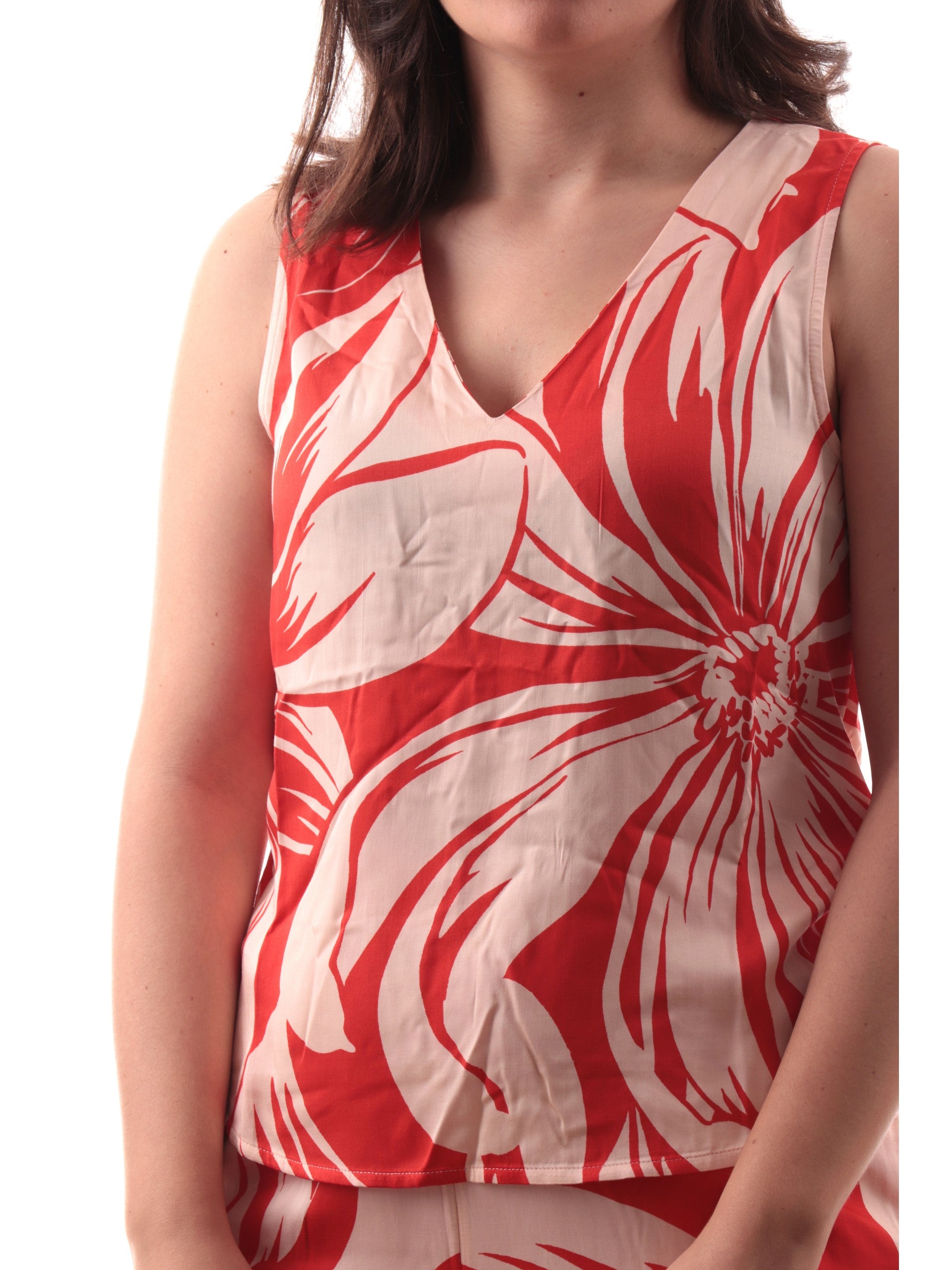 Canotta Only rossa stampa floreale da donna scollo a V 15347475