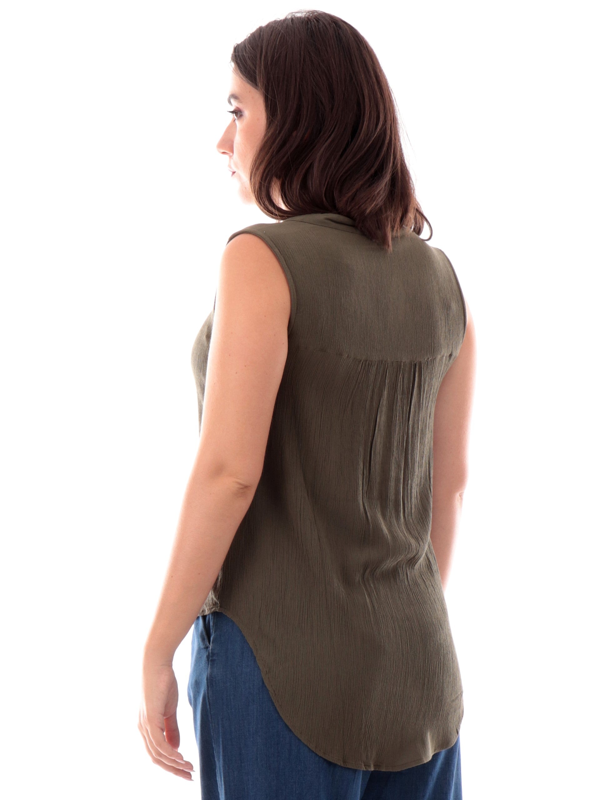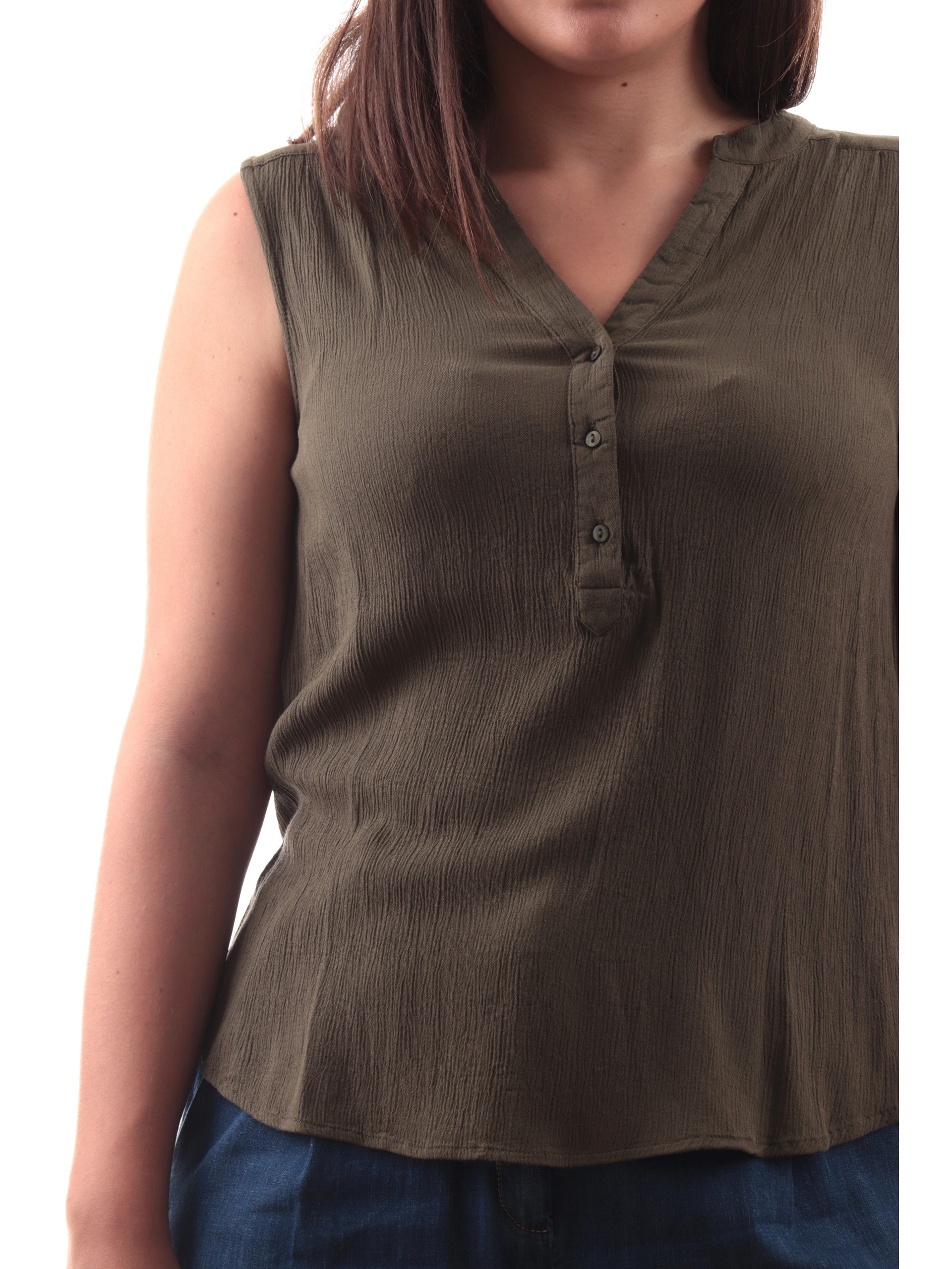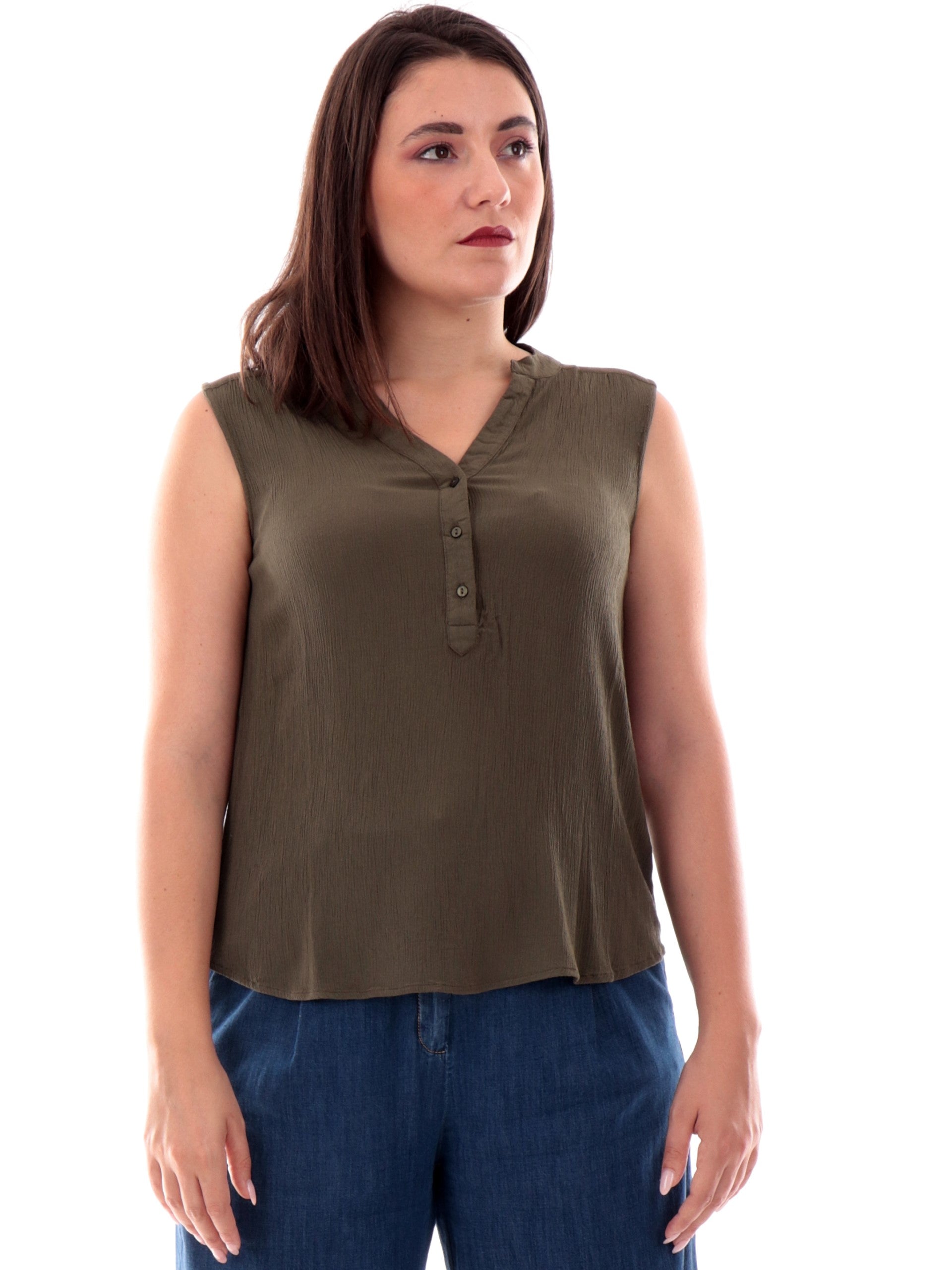 Canotta Only verde militare scollo a V da donna vestibilità morbida 15213420, realizzata in 100% viscosa. Questa canotta donna smanicata ha lo scollo a V, la chiusura con tre bottoni e la vestibilitàmorbida.