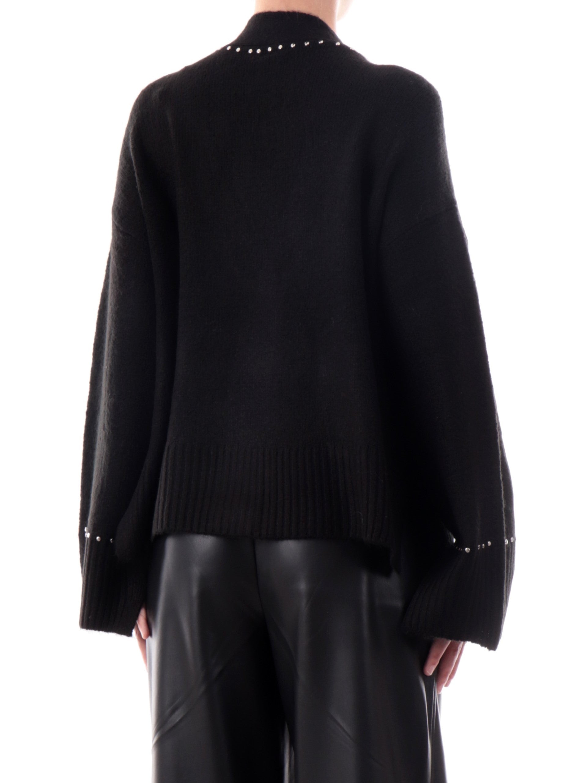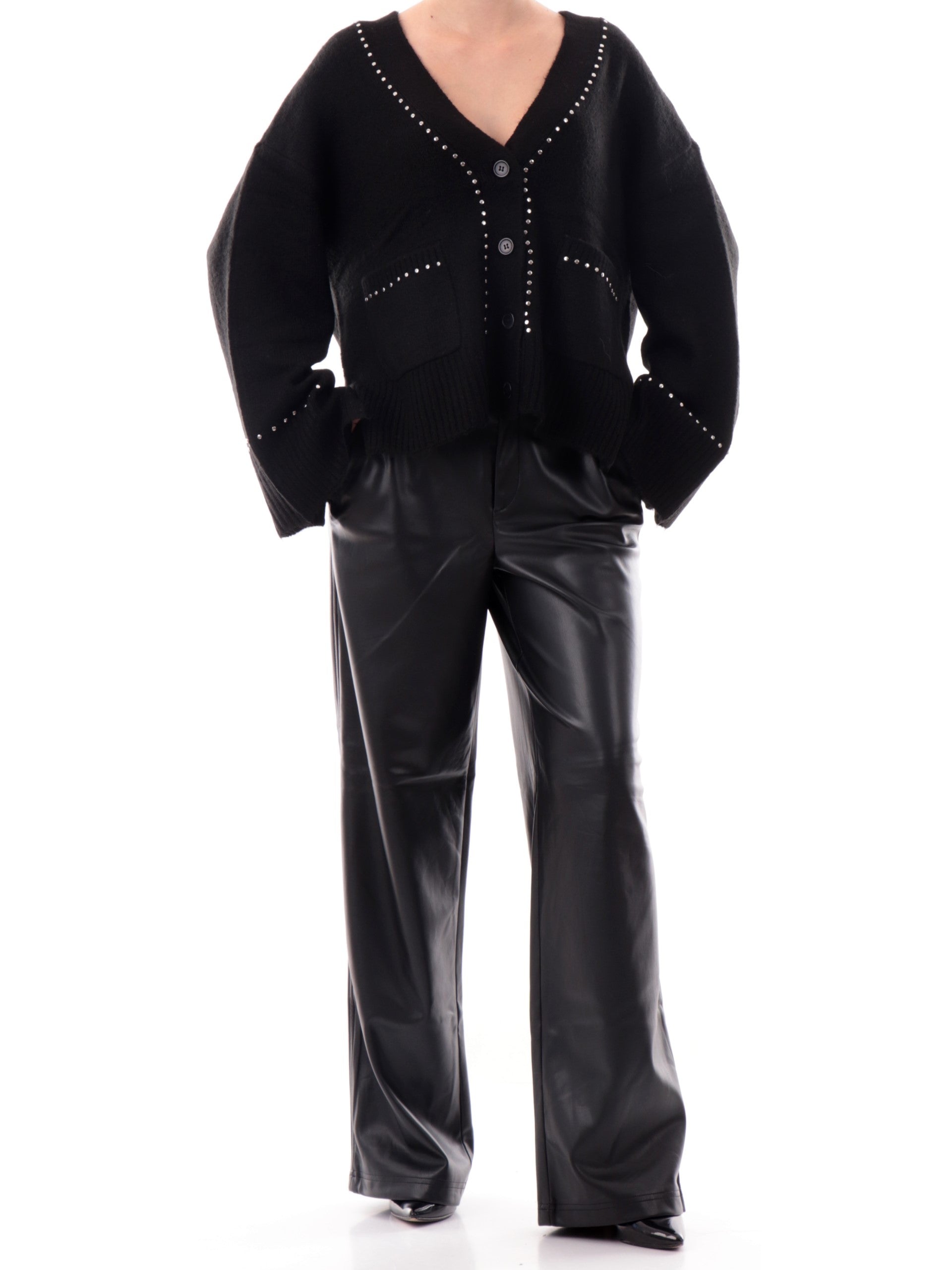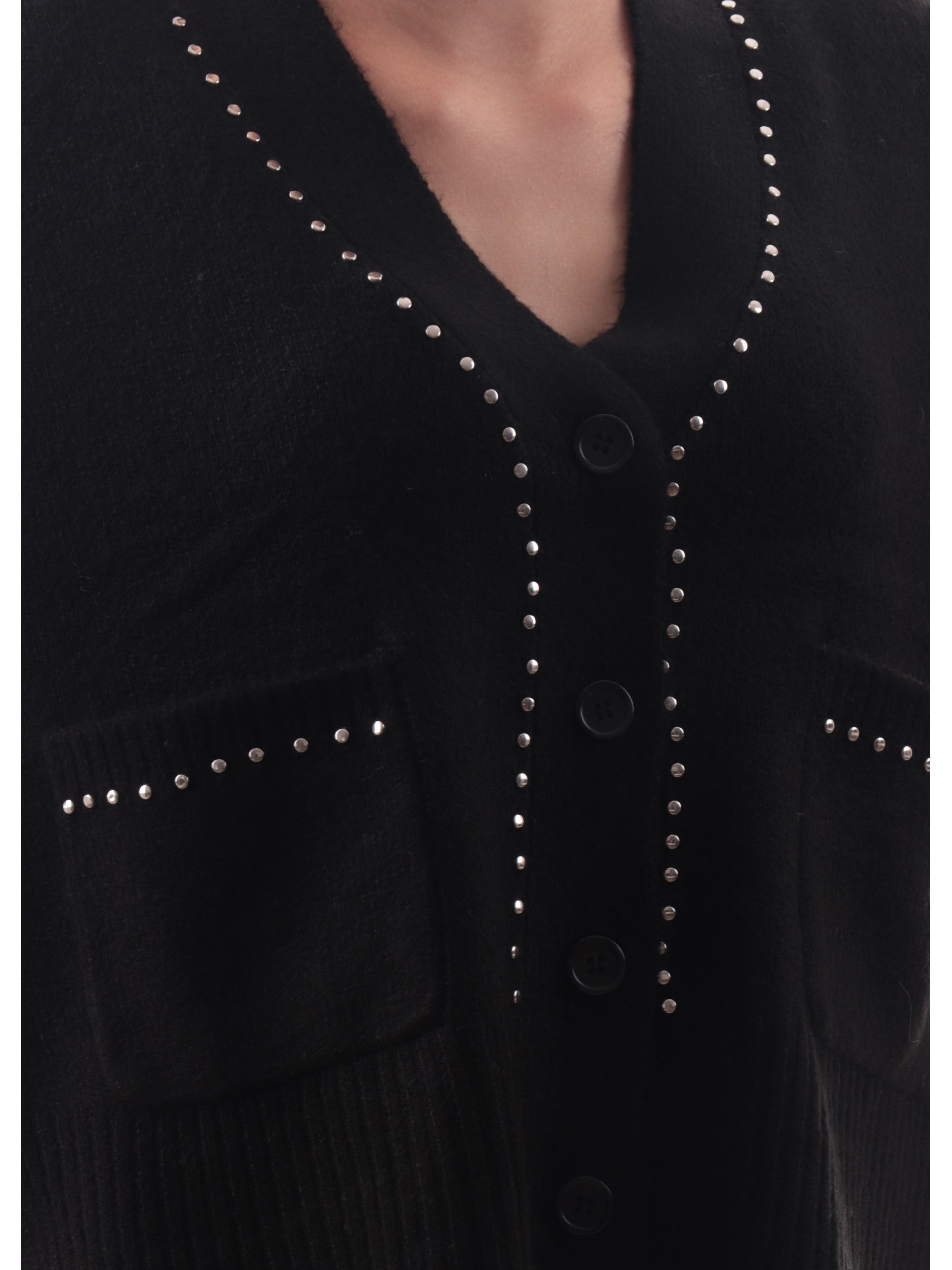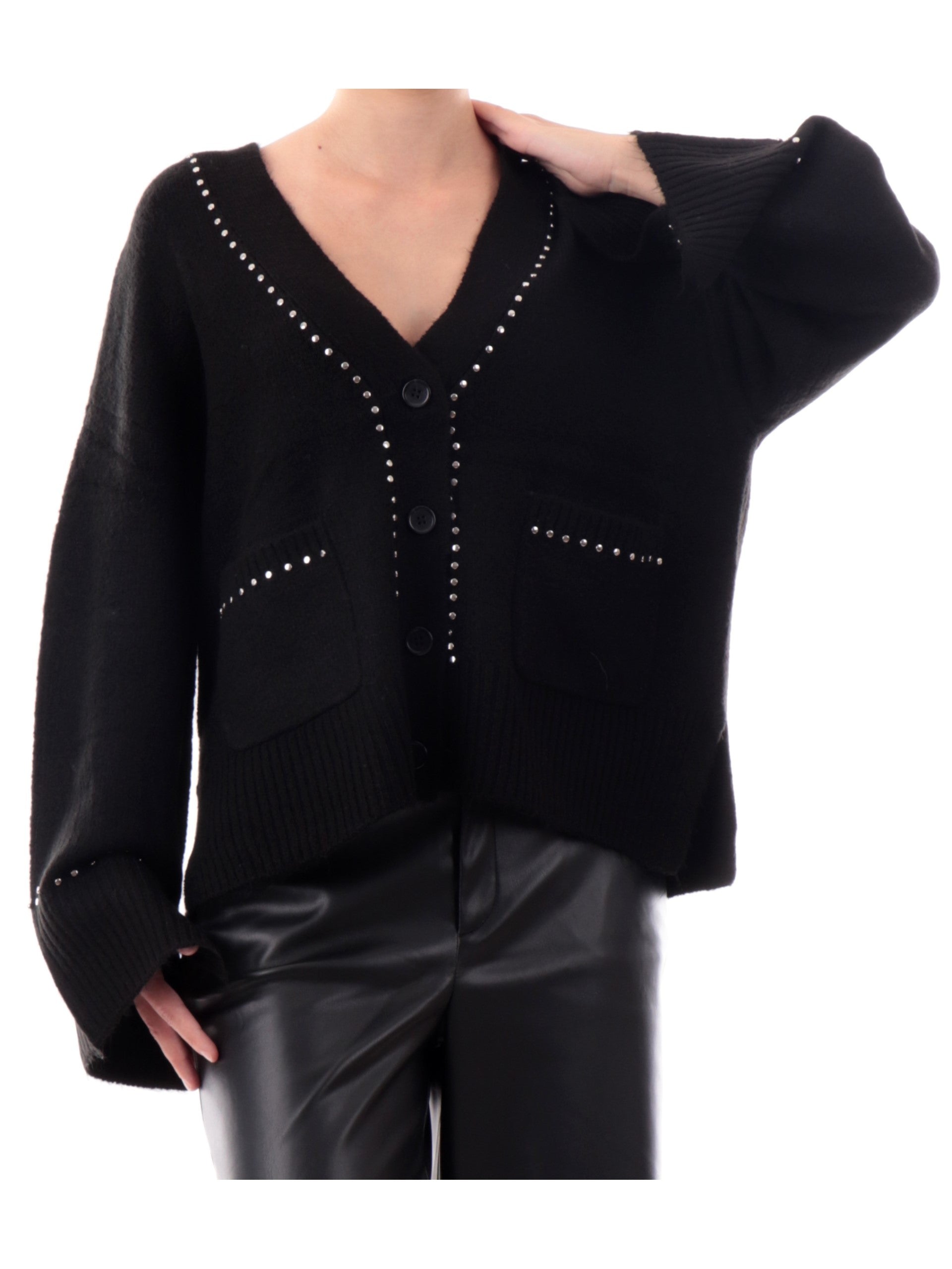 Cardigan Maglione Only nero da donna con borchie argento e tasche 15350625-BLACK