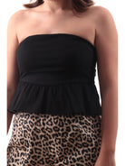 Crop Top nero Only donna realizzato in cotone elasticizzato. Sul fondo di questo top una balza che delinea con femminilità e stile questa maglia leopardata. Lo scollo a cuore valorizza lo scollo .
