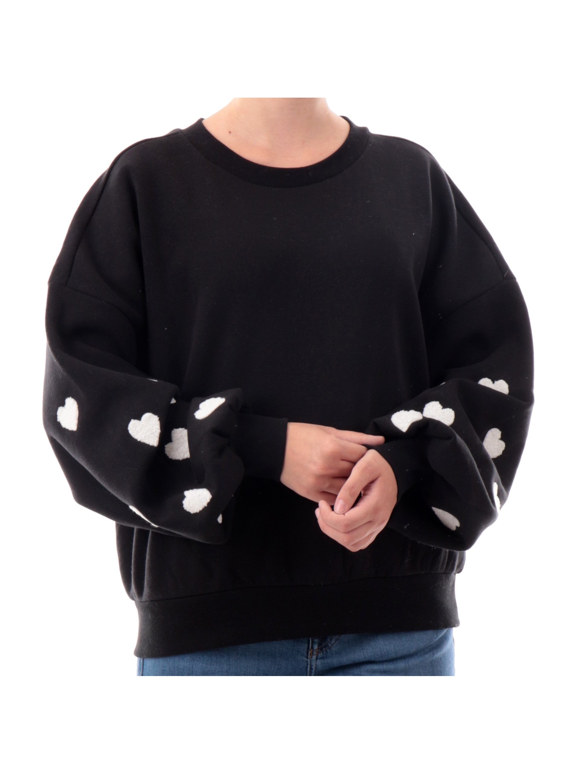 Felpa Only nera da donna girocollo patch cuori 15352921