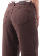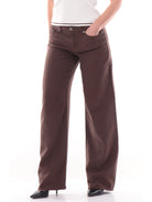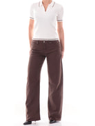 Pantaloni Armani Exchange marroni da donna Low Rise. Questi pantaloni da donna, realizzati in morbido cotone, perfetti per la stagione primavera-estate e perfetti per un look casual, hanno la chiusura con bottone più zip, passanti per la cintura, due tasche laterali aperte, due tasche sul retro a filo e la gamba larga