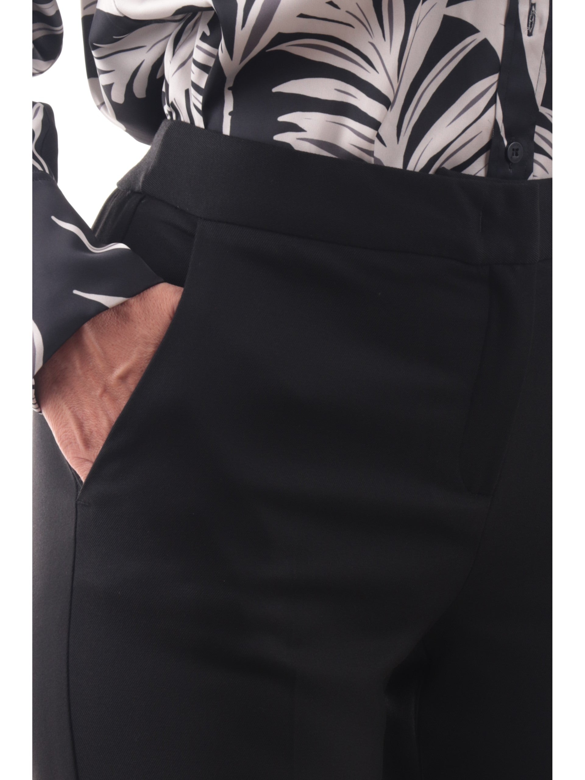 Pantaloni Emme Marella neri da donna Straight MICRON. Questi pantaloni donna Marella neri hanno la chiusura con bottone più zip, due tasche laterali aperte con taglio obliquo e il taglio del pantalone dritto.
