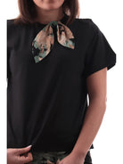 T-shirt Emme Marella nera da donna con nodo fantasia floreale ARONA