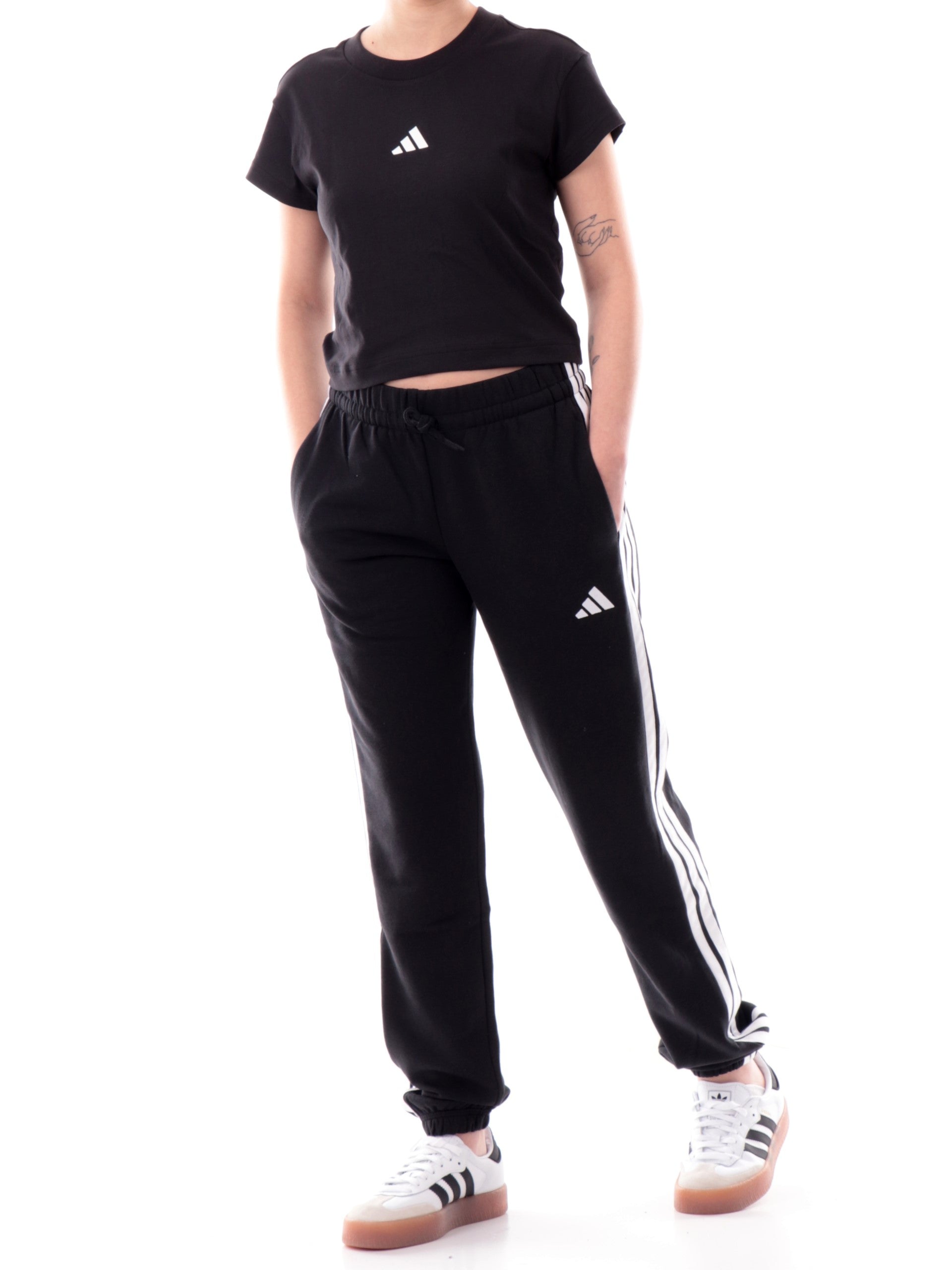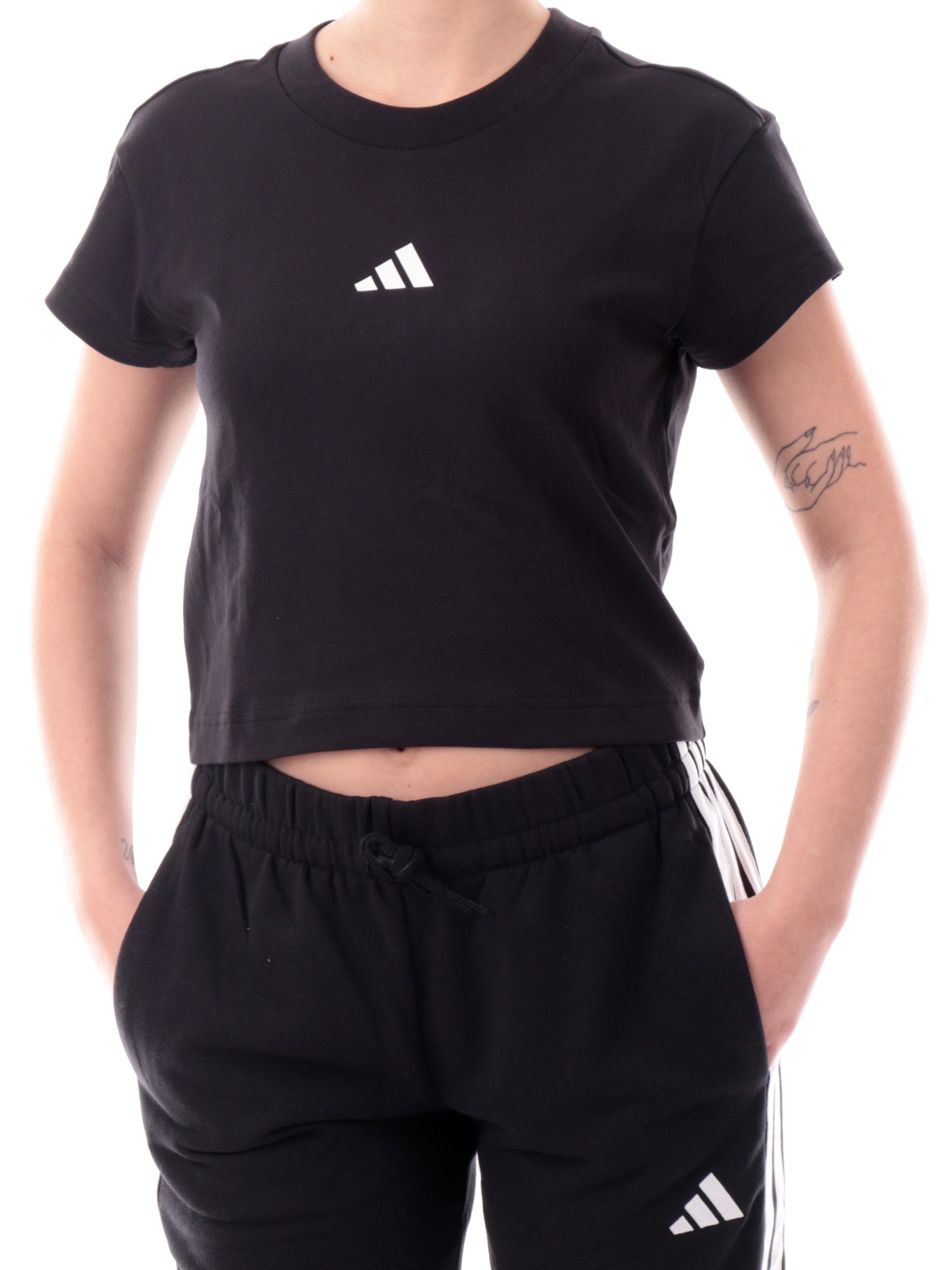 T-shirt Adidas nera da donna logo Adidas ricamato JE4000
