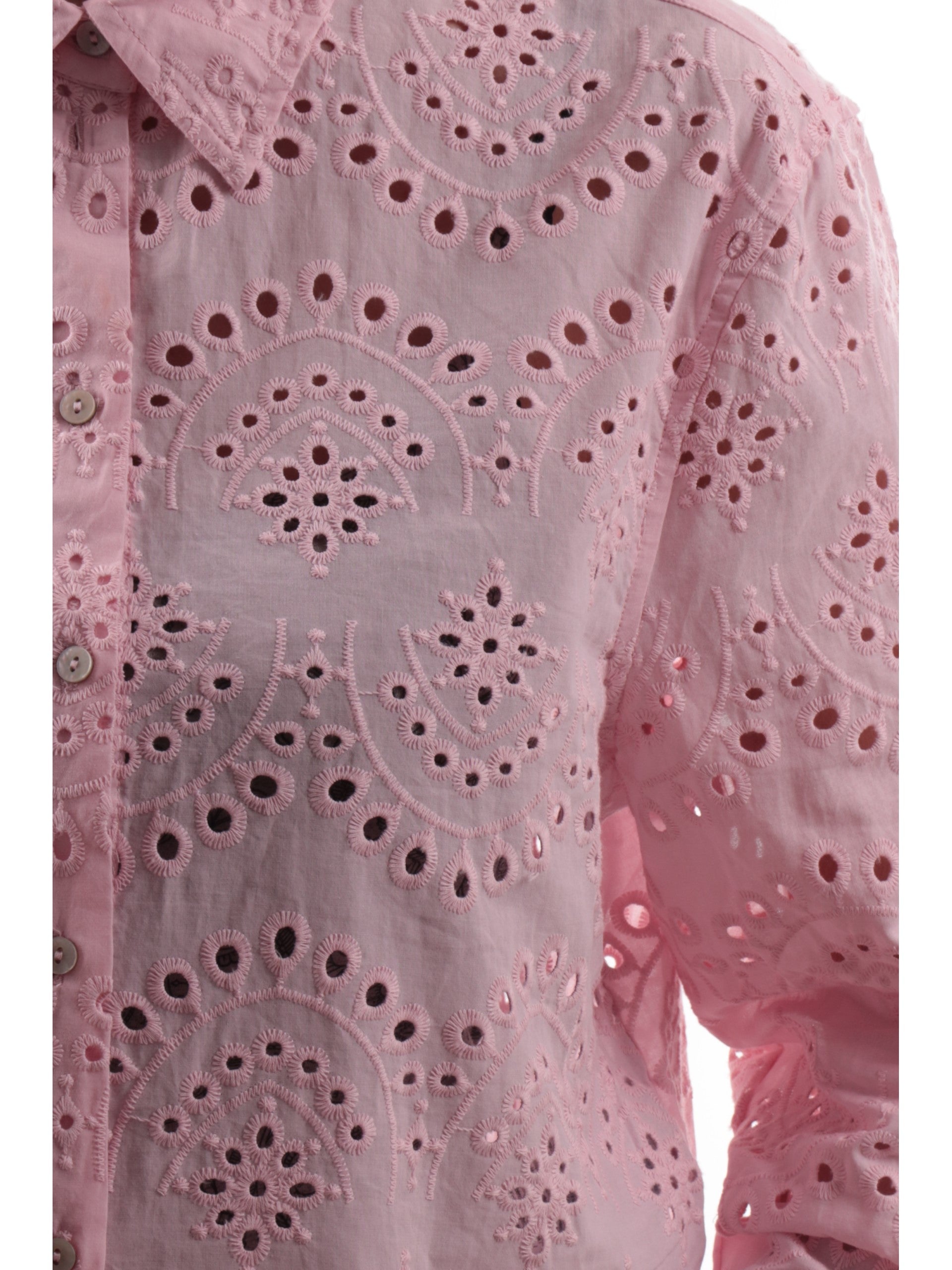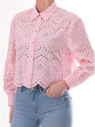 Camicia traforata rosa Only da donna Valais. Questa camicia da donna , realizzata 100% in puro cotone, perfetta per la stagione primavera-estate, è caratterizzata dal colletto classico, chiusura a bottoni, polsini con bottoni e ricami traforati. Questa camicia Only traforata è perfetta con un top sotto o una T-shirt ed è perfetta sia su un look casual e sia su un look sportivo