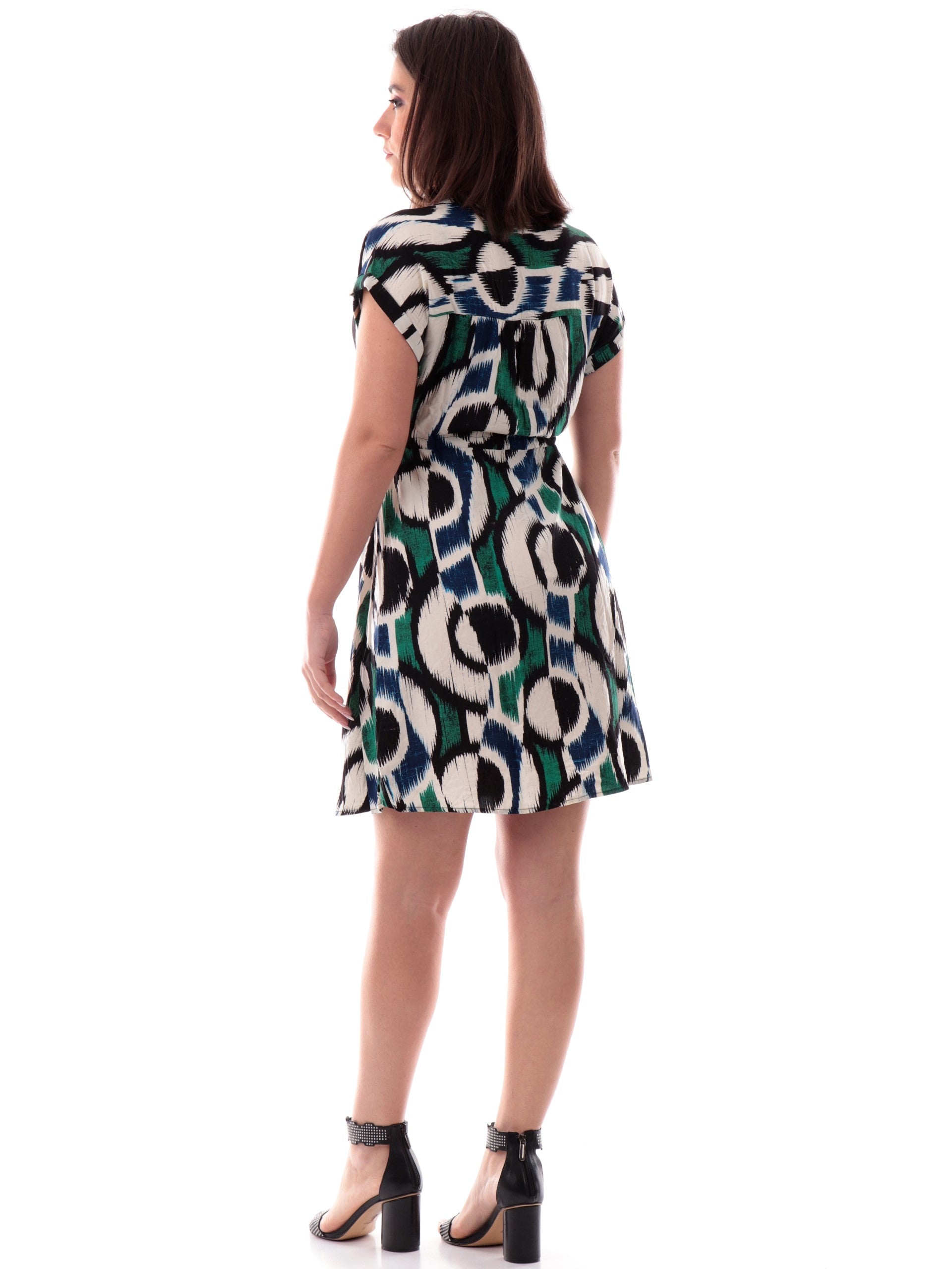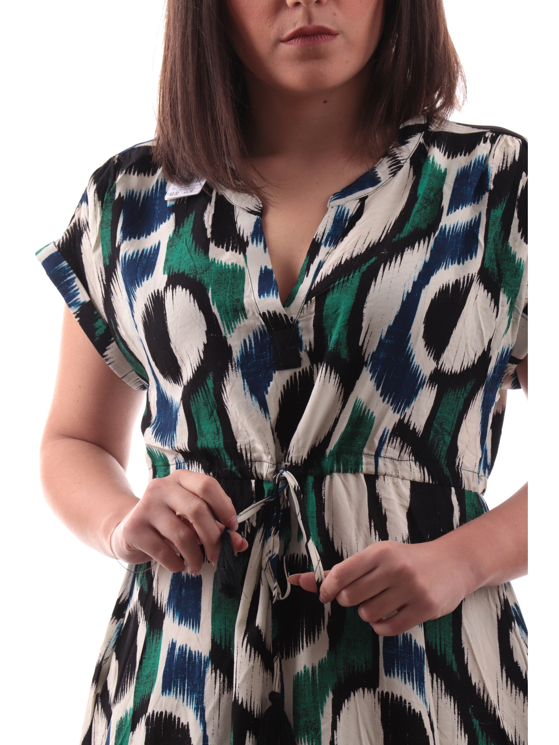 Vestito fantasia foulard Molly Bracken multicolor da donna vestibilità morbida N290DP, realizzato in 100% viscosa. Questo abito donna Molly ha le maniche corte con risvolto, lo scollo a V, il punto vita elasticizzato regolabile con laccetti, la fantasia foulard all over e la vestibilità morbida.