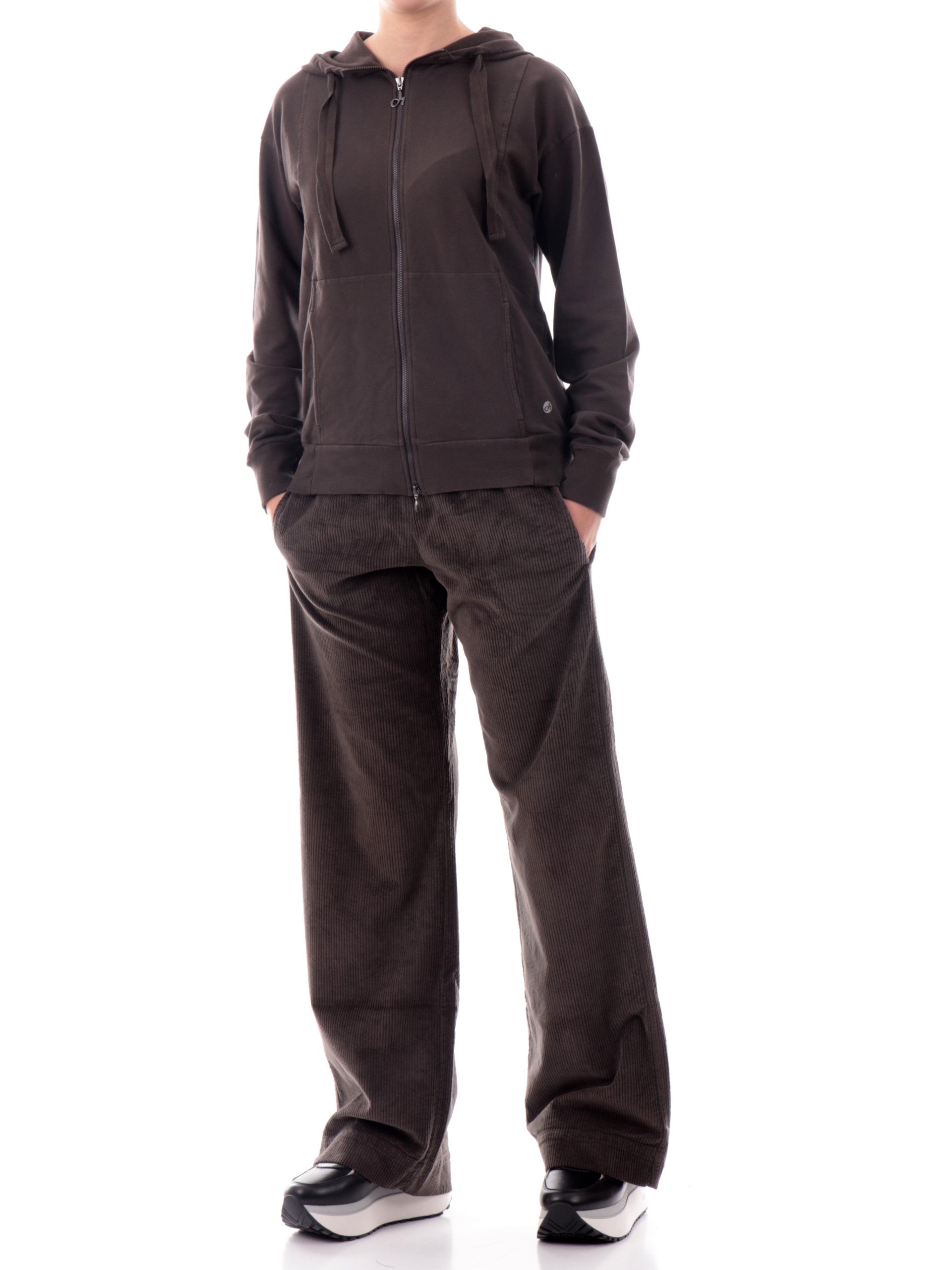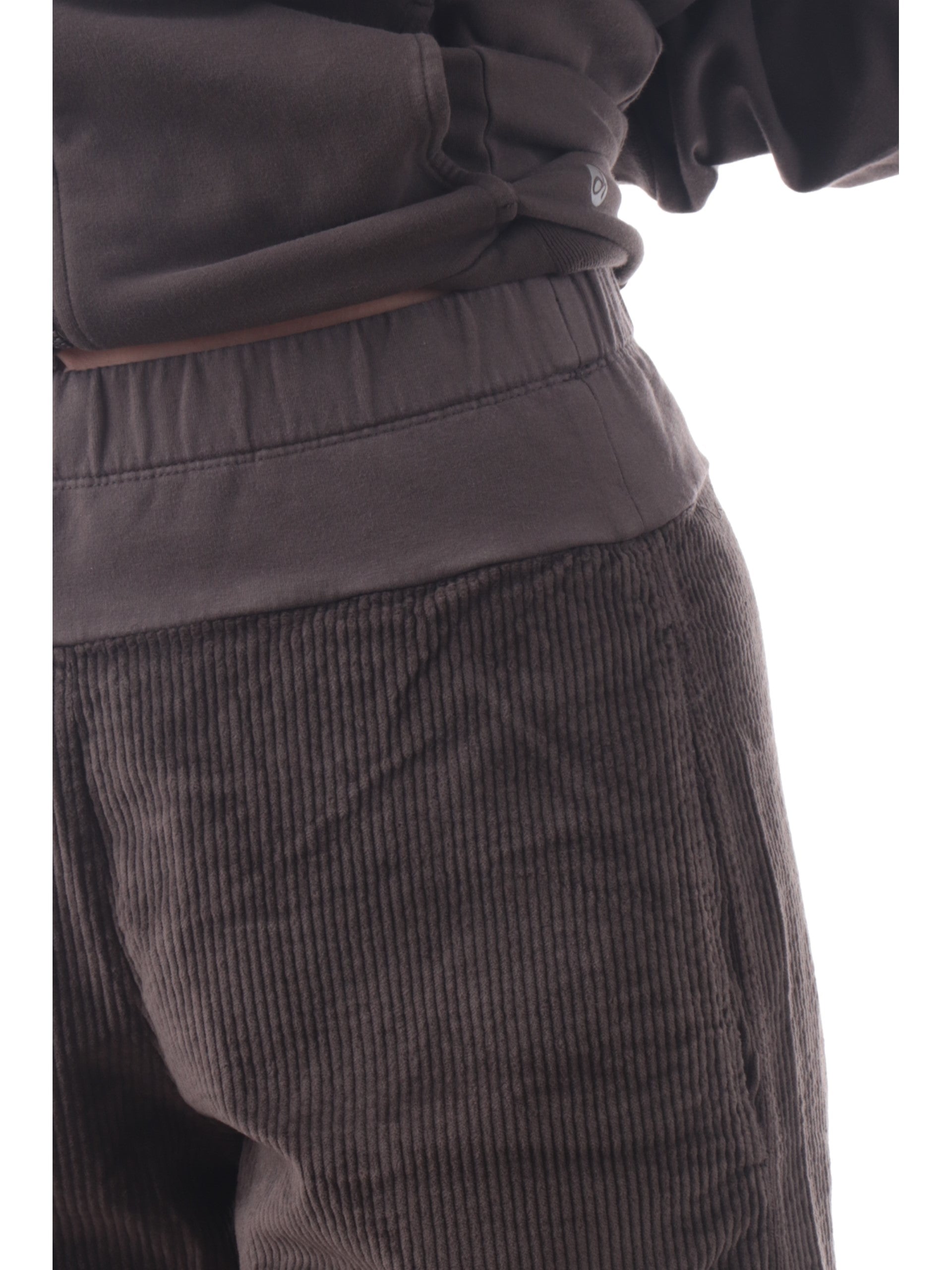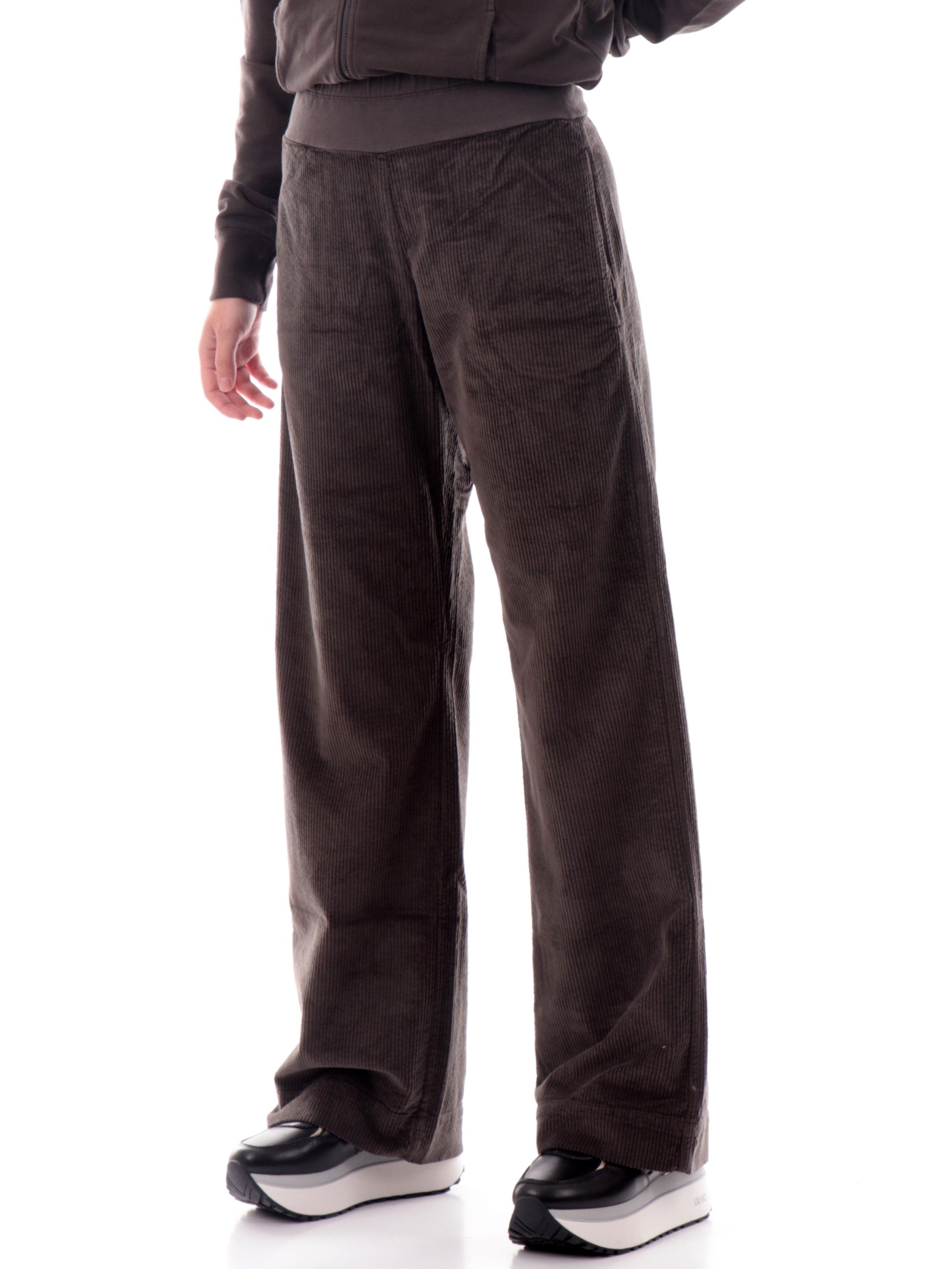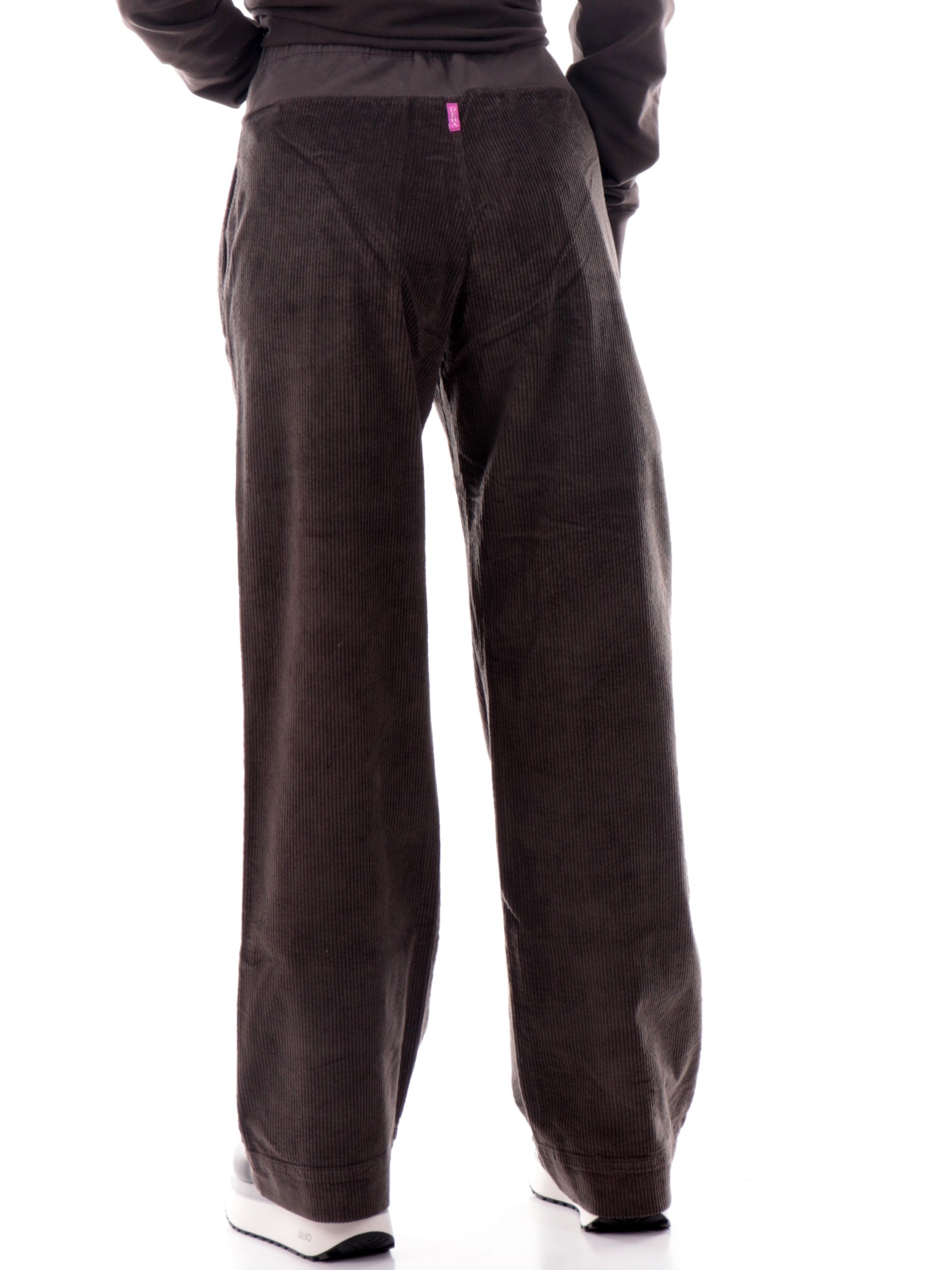 Pantaloni in velluto marroni Deha da donna a gamba larga. Questi pantaloni marroni Deha a gamba larga sono realizzati in cotone e hanno la banda elastica sul punto vita, due tasche laterali aperte e il fondo largo. Questi pantaloni Deha marroni da donna offrono un sostegno leggero e confortevole