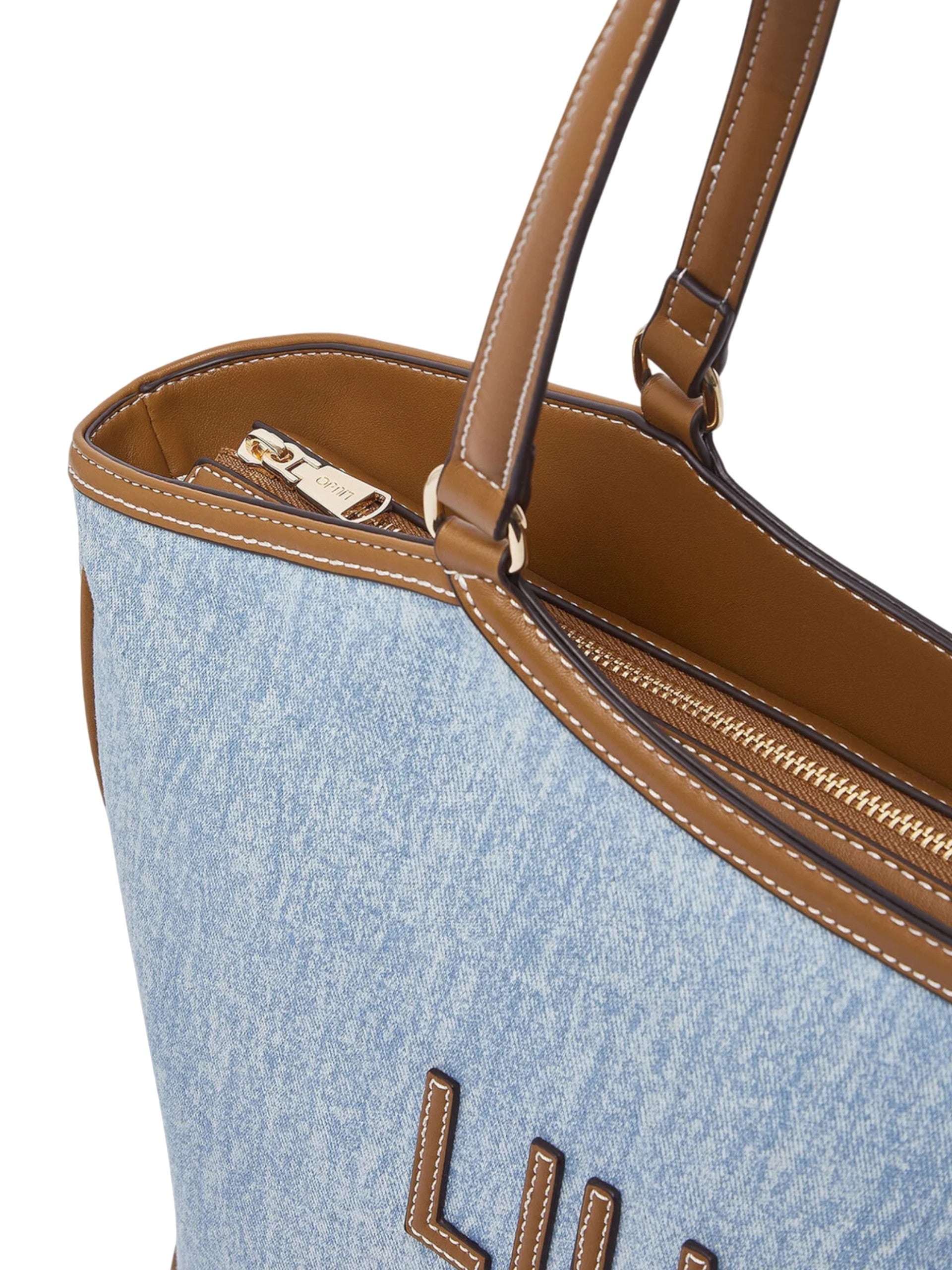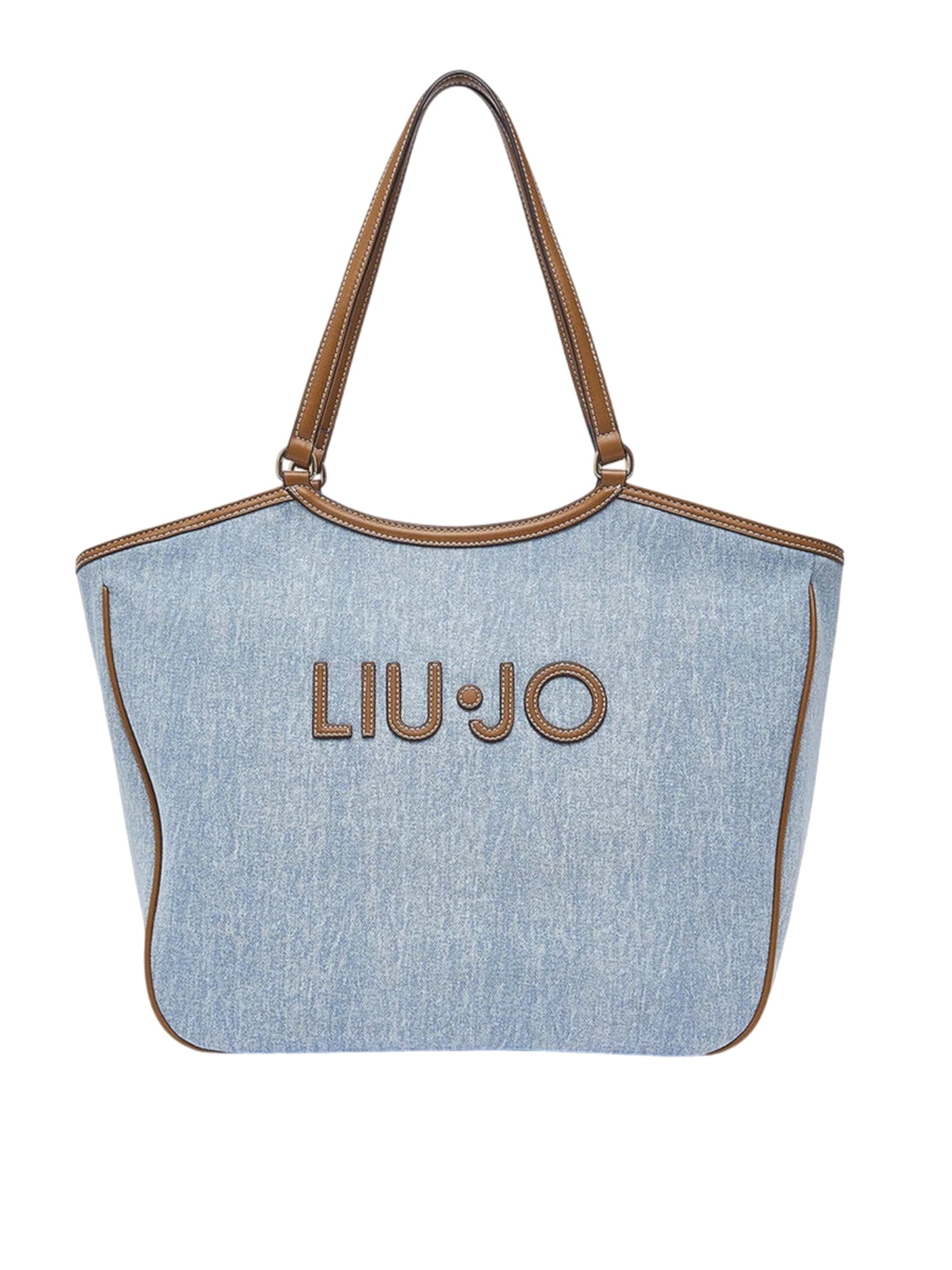 Borsa Liu Jo effetto denim. Questa borsa Liu Jo da donna con la scritta del brand applicata sul davanti. La borsa da donna si presta come un'elegante borsa a mano e a spalla. Internamente presenta ununico vano chiuso con zip, all'interno di questa borsa troviamo un unico scomparto ampio con una tasca con zip. Una borsa Liu Jo dalle linee semplici ed essenziali mentre i suoi dettagli glamour ti permettono di trasformarla e adattarla a te.