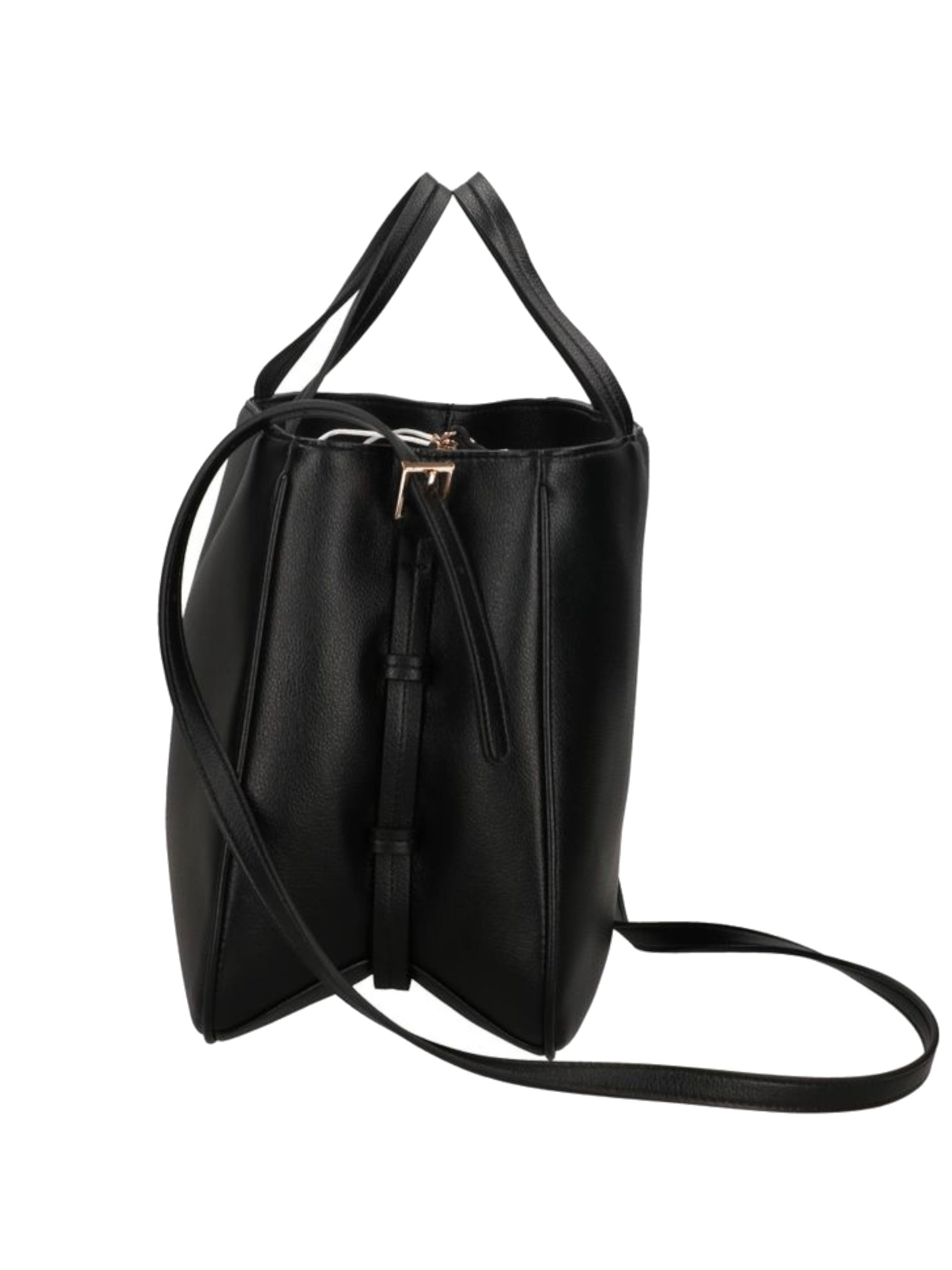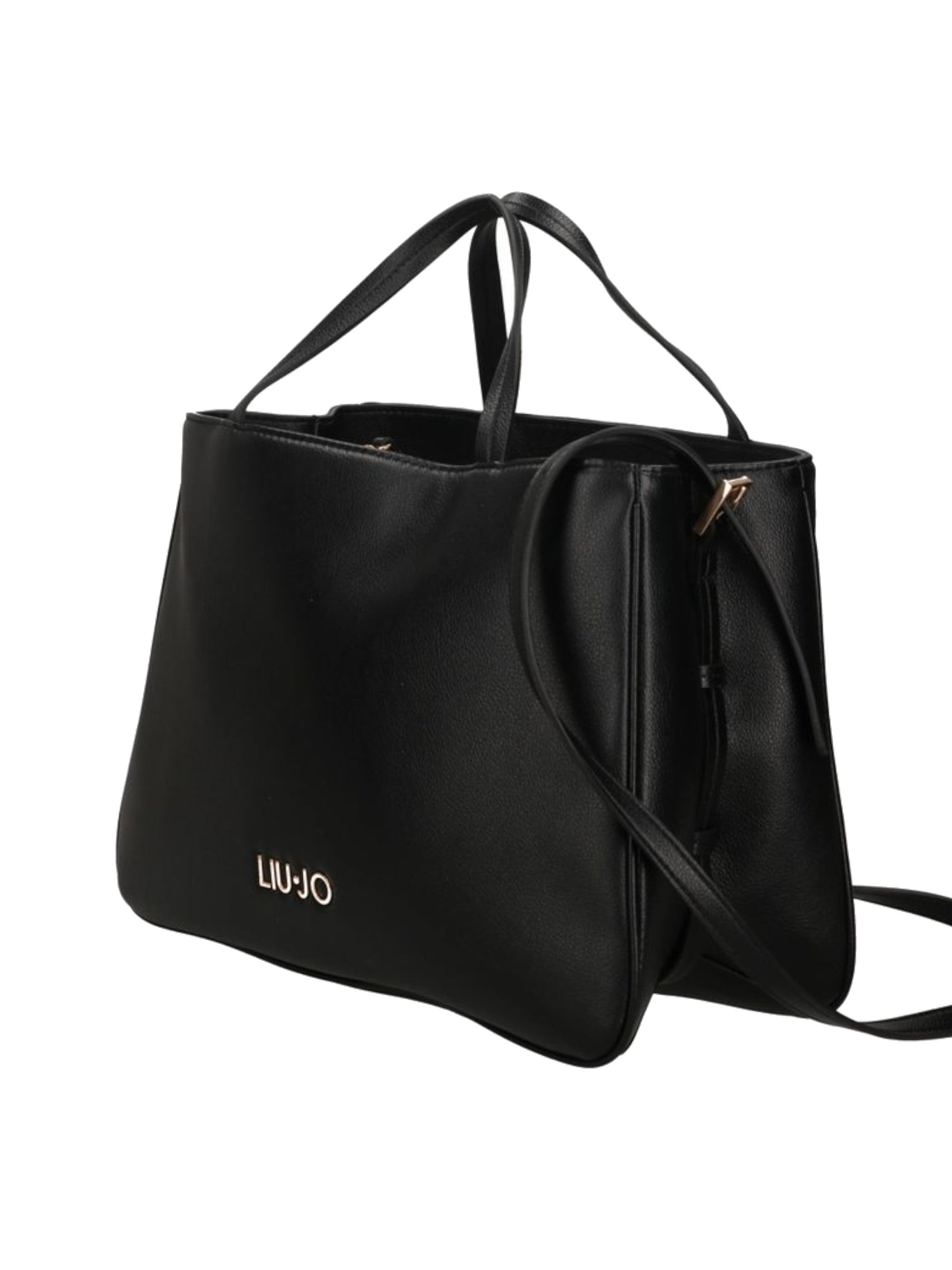 Borsa Liu Jo nero da donna Stachel con tracolla. Questa borsa grande Liu Jo, realizzata in ecopelle, perfetta per un look sia elegante che casual, è caratterizzata da tre scomparti, uno con la chiusura a zip e due con bottone automatico, nel primo scomparto troviamo troviamo una tasca con zip, nel secondo scoparto con la chiusura a zip possiamo riporre qualsiasi oggetto, nel terzo scomparto troviamo una tasca aperta. Questa borsa nera Liu Jo è caratterizzata dalla tracolla regolabile e infine sul davanti troviamo il logo Liu Jo applicato