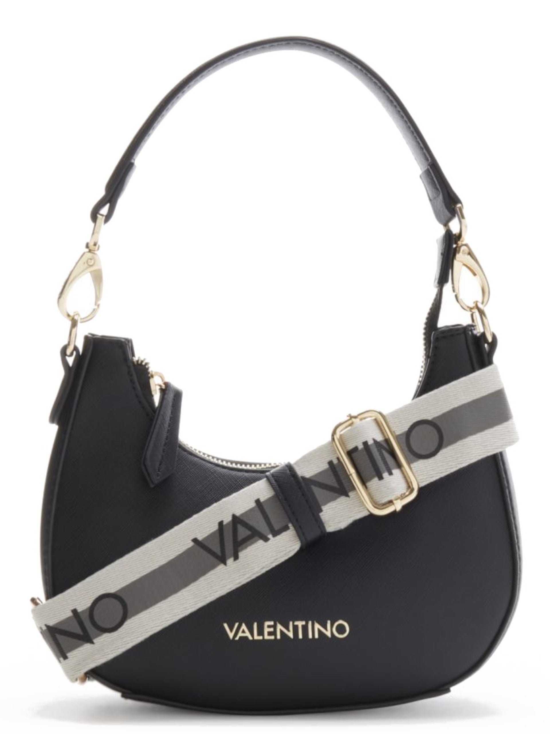 Borsa Valentino nera Zero Re Medium da donna con doppia tracolla VBS7B305. Questa borsa donna Valentino nera ha il manico rimovibile con salvaspalla, due tracolle rimovibili e regolabili (una logata), la chiusura full zip centrale e il logo Valentino sul davanti. All'interno di questa tracolla Valentino troviamo un unico scomparto con due tasche interne.