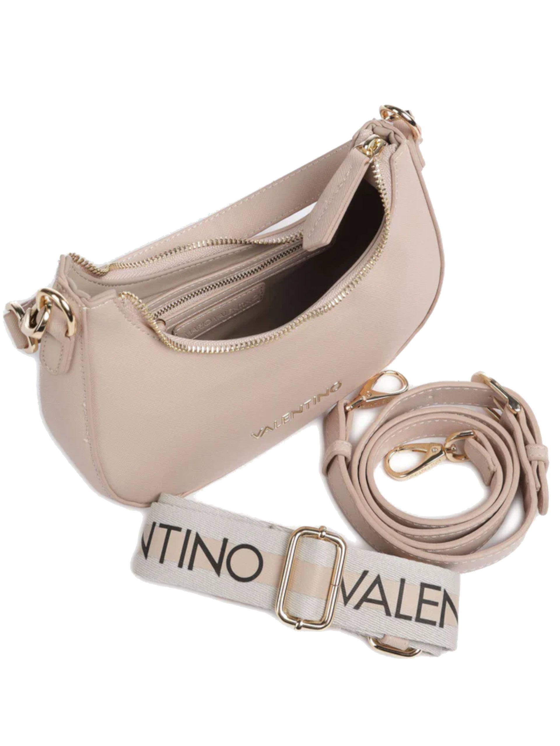 Borsa Valentino rosa Zero Re Medium da donna con doppia tracolla VBS7B305. Questa borsa donna Valentino rosa ha il manico rimovibile con salvaspalla, due tracolle rimovibili e regolabili (una logata), la chiusura full zip centrale e il logo Valentino sul davanti. All'interno di questa tracolla Valentino troviamo un unico scomparto con due tasche interne.