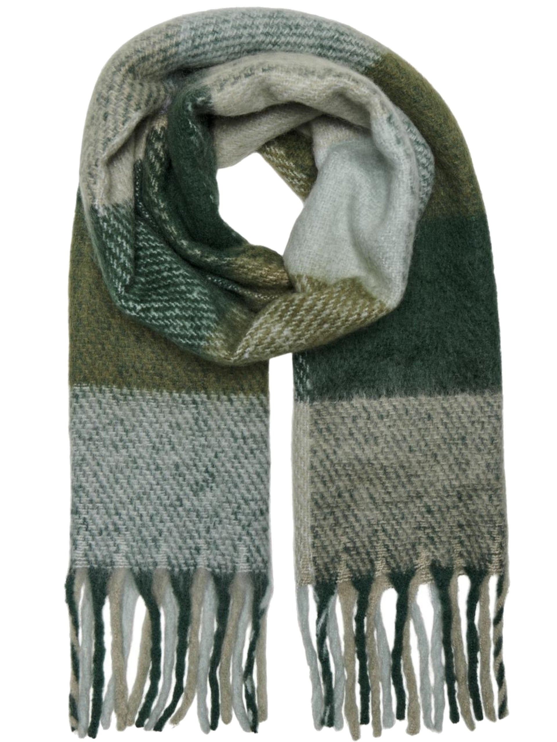 Sciarpa Only verde a quadri da donna Check 15297974. Questo poncho donna Only verde è realizzato con fantasia a quadri e ha gli orli sfrangiati.