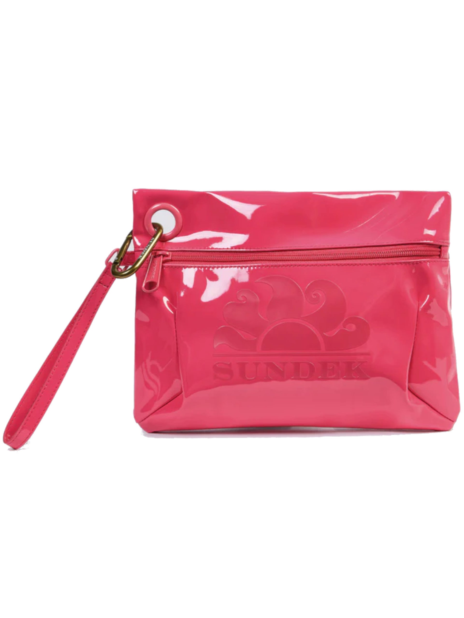 Borsa mare Sundek fucsia da donna Clutch Bag AW416ABPV400 A7000. Questa borsa mare Sundek fuxia ha la tasca sul davanti con chiusura zip, la stampa del brand sul davanti, il laccetto che consente il trasporto a mano e un moschettone logato multifunzione.
