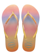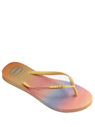 Infradito Havaianas donna dotate di suola antiscivolo. Da sempre icone di qualità, le infradito Havaianas hanno le fascette con scritta del brand. L'inconfondibile motivo a grana di riso sulla suola interna, al contatto con la pianta del piede, dona notevole comfort consentendo di indossare queste ciabatte Havaianas sia al mare che in città. Queste infradito Havaianas si ispirano ai caldi e avvolgenti colori del tramonto.