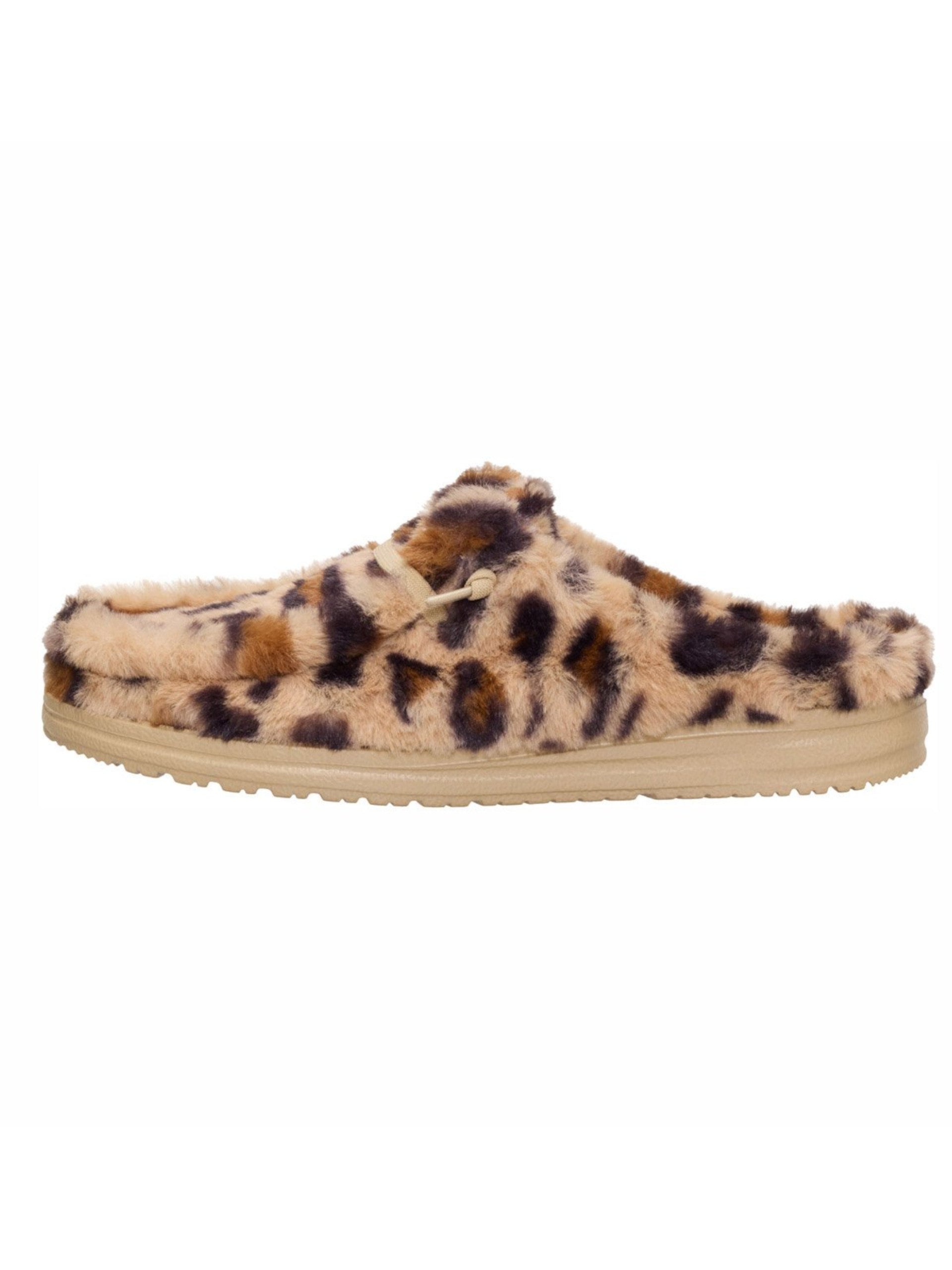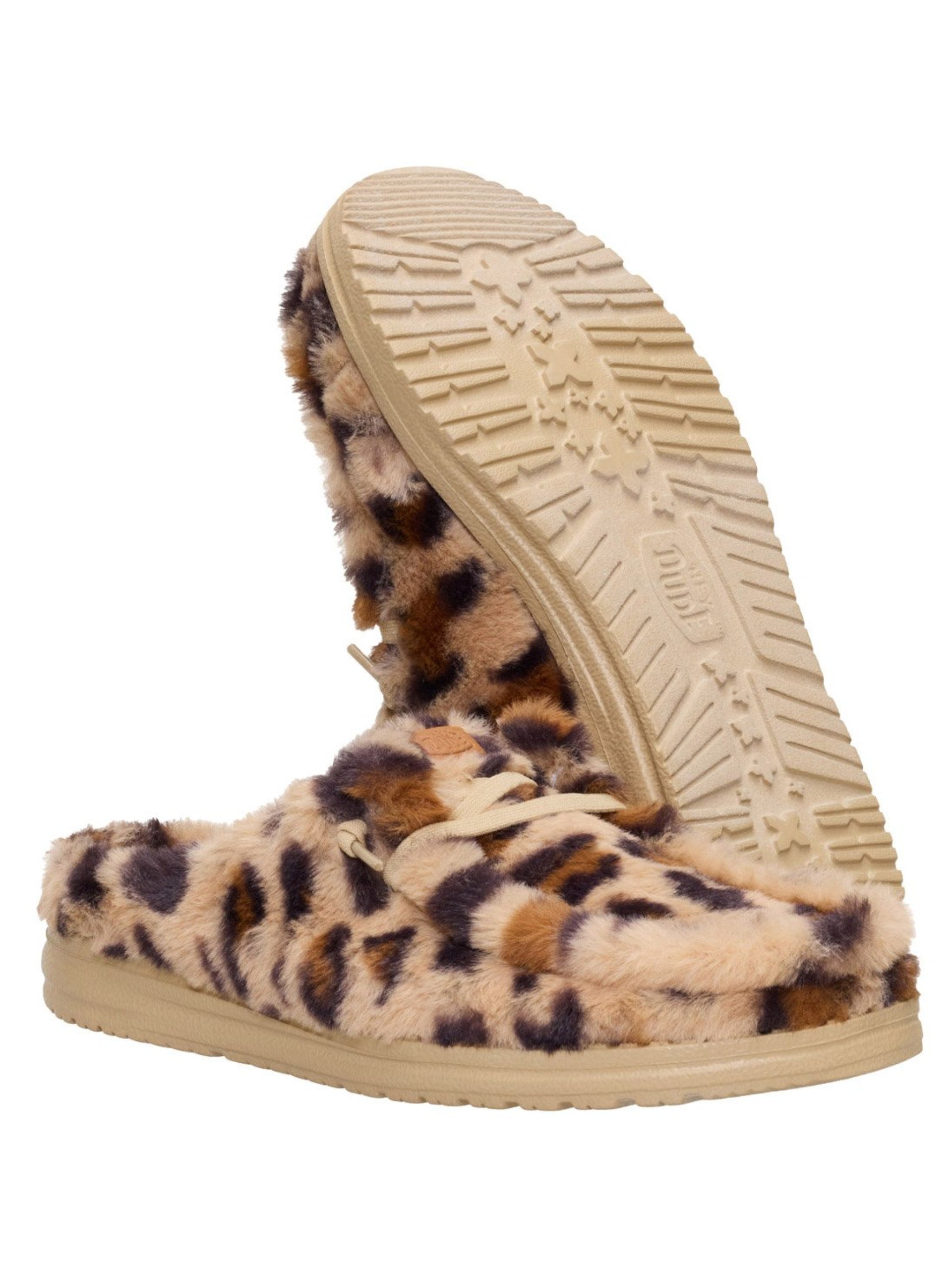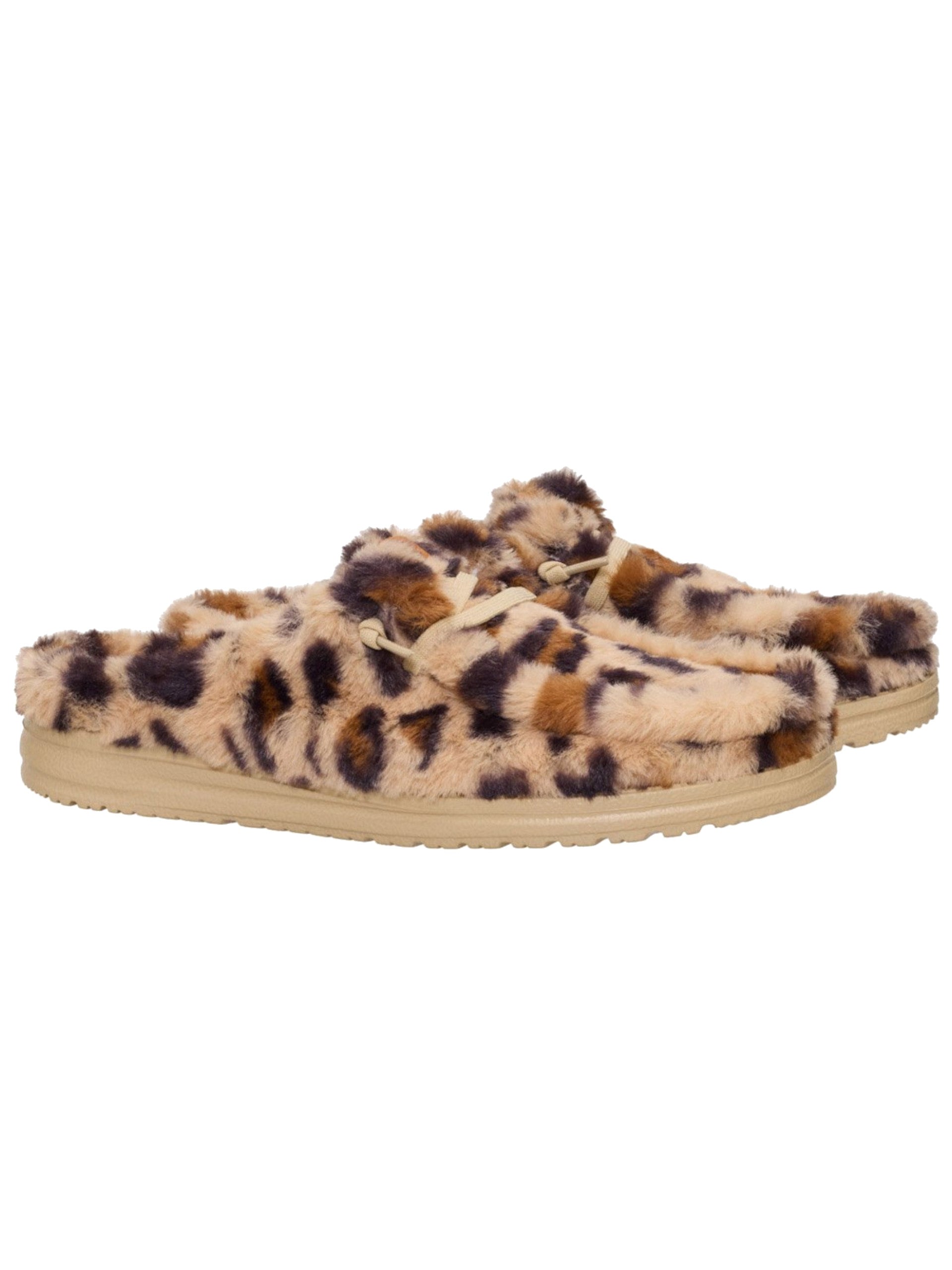 Scarpe platform HEY DUDE da donna wendy slipper leo fur. Queste scarpe Hey Dude hanno la fantasia animalier e realizzate in morbido e caldo tessuto,che garantisce il massimo comfort. Sul davanti troviamo la chiusura a lacci e il logo del brand,la suola in gomma