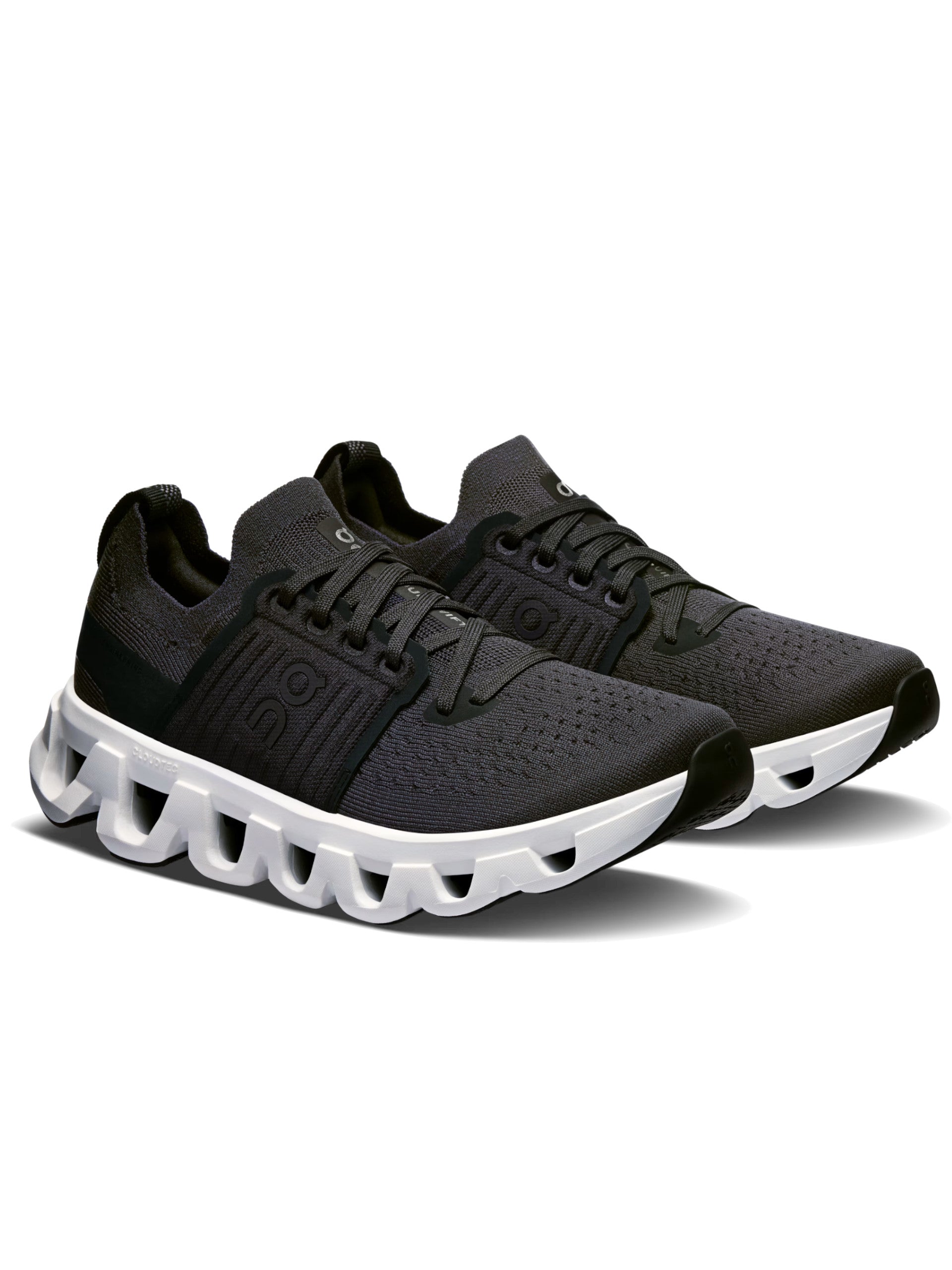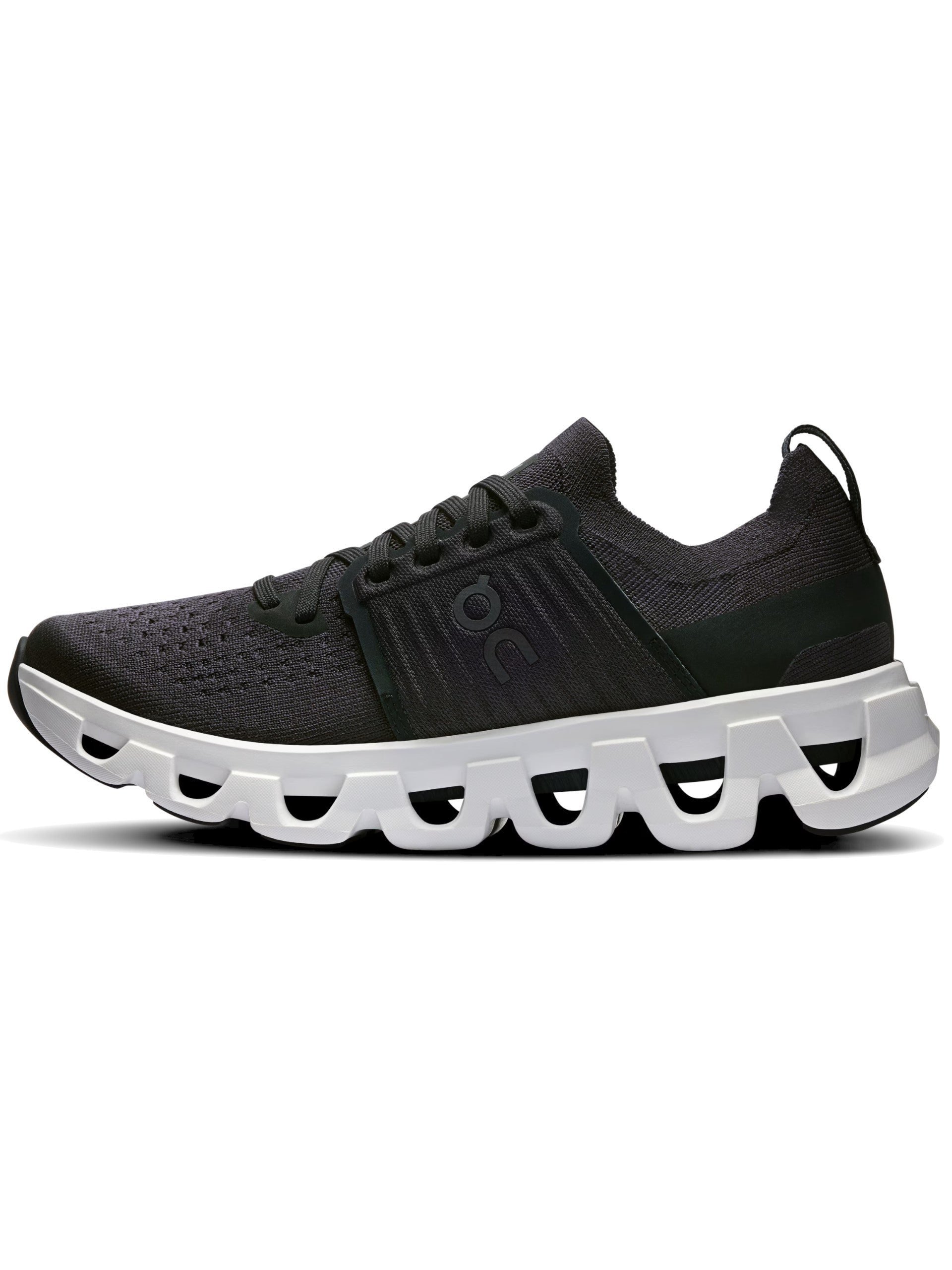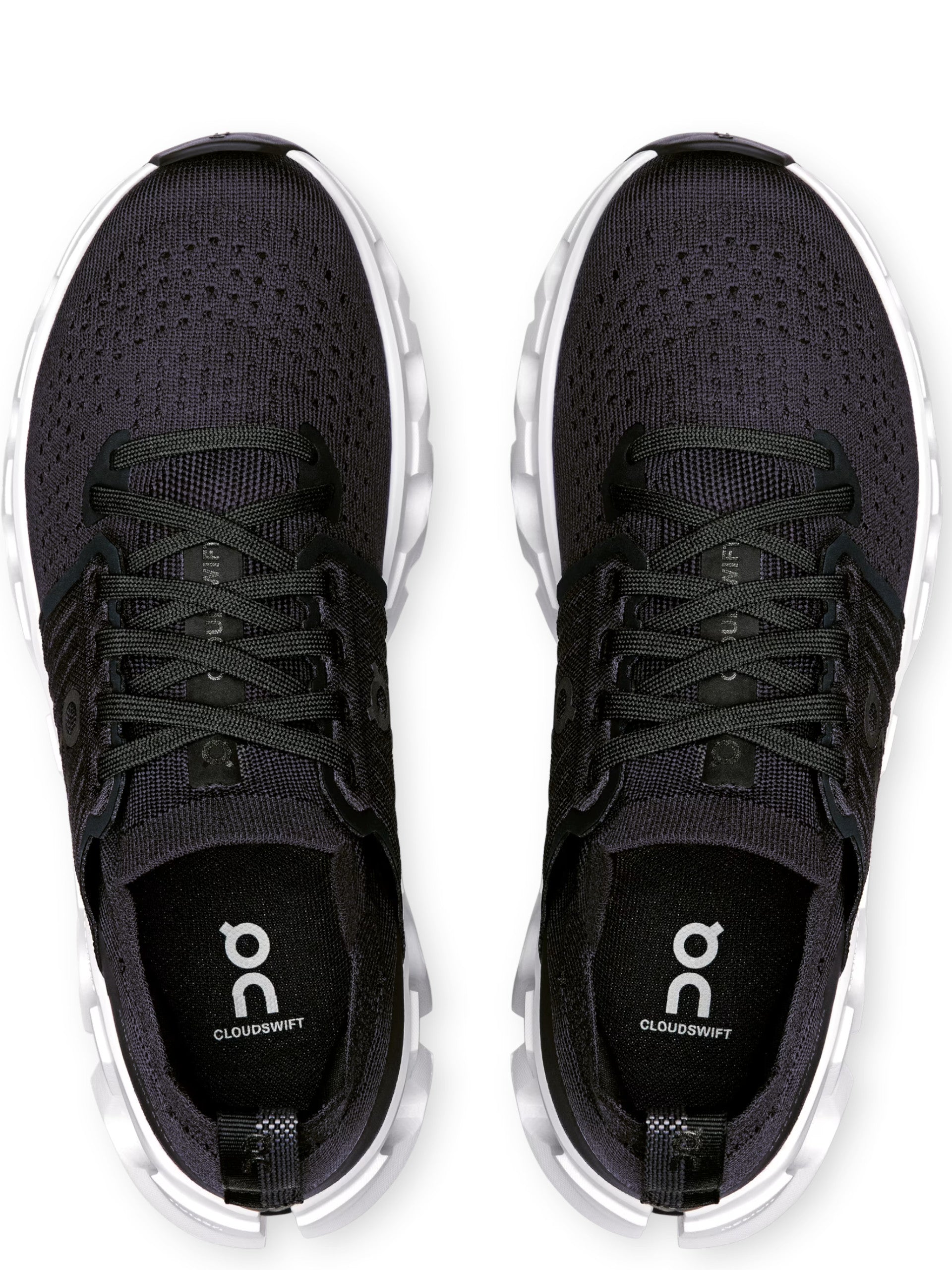 Scarpe Cloudswift 4 nere. Queste scarpe Cloudswift nere hanno la tomaia realizzata in tessuto traspirante, la chiusura con lacci, la suola in gomma traforata e il logo del brand in ambi lati