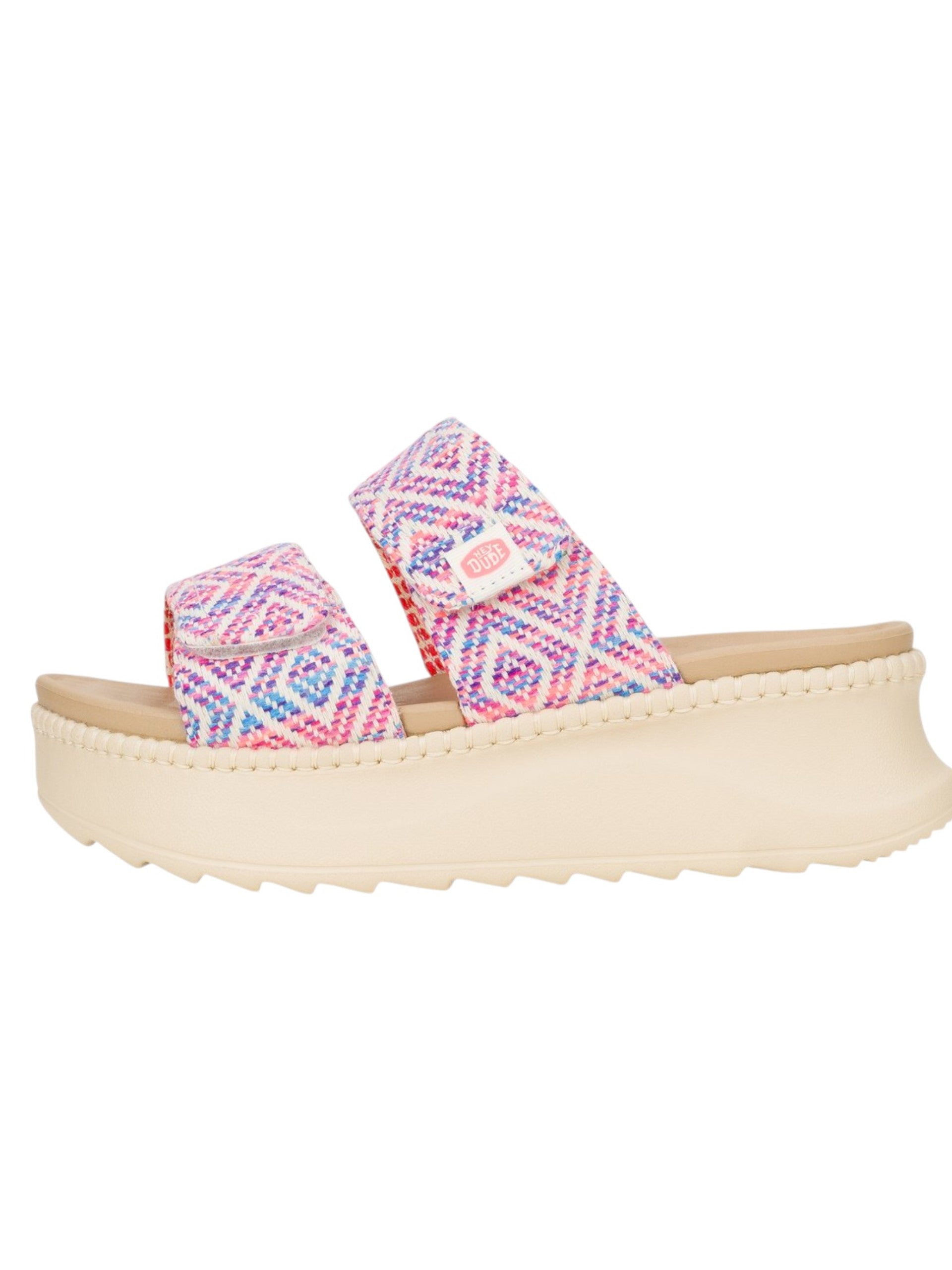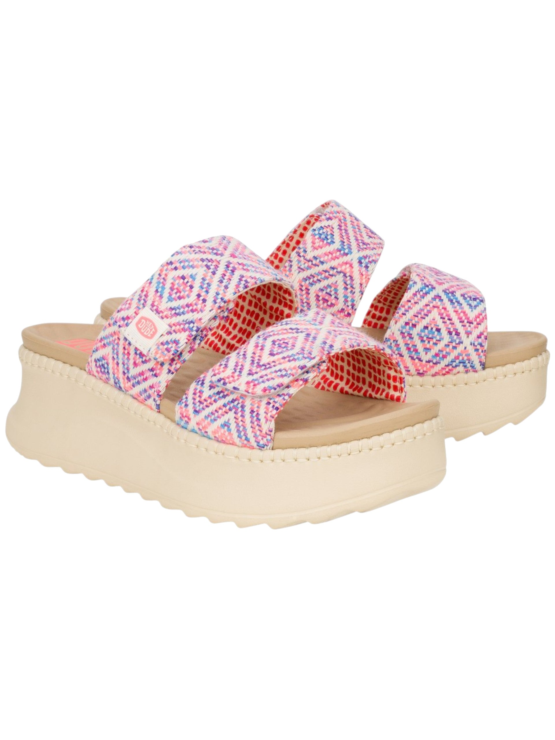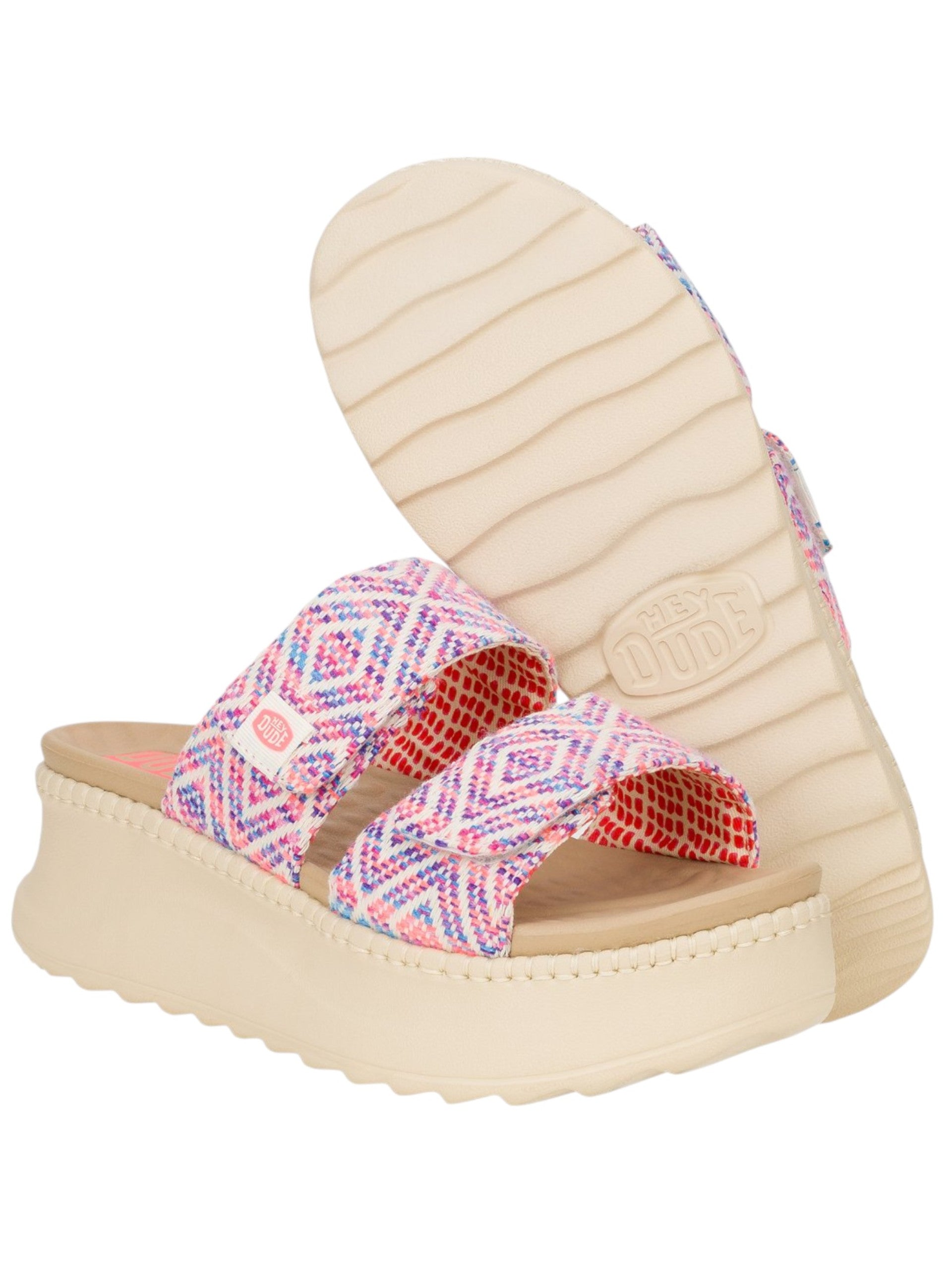 Scarpe Hey Dude rosa multicolor Delray Slide Surf Baja da donna 43210. Queste scarpe Hedy Dude sono realizzate con doppio cinturino multicolore. La suola in gomma, i bordi con inserti in corda rendono queste ciabatte donna Hey Dude un Must have di questa stagione. Altezza 5 cm.