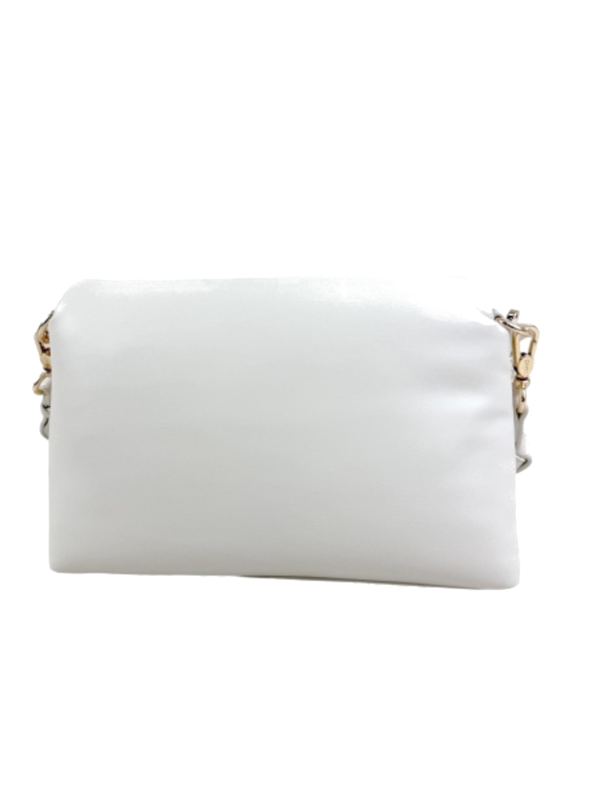 Borsa Liu Jo da donna bianco panna media con tracolla removibile LaPuffy. Questa borsa Liu Jo, realizzata in ecopelle, è caratterizzata da un unico ampio scomparto per riporre qualsiasi oggetto con una tasca all'interno con zip, la chiusura ha il bottone automatico con il logo realizzato in metallo la catenella removibile per il trasporto a spalla e infine la tracolla sempre removibile.