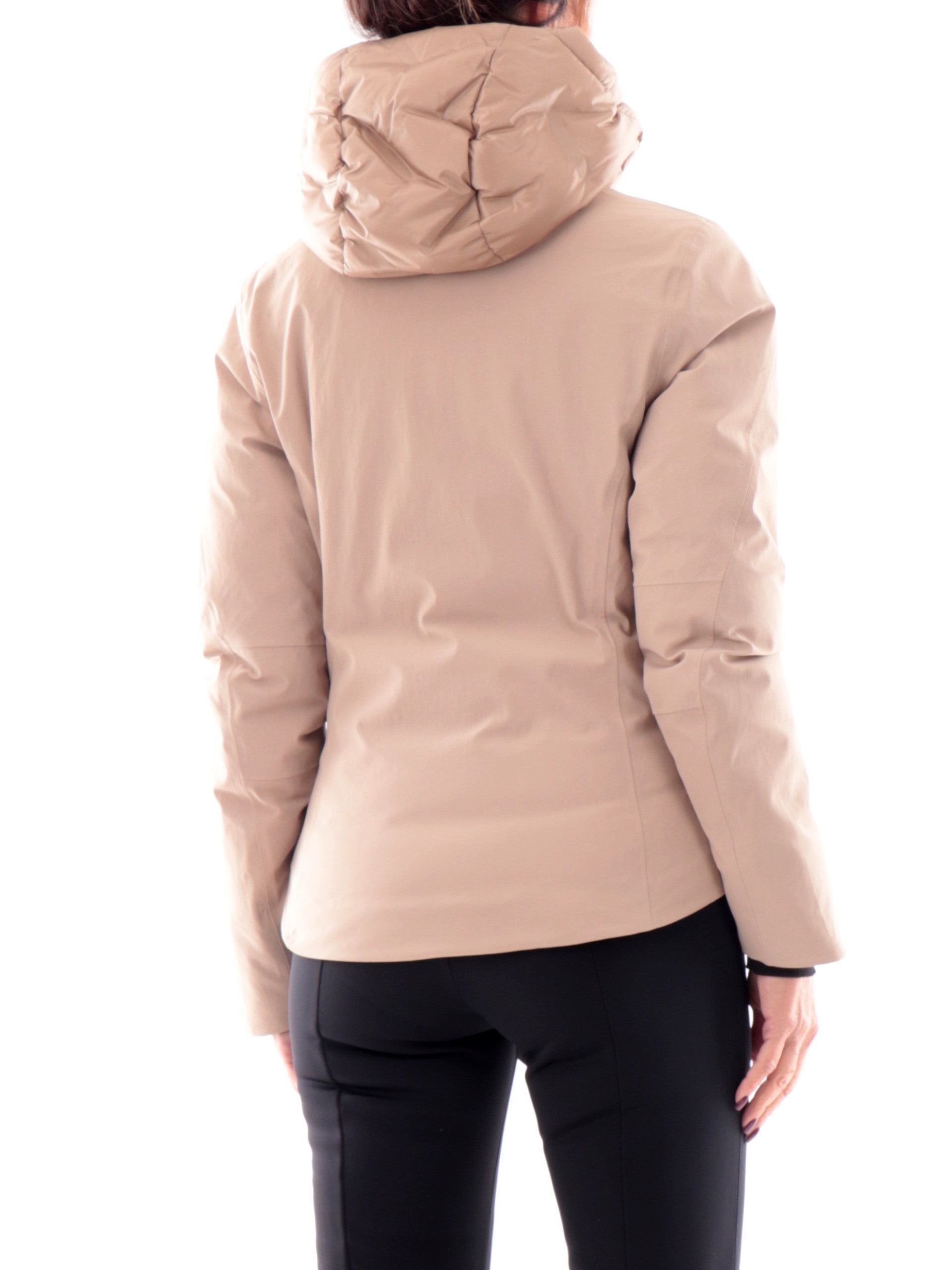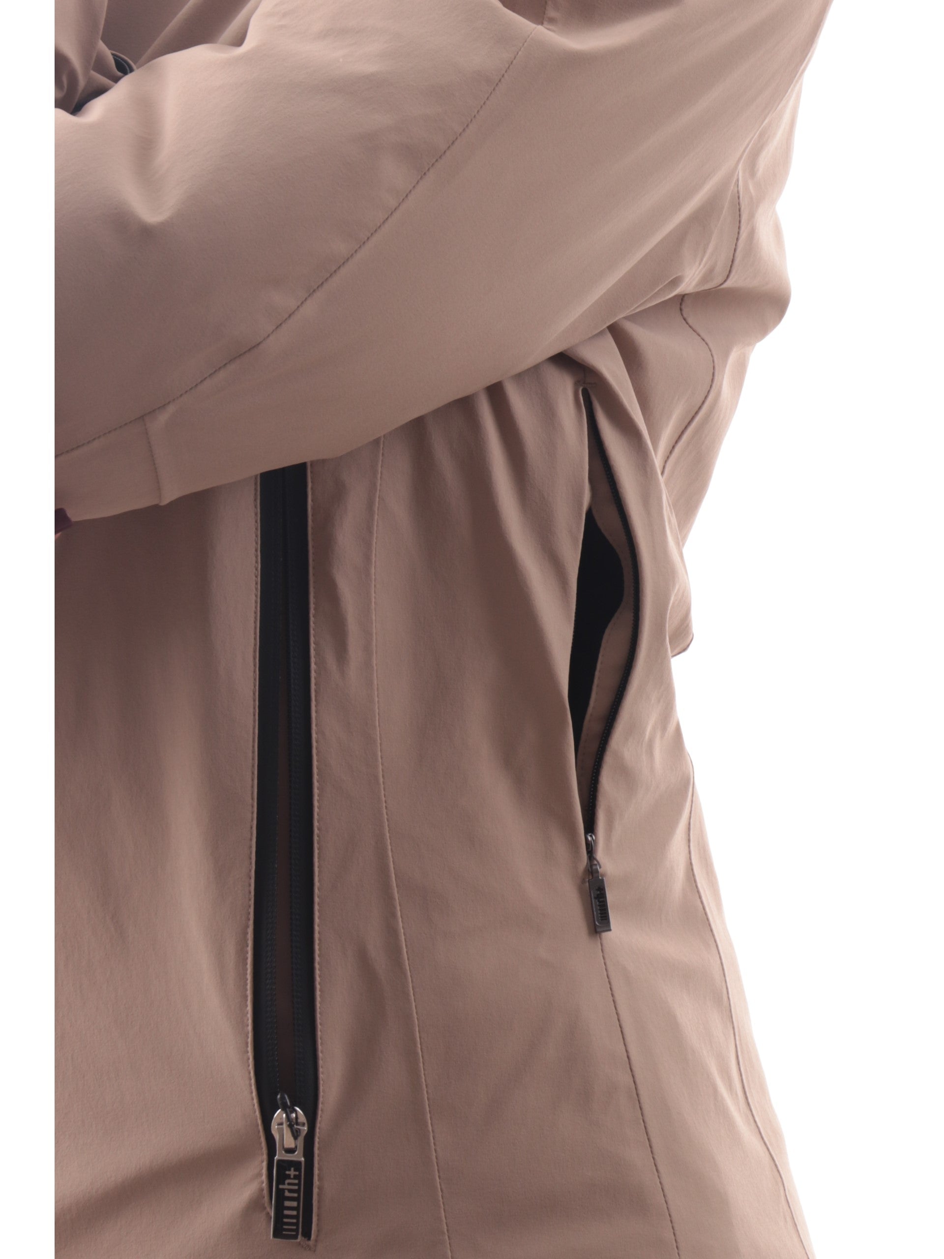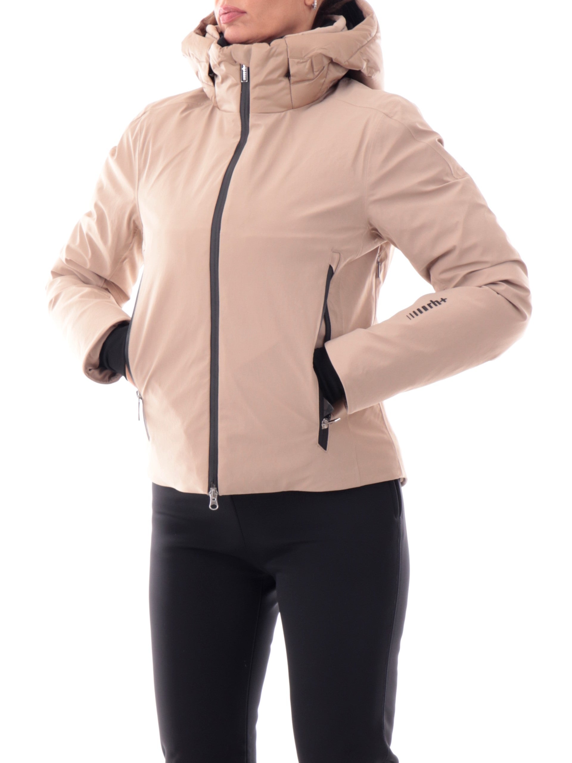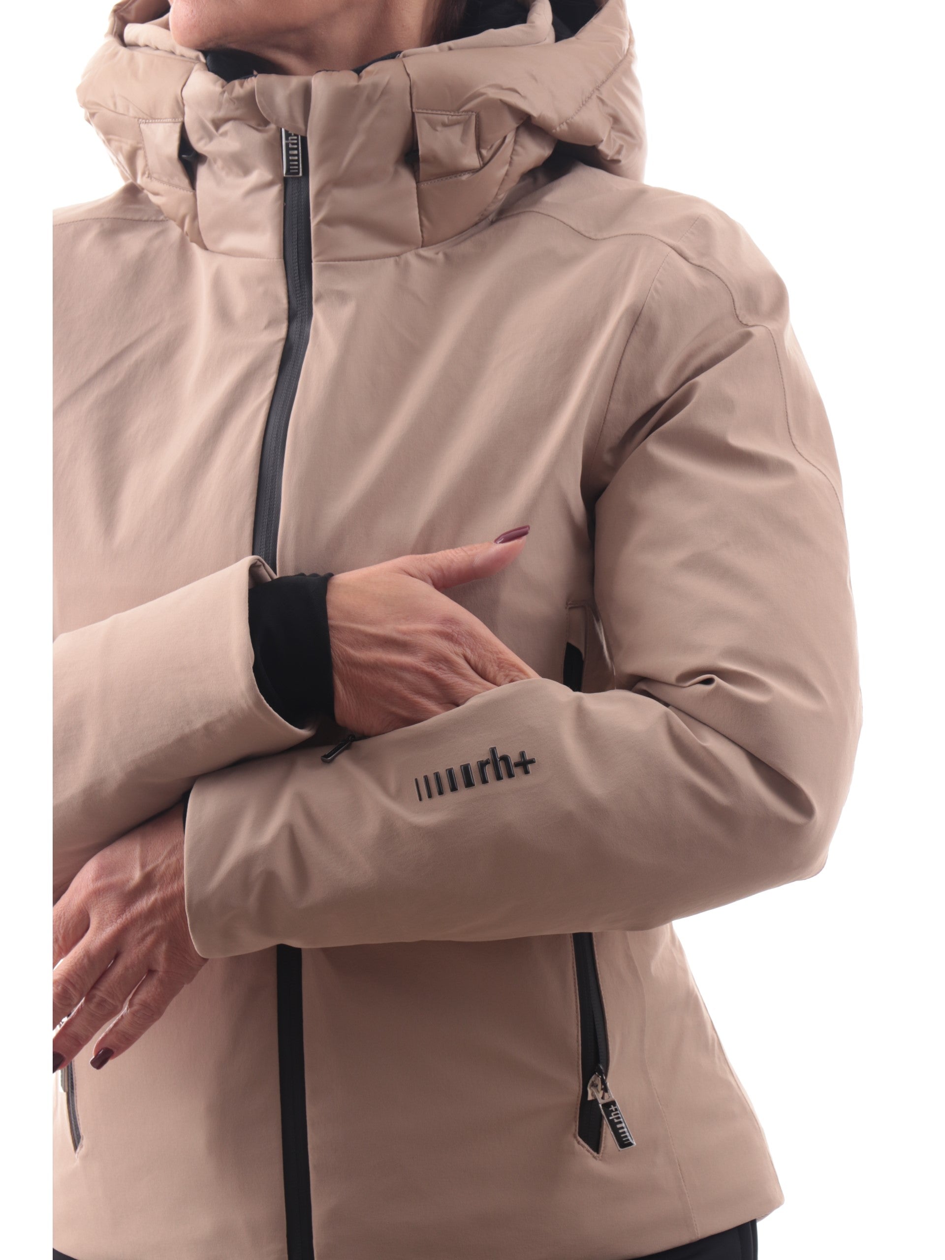 Giacca beige da sci da donna RH+ Florian Evo. Questa giacca da donna è realizzata in tessuto esterno Ergonomic 4 Way Stretch, che garantisce massima elasticità e comfort nei movimenti. Il capo è completamente nastrato per assicurare impermeabilità e protezione dagli agenti atmosferici. L’imbottitura in piuma conferisce un’elevata termo-coibenza, mantenendo il calore anche nelle condizioni più fredde. Le maniche preformate e il fondo sagomato con regolazione coulisse offrono una vestibilità ergonomica. Questa giacca beige da donna è caratterizzata dal cappuccio fisso, realizzato con settori ZIG-ZAG incollati per migliorare la tenuta impermeabile, è regolabile tramite sistema nascosto e garantisce protezione ottimale, polsini interni con foro ergonomico per il pollice, due tasche laterali con zip e inserti in tessuto velour nel collo aumentano il comfort. Completano il capo ghetta interna antiscivolo e tasche interne con zip.