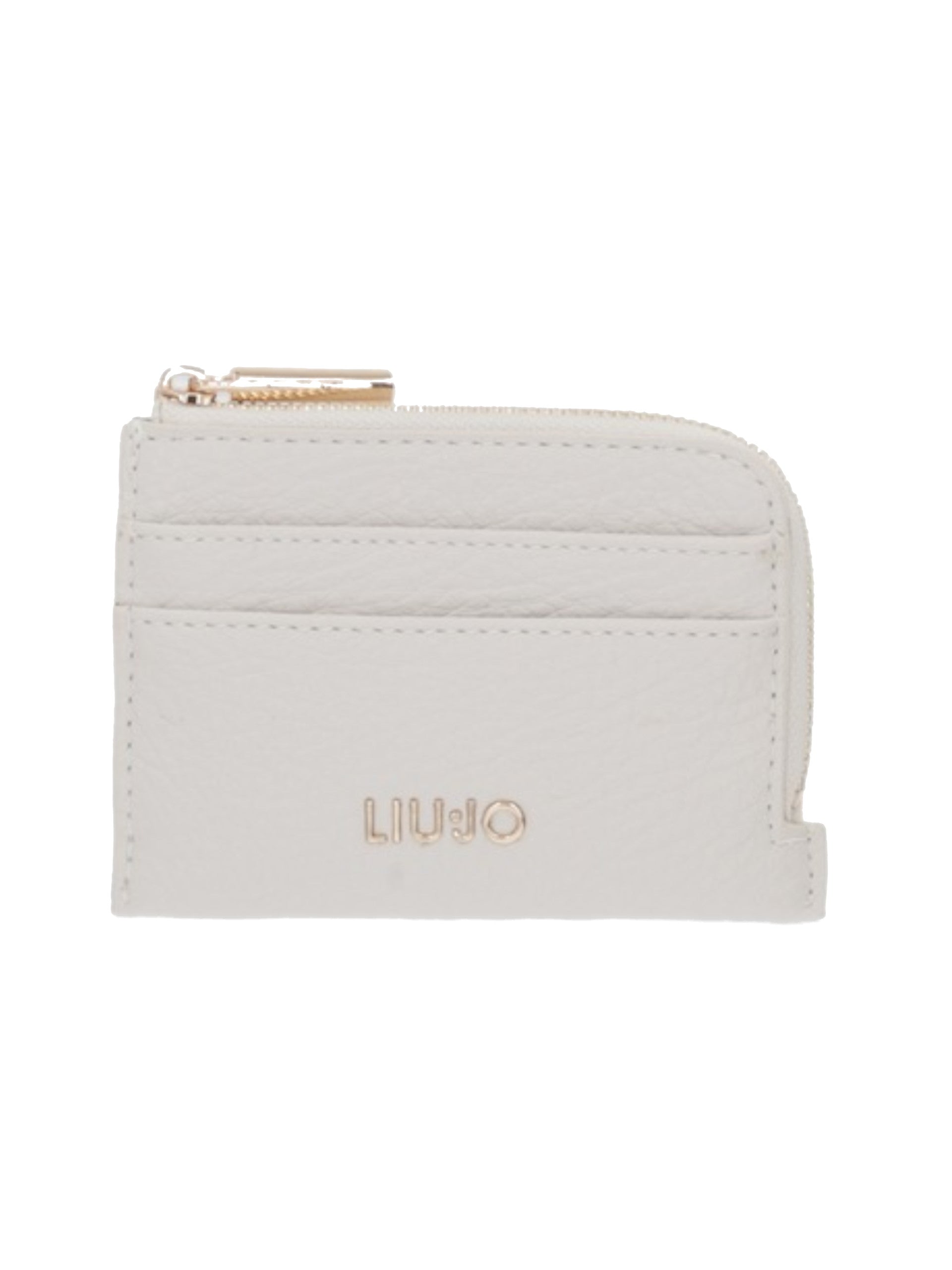 Portafoglio Liu Jo bianco da donna portacarte con zip. Questo porta carte Liu Jo, realizzato in ecopelle, è caratterizzato da quattro scomparti per le carte e tessere, un scomparto con zip around perle monete e il logo del brand applicato sul davanti