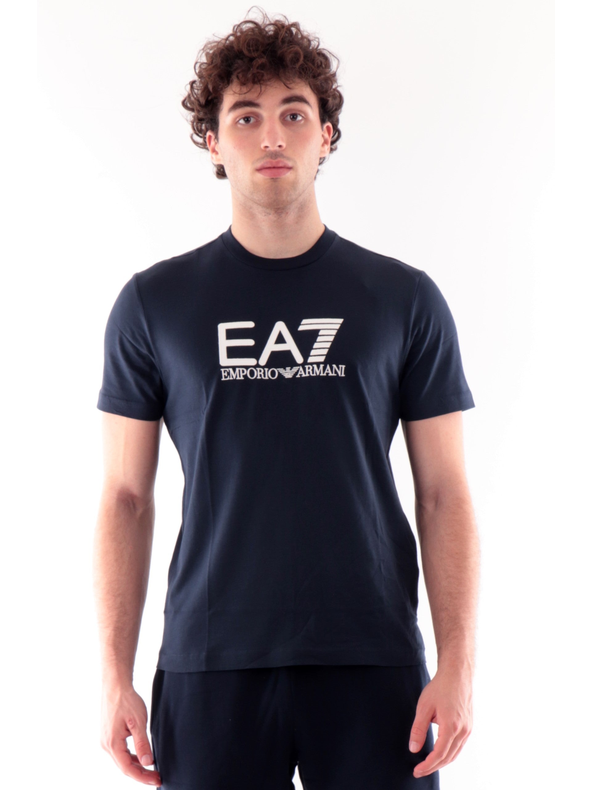 T-shirt Emporio Armani EA7 blu da uomo con maxi patch EA7 7M000898AF10375