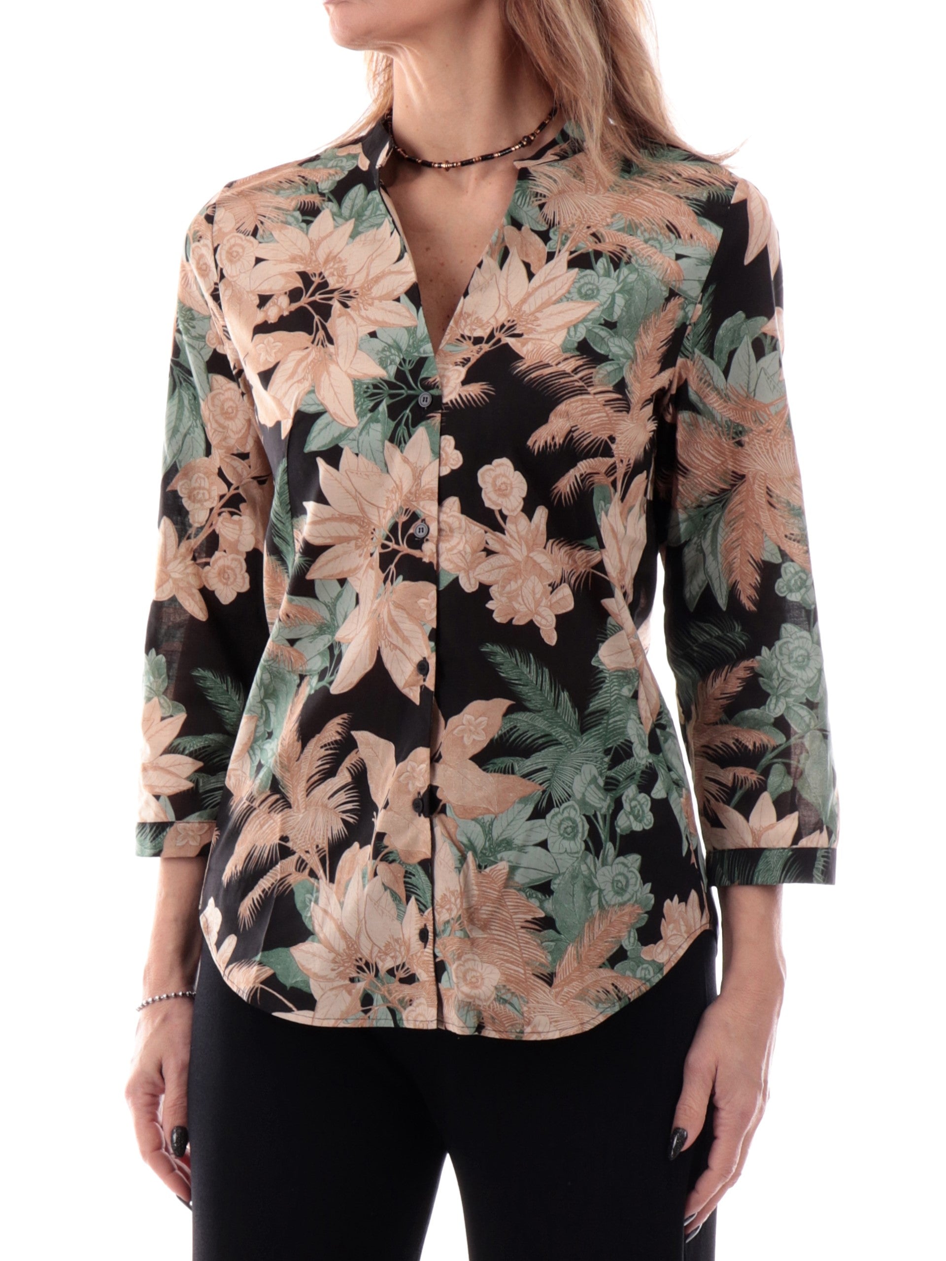 Camicia Emme Marella nera fantasia floreale da donna con scollo a V ACCOLTO