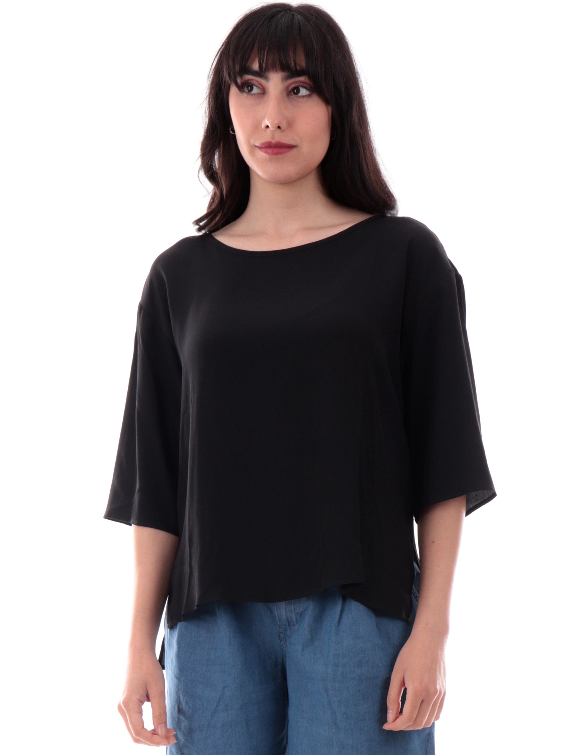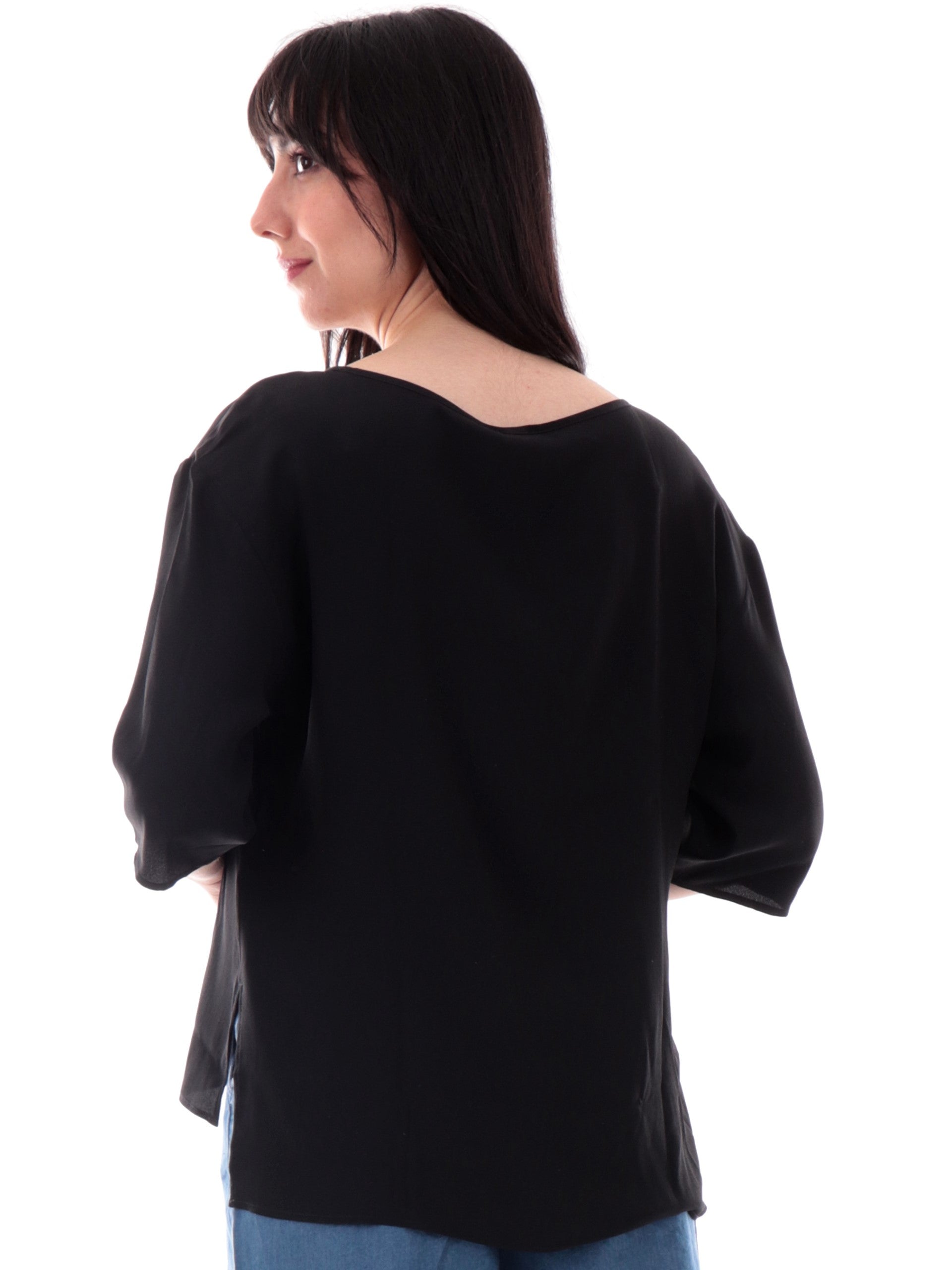 Blusa Emme Marella seta nera morbida da donna maniche tre quarti ATZECO