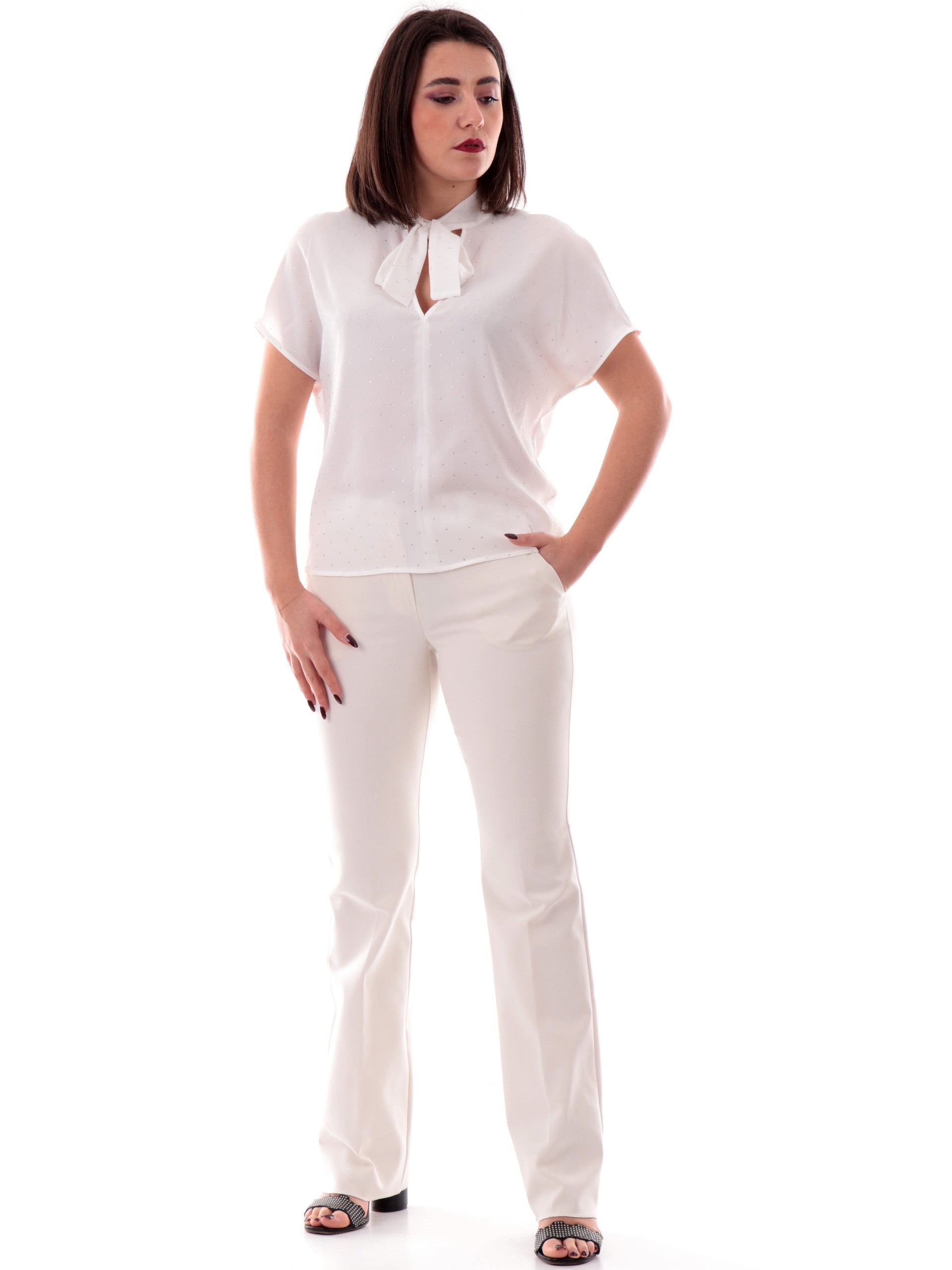 Blusa Emme Marella scollo a V bianca da donna con strass GALEA