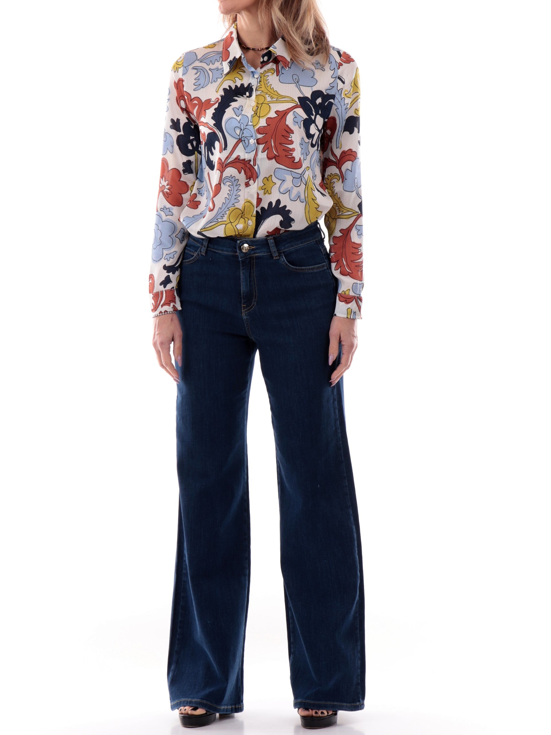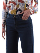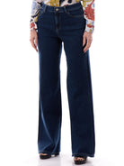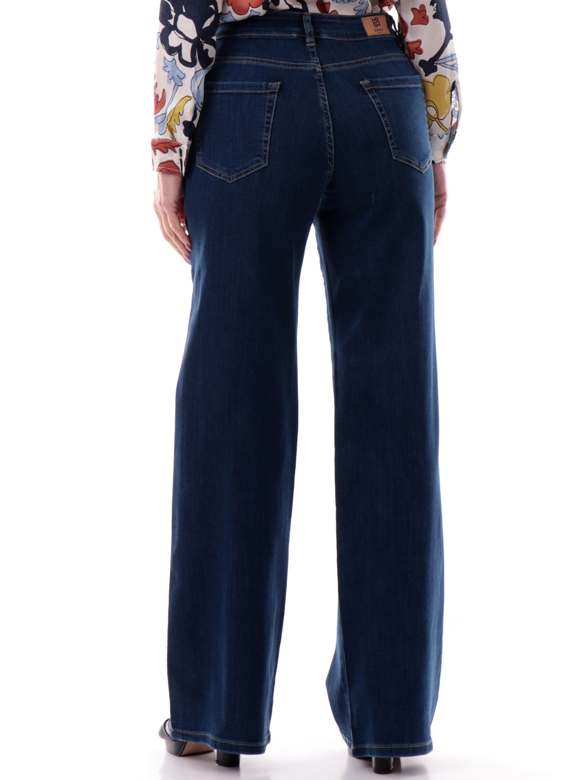 Jeans a palazzo Emme Marella da donna con risvolto CRESPO, realizzati in jeans di cotone denim scuro. Questi pantaloni jeans Emme Marella palazzo hanno la chiusura con bottone Logato più zip, due tasche laterali aperte. Le linee di questo jeans palazzo valorizzano le forme e slanciano la figura. Il tessuto leggero e morbido è perfetto per ogni stagione.