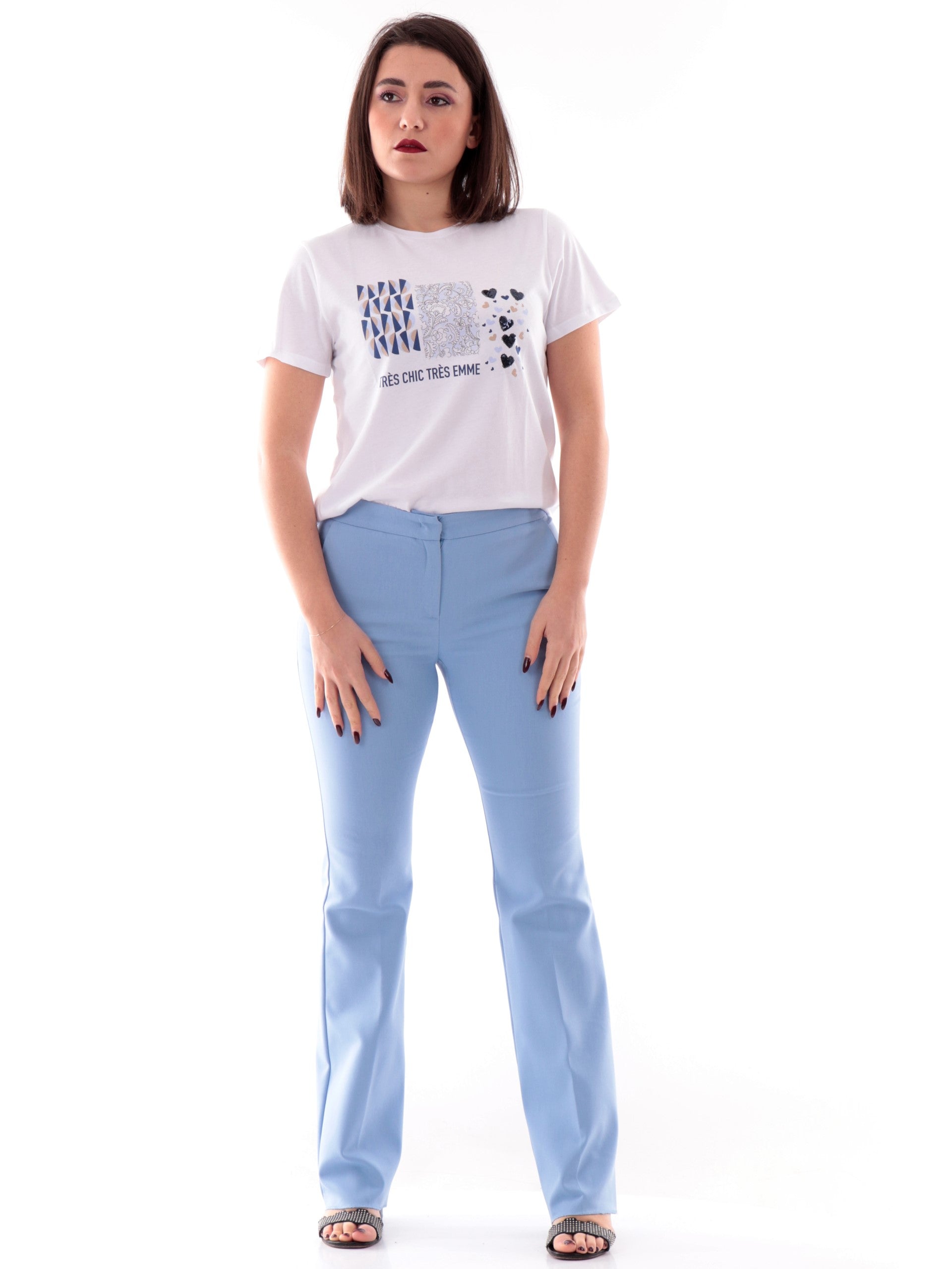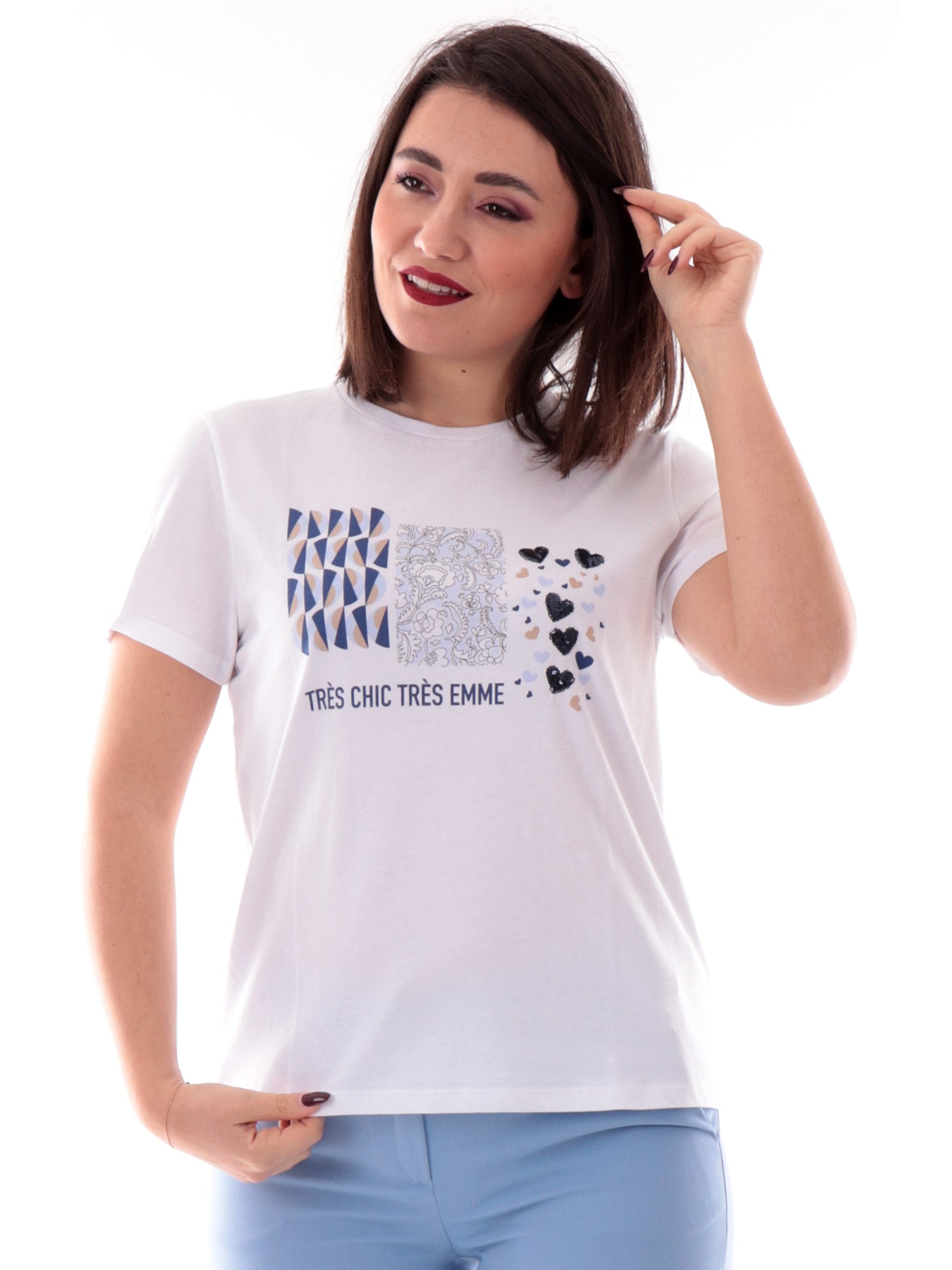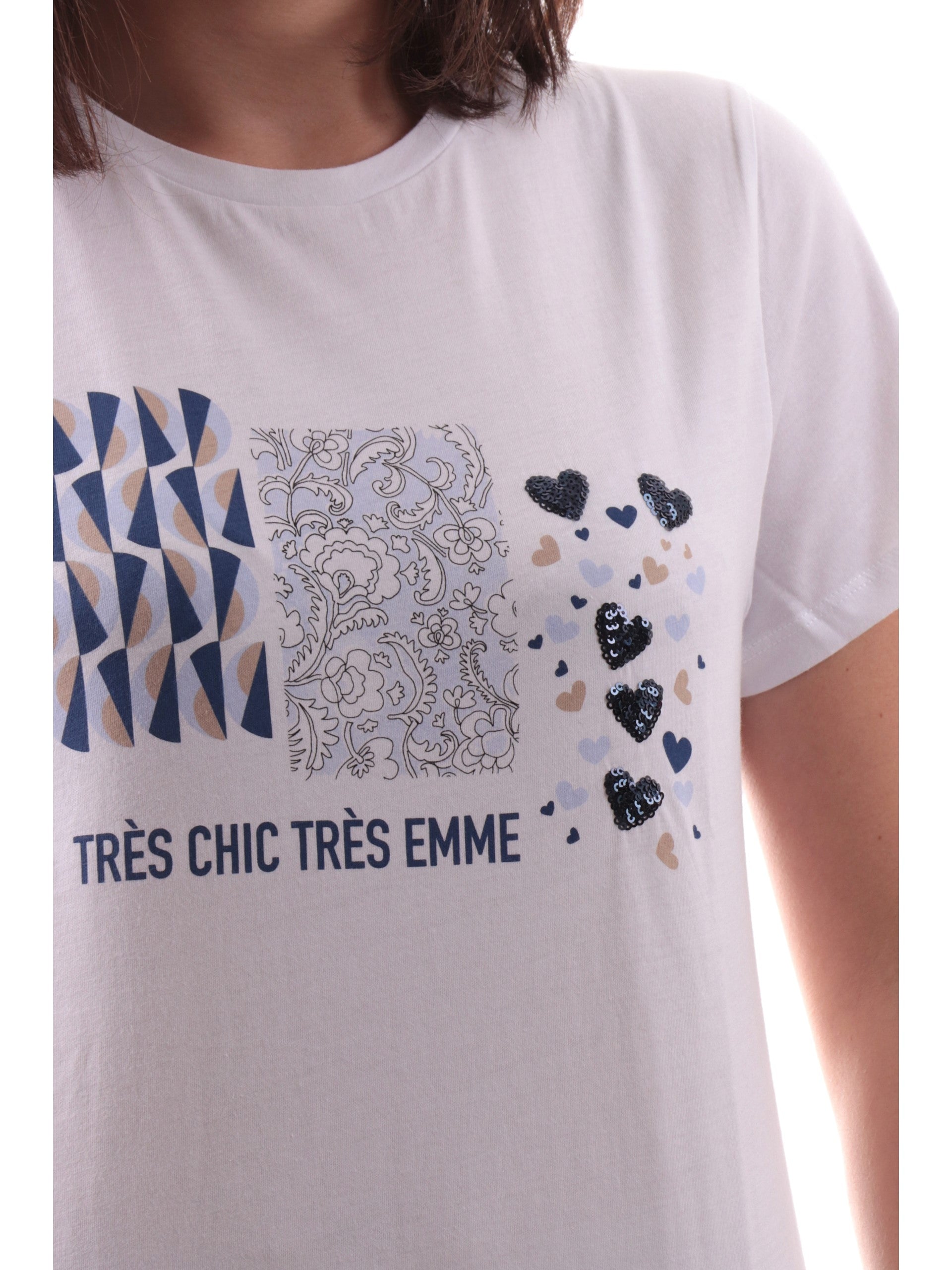 T-shirt Emme Marella girocollo bianca da donna stampa cuori con paillettes OVEST