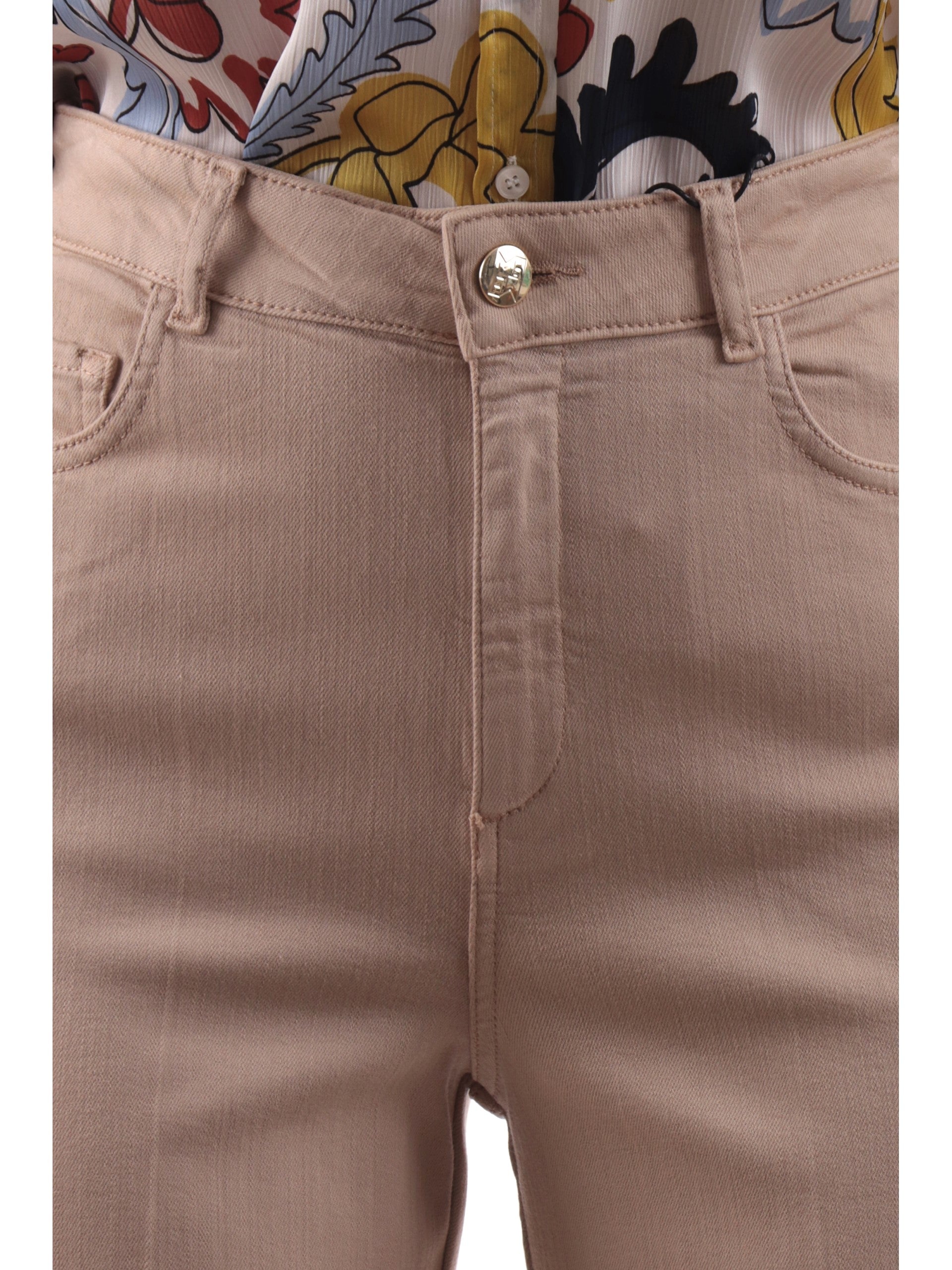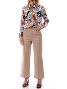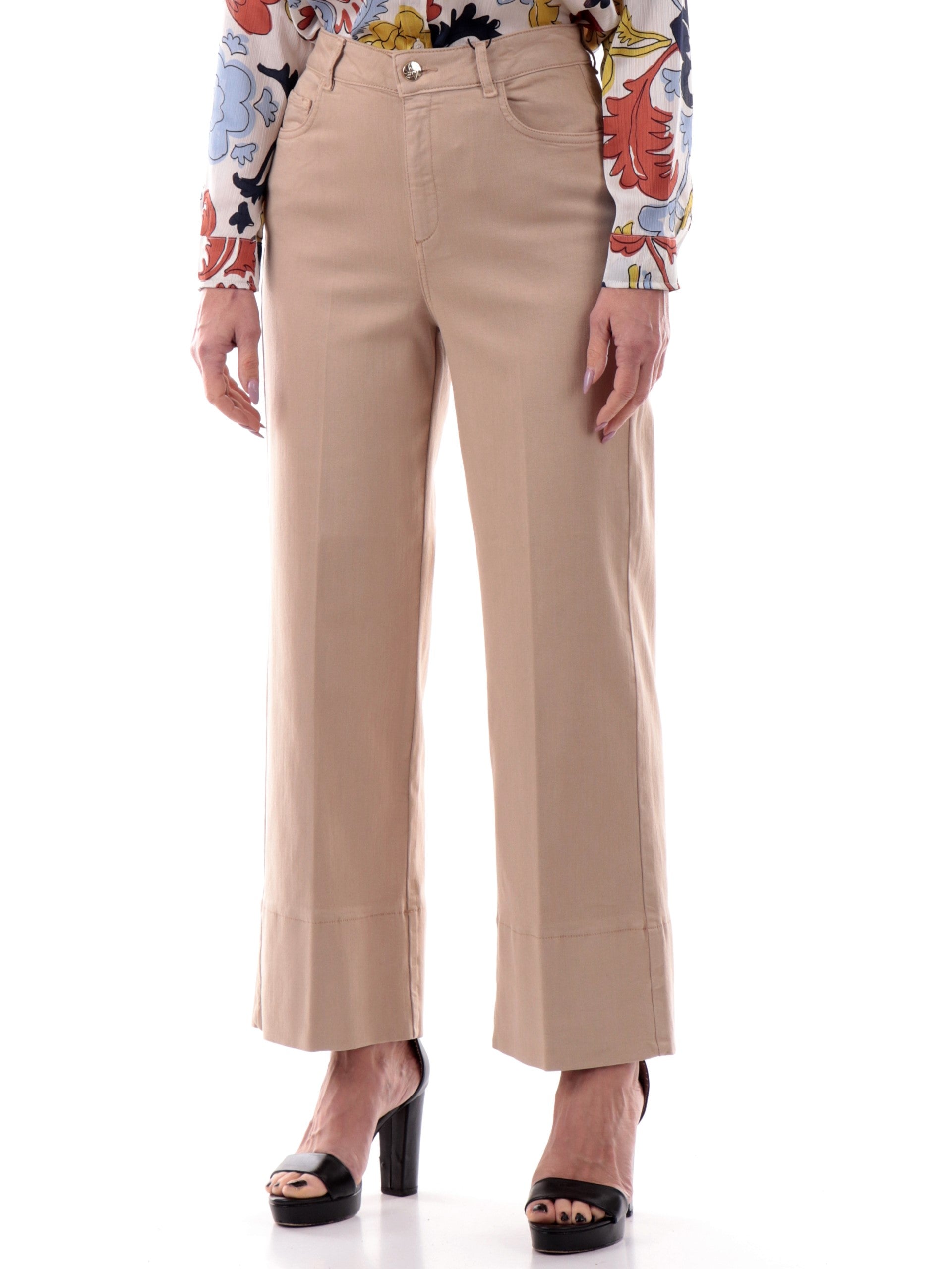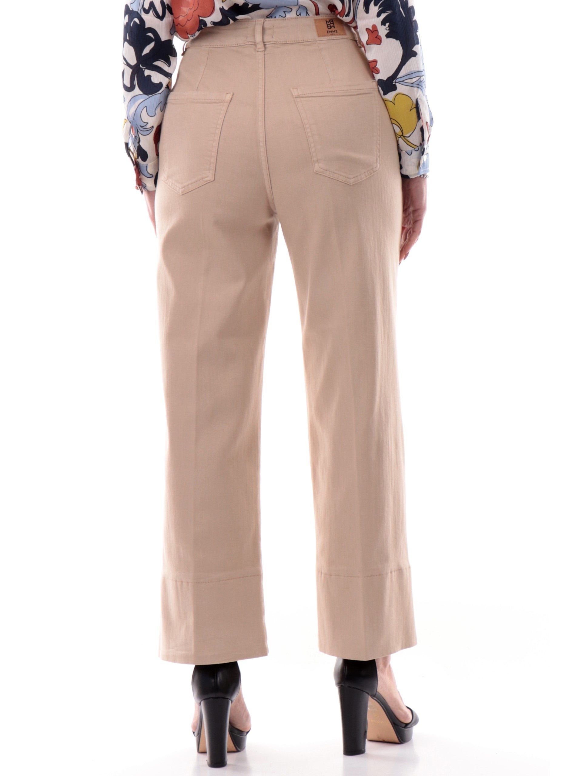 Pantaloni beige a palazzo Emme Marella da donna con risvolto modello Display, realizzati in morbido tessuto in cotone beige elasticizzato. Questi pantaloni beige Emme Marella palazzo hanno la chiusura con bottone Logato più zip, due tasche laterali e due posteriori a toppa. Le linee di questi pantaloni Emme Marella beige a palazzo valorizzano le forme e slanciano la figura. Il tessuto morbido è perfetto per ogni stagione.
