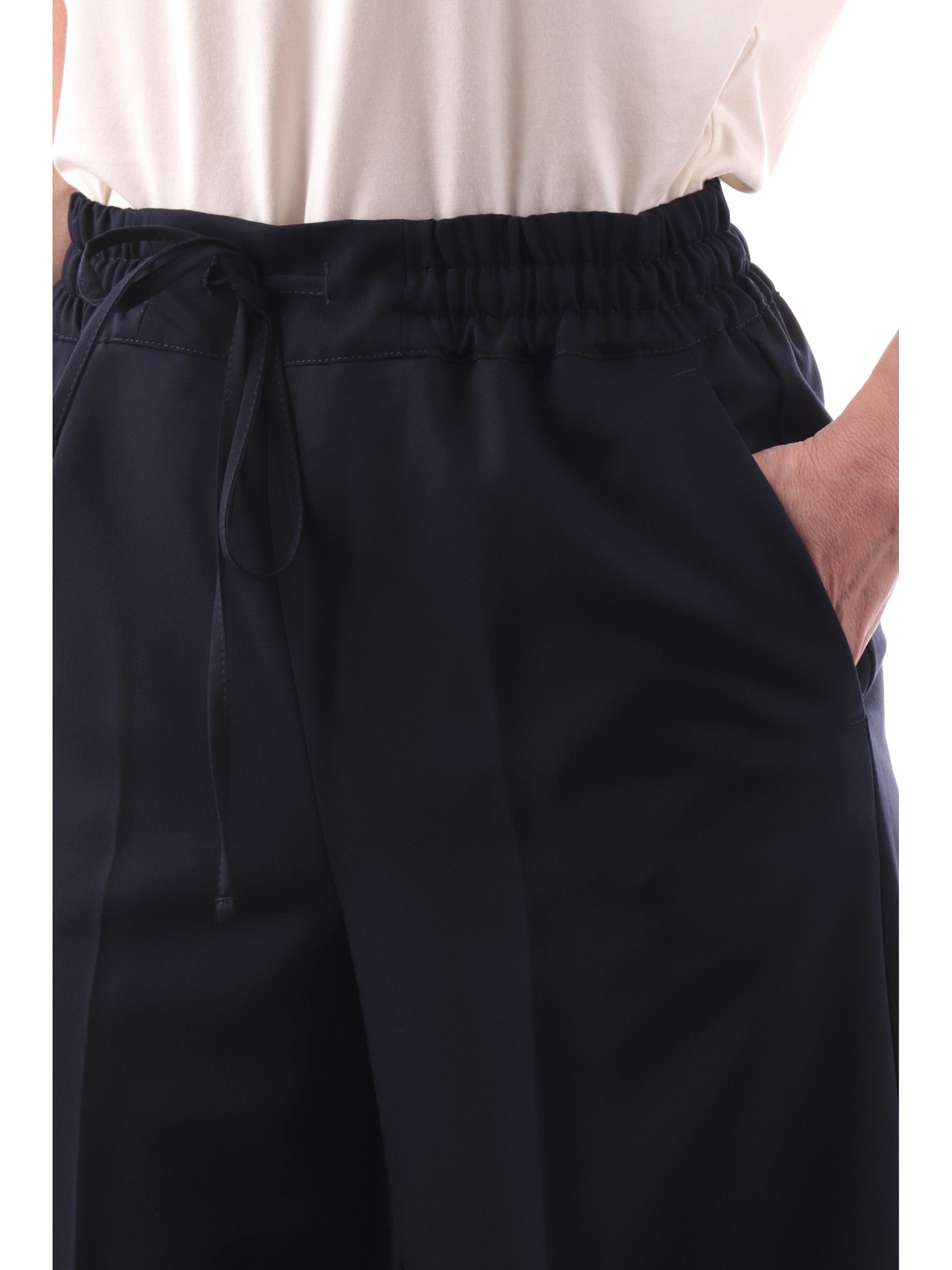 Pantaloni Emme Marella Chino blu da donna in viscosa IPOTESI. Questi pantaloni Marella blu hanno la banda elastica sul punto vita regolabile con laccetti, due tasche laterali aperte con taglio obliquo e la composizione in viscosa pregiata.