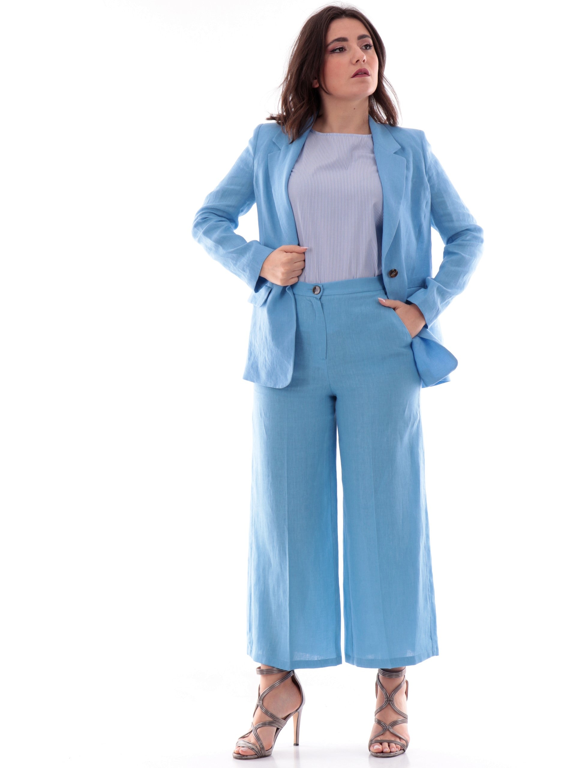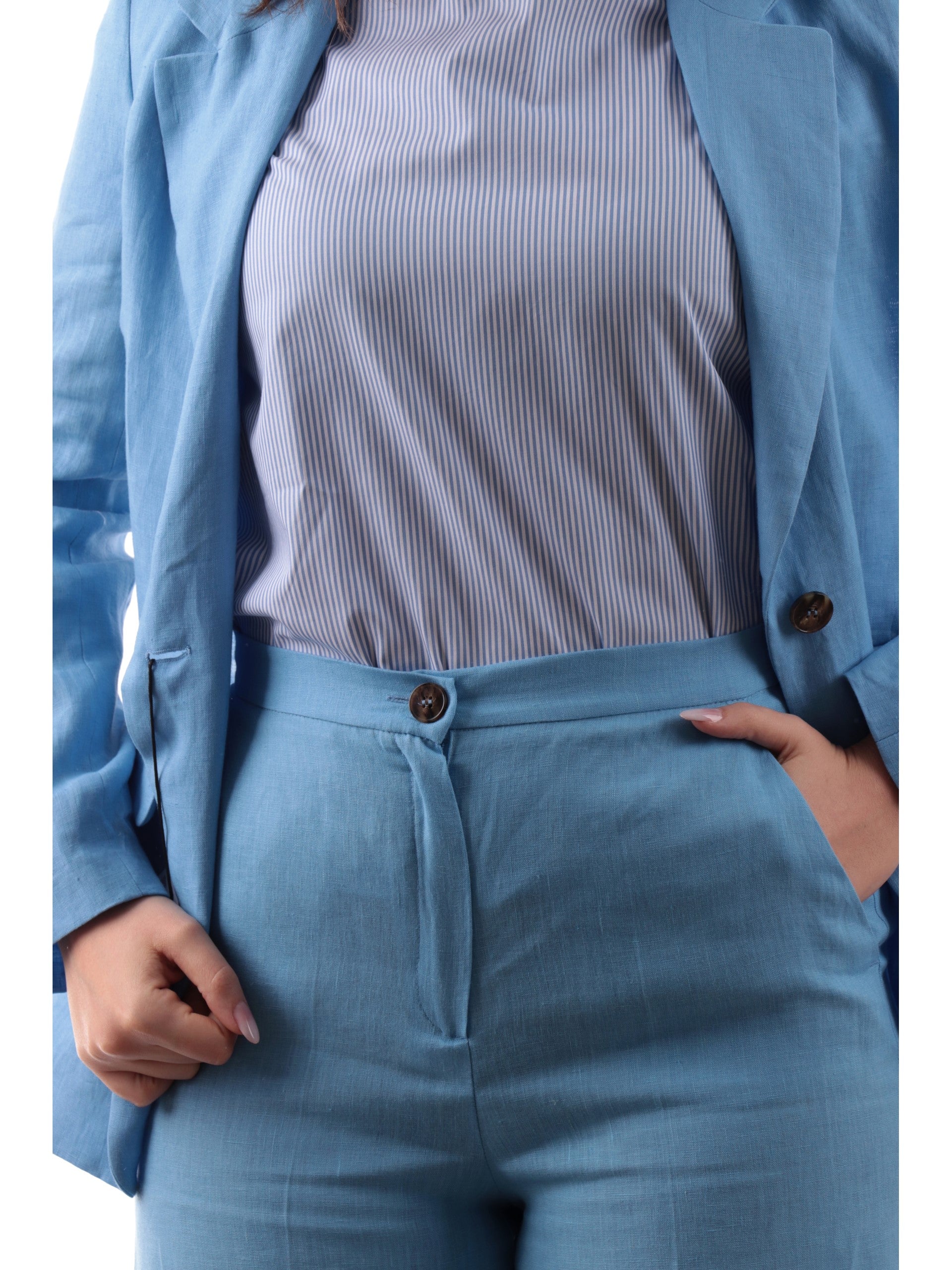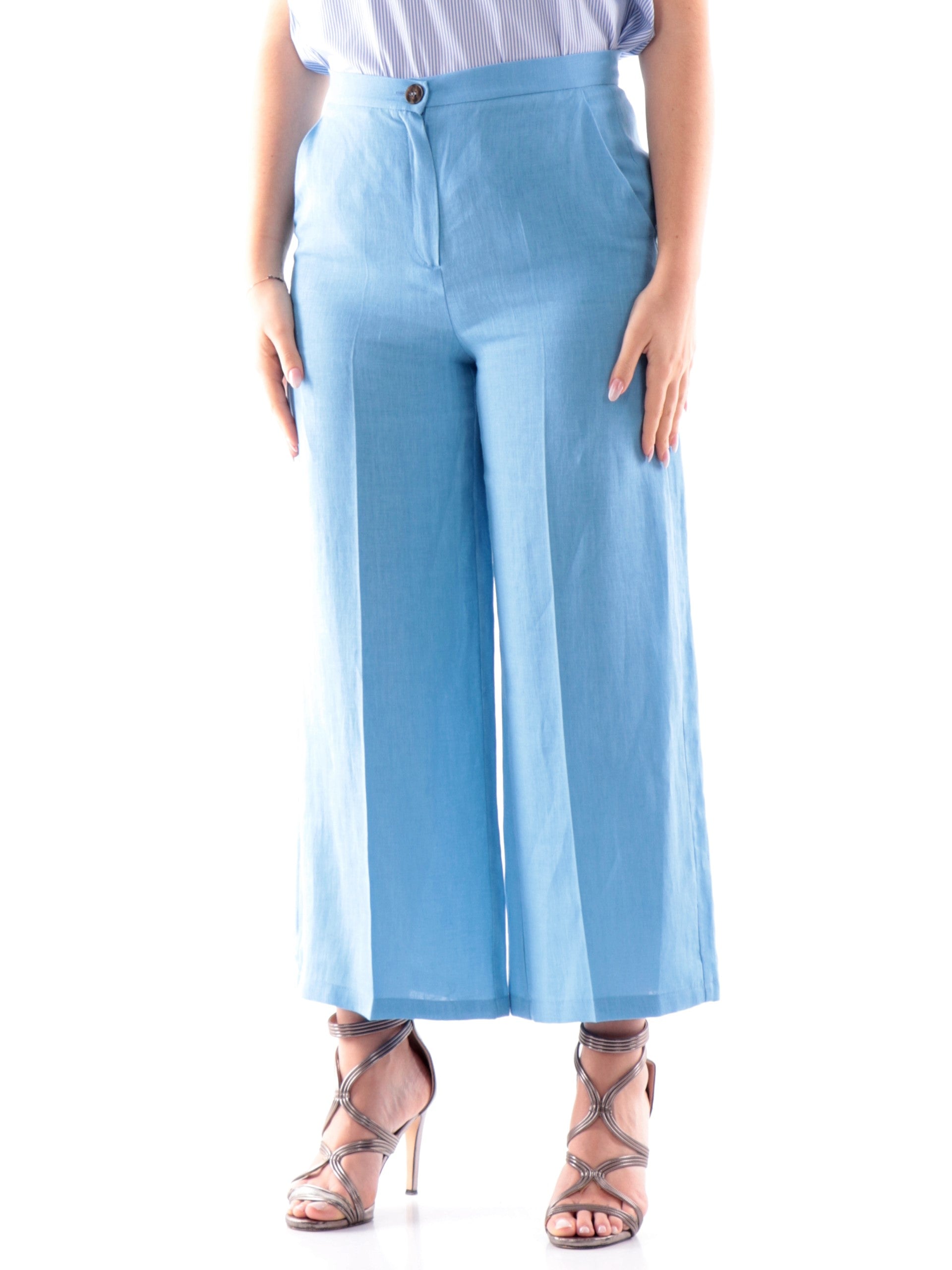 Pantaloni Emme Marella Chino blu in lino da donna SILVANA