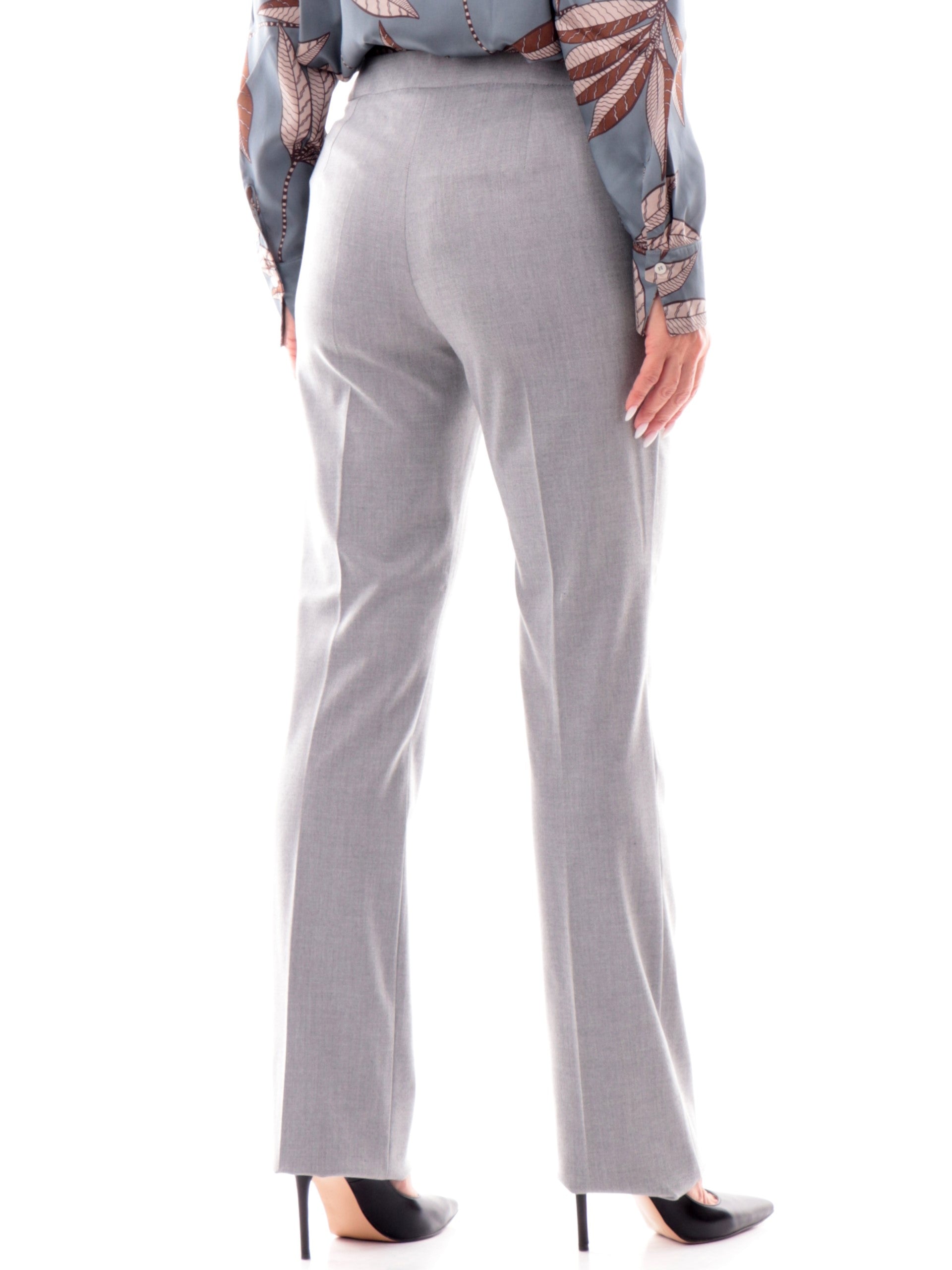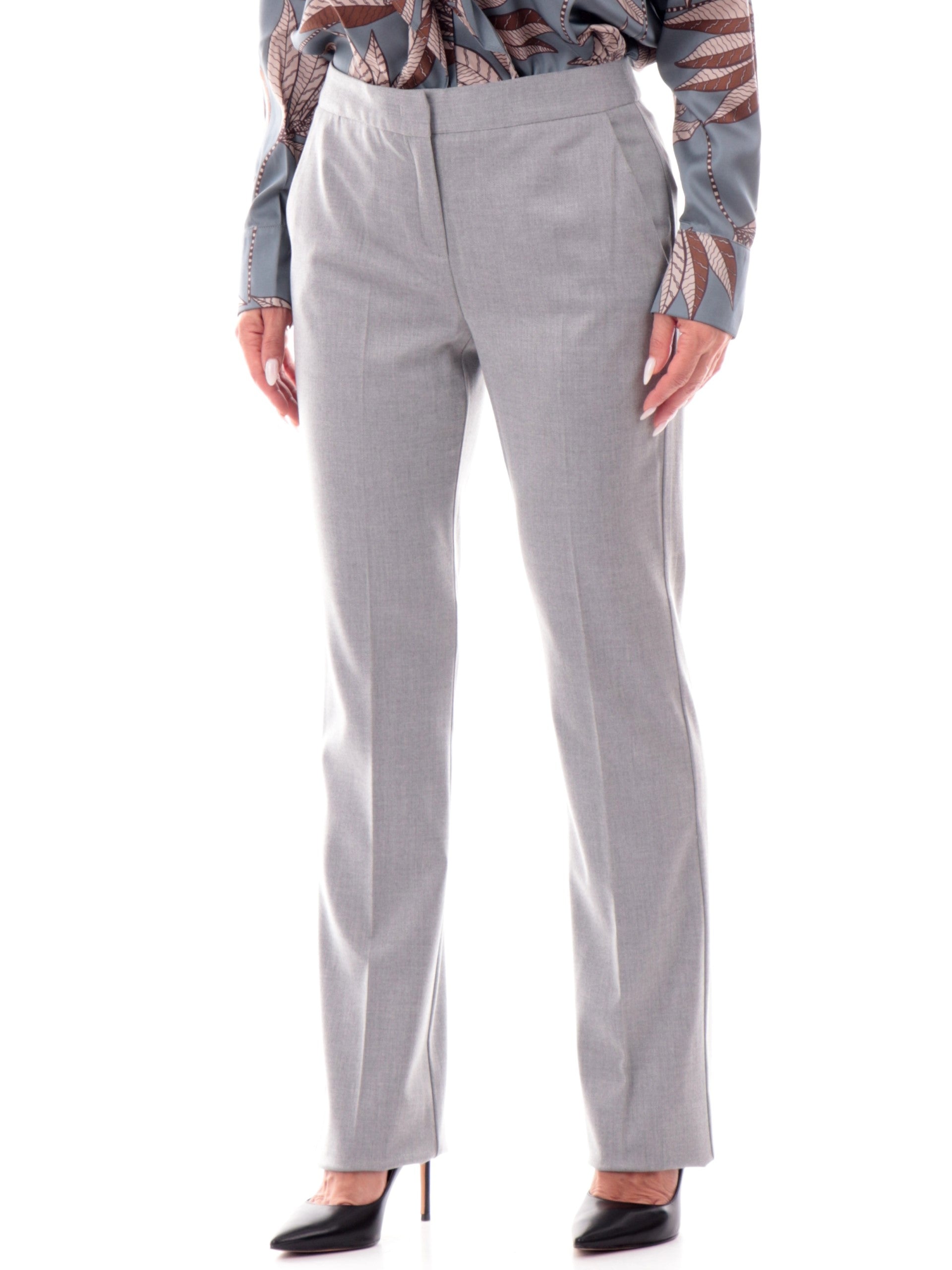 Pantaloni Emme Marella grigi da donna Straight MICRON. Questi pantaloni donna Marella grigi hanno la chiusura con bottone più zip, due tasche laterali aperte con taglio obliquo e il taglio del pantalone dritto.