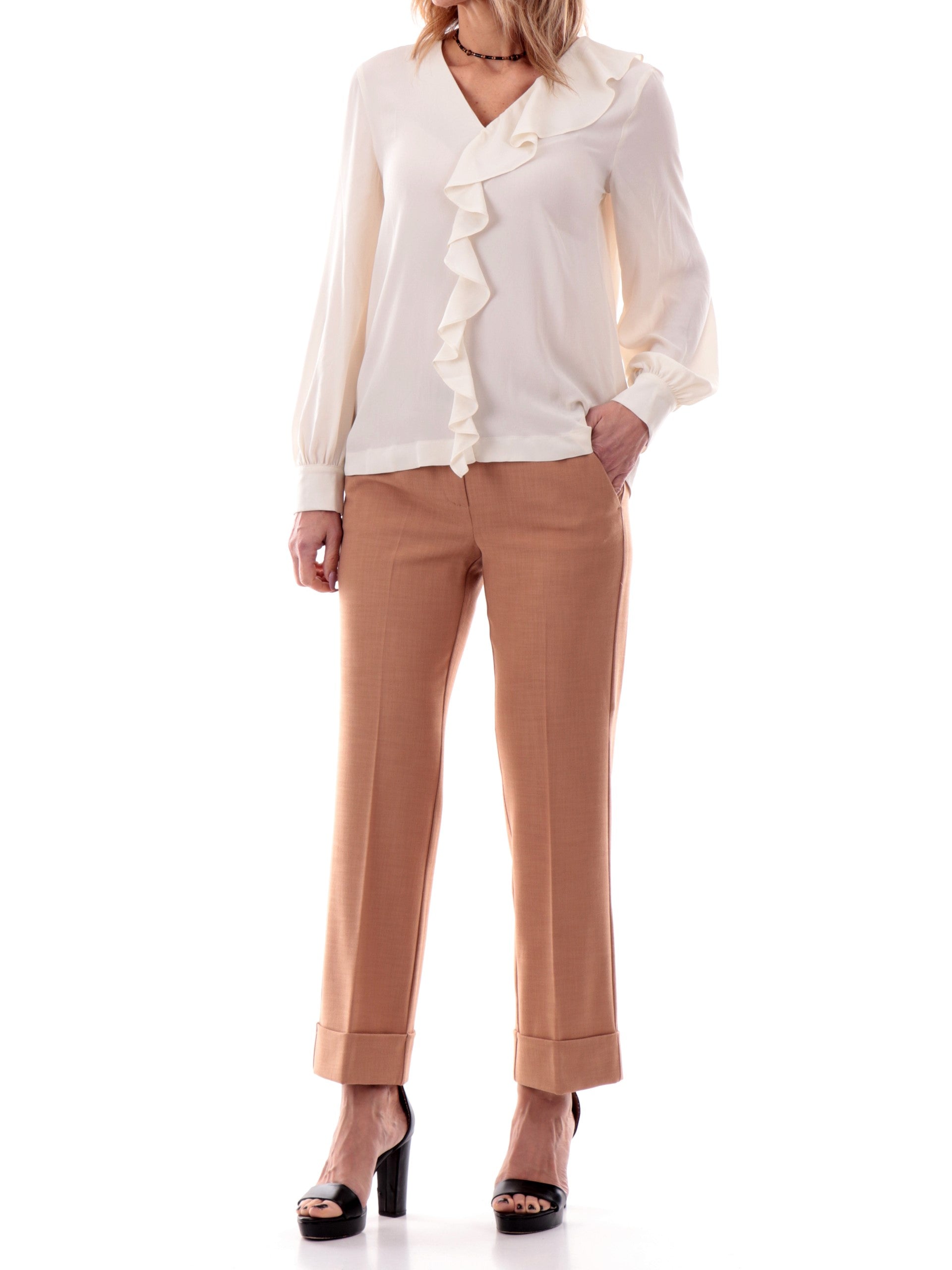 Pantaloni Emme Marella marroni con risvolto da donna DUELLO
