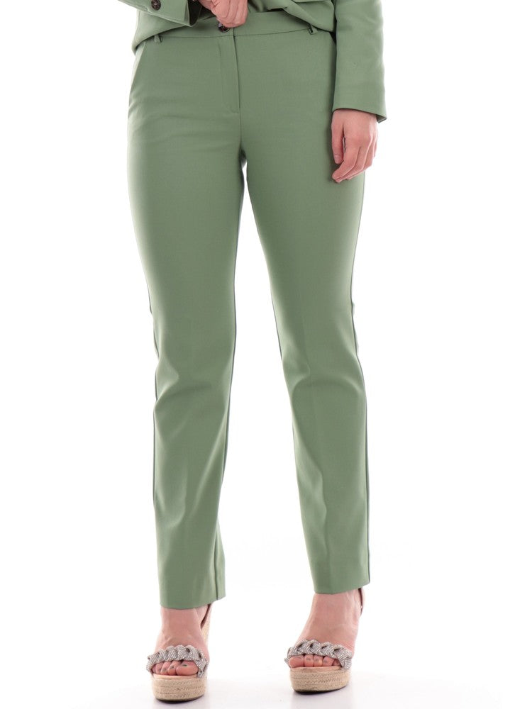 Pantaloni Emme Marella verdi da donna Valenza 24151310712, realizzati in morbido cotone. Questi pantaloni palazzo Emme Marella verdi hanno la chiusura con bottone più zip, due tasche laterali aperte con taglio obliquo, la predisposizione per indossare la cintura e il fondo regolare.