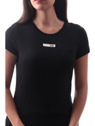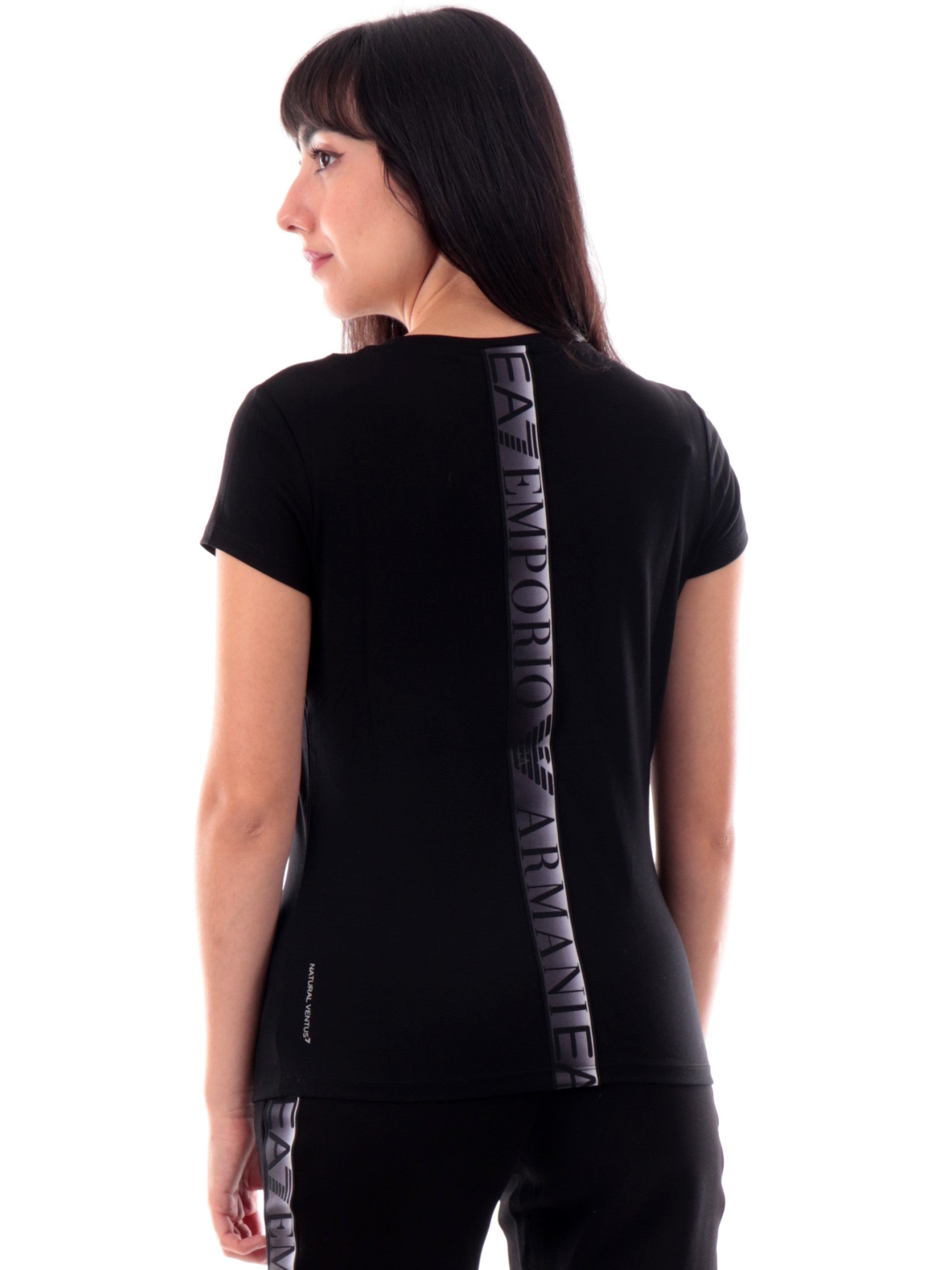 T-shirt Emporio Armani EA7 nera da donna maxi banda logata 7W0673AF12945