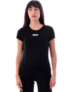 Maglia Emporio Armani EA7 nera da donna maxi banda logata 7W0673AF12945. Questa t-shirt EA7 nera girocollo ha le maniche corte, il patch EA7 sul davanti e la maxi banda logata sul lato posteriore.
